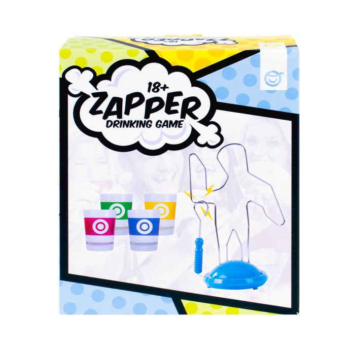 Try and move the whole way around the figure without setting off the “zap”. Once “zapped” you need to skol a shot! Requires 2 x AAA batteries (not included). Comes with 4 x shot glasses.