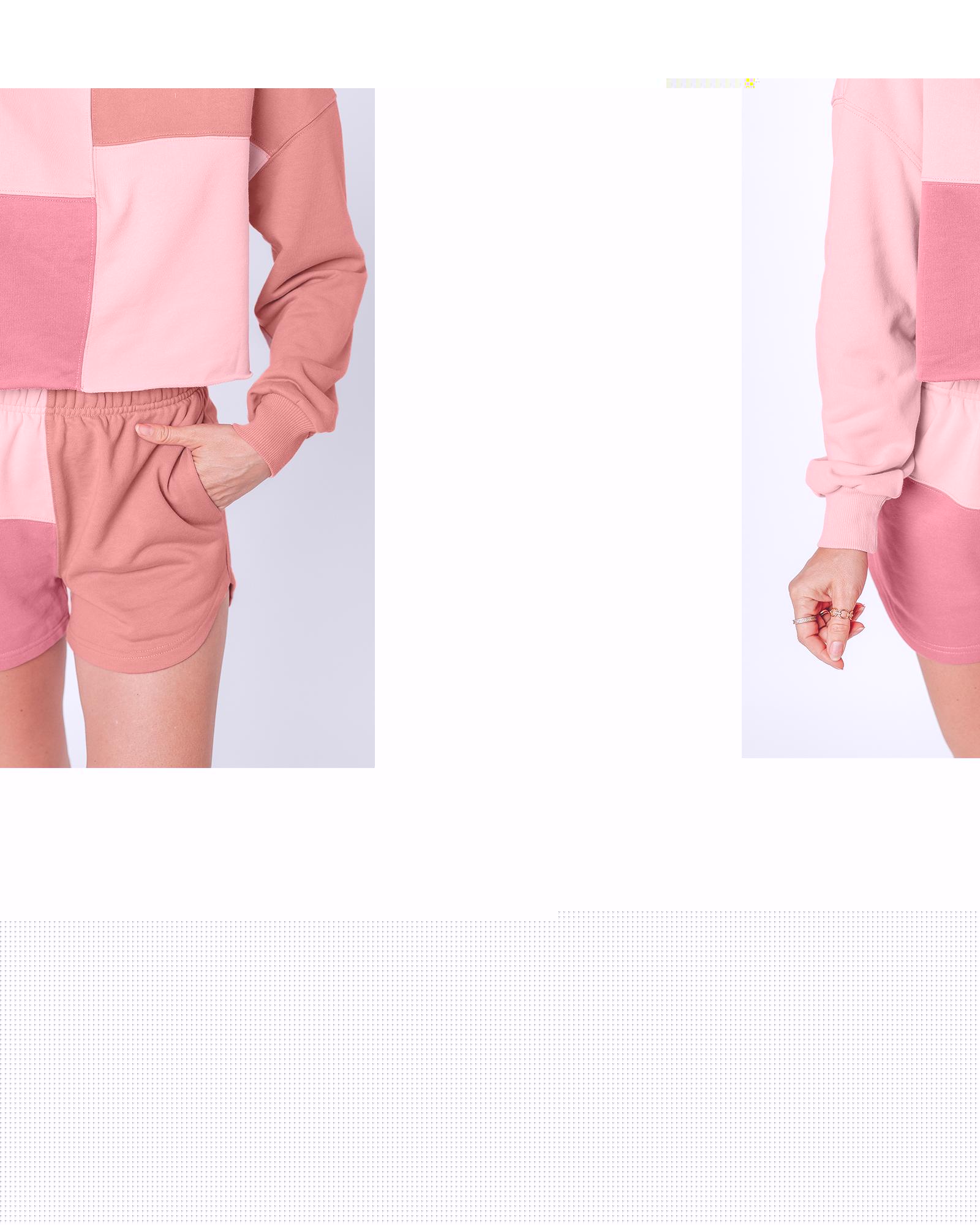 Peach Blossom Colorblock Patchwork Long Sleeve Shorts Outfit – M