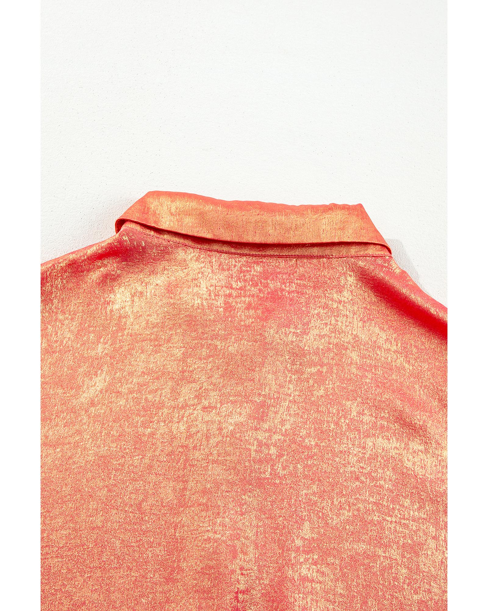 - Peach Blossom Metallic Balloon Sleeve Shirt Plus Size Mini Dress