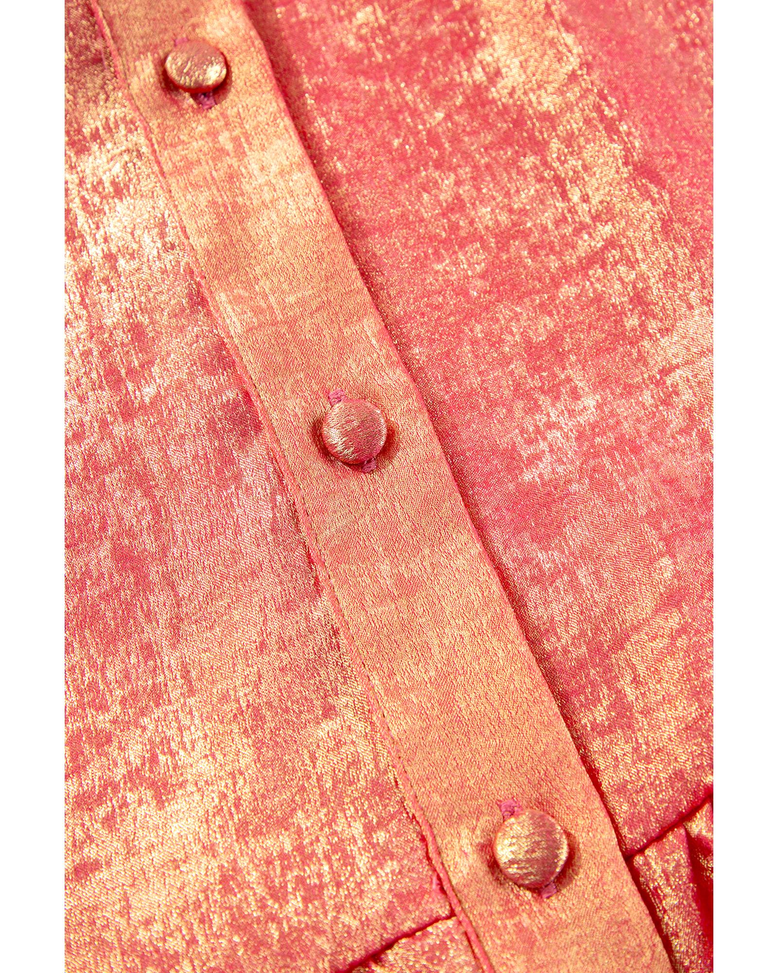 - Peach Blossom Metallic Balloon Sleeve Shirt Plus Size Mini Dress
