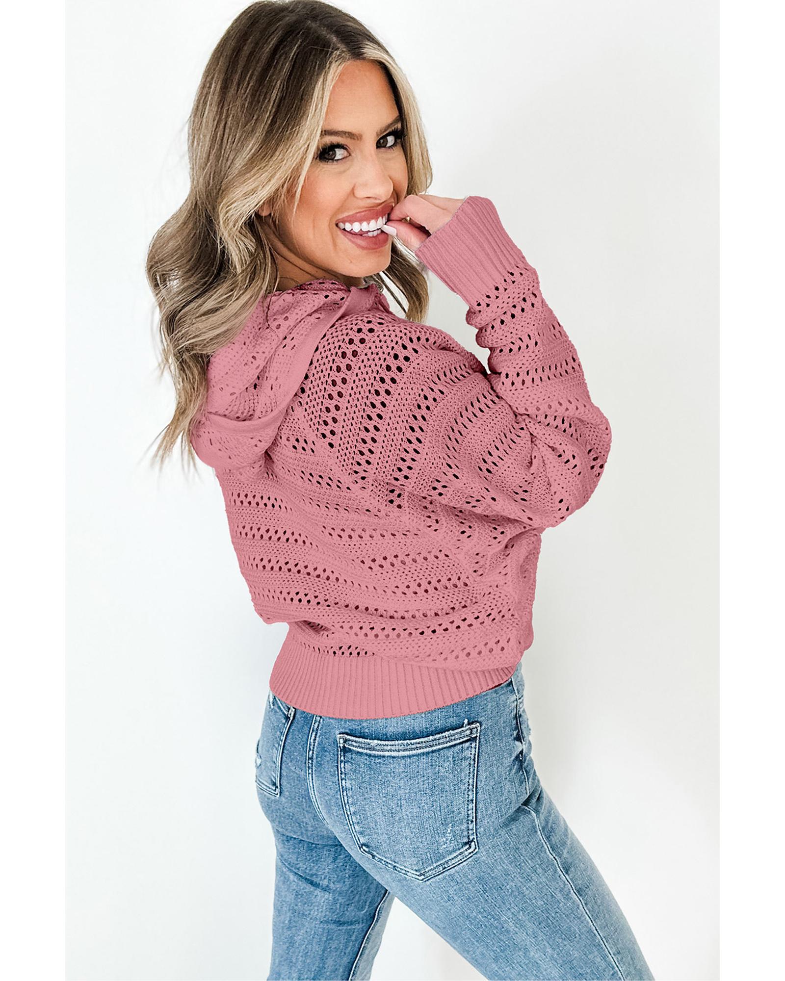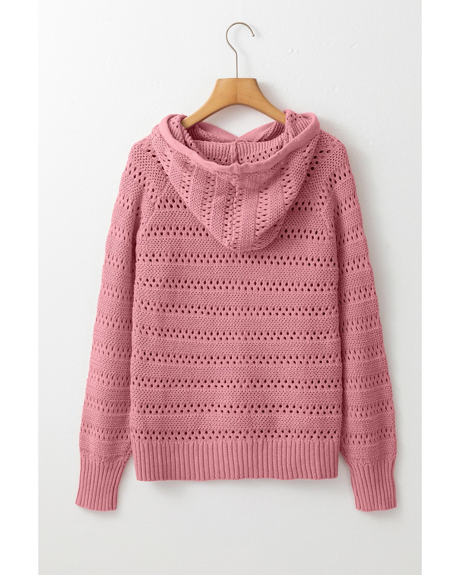 Peach Blossom Pointelle Knit Raglan Sleeve Hooded Sweater – S