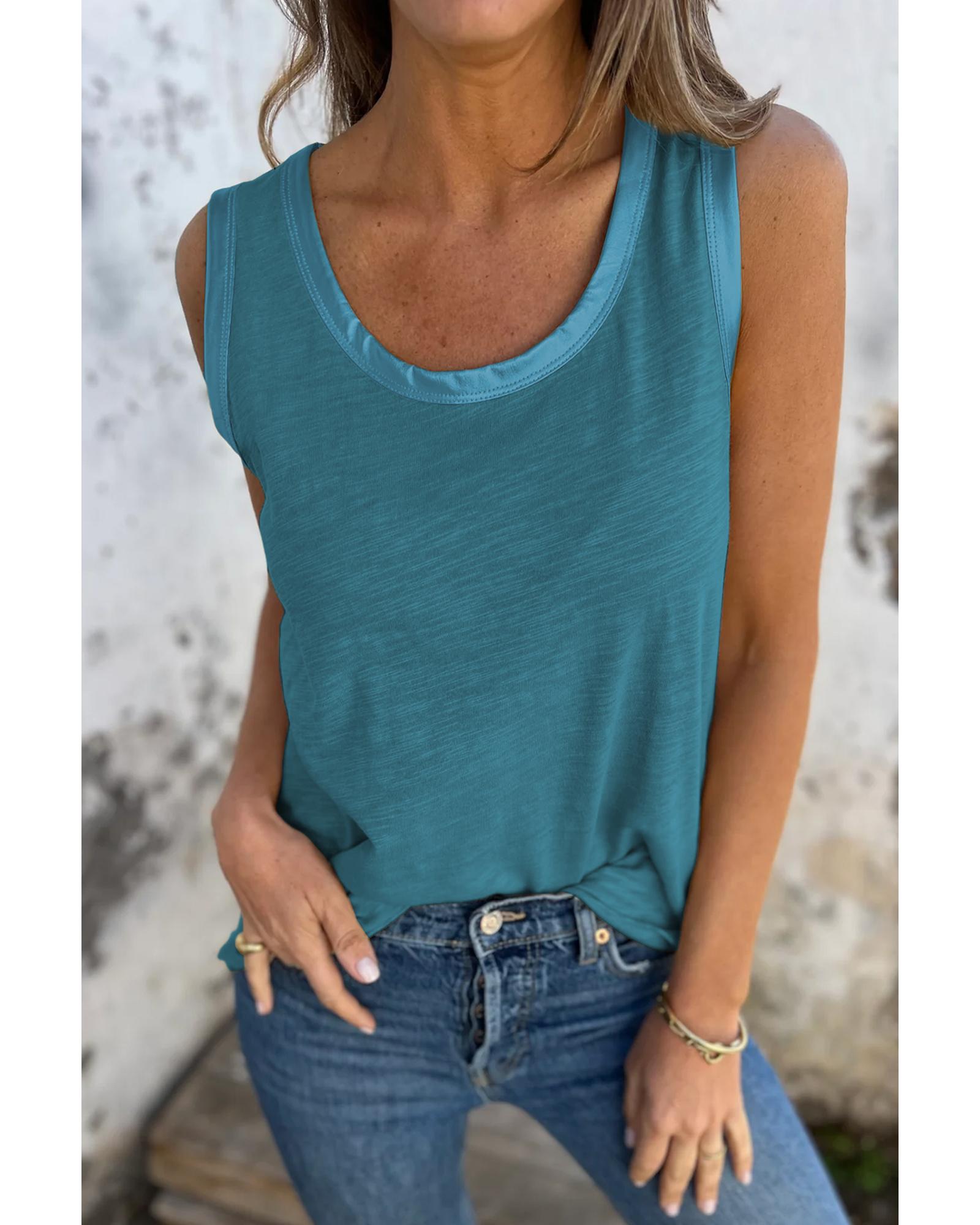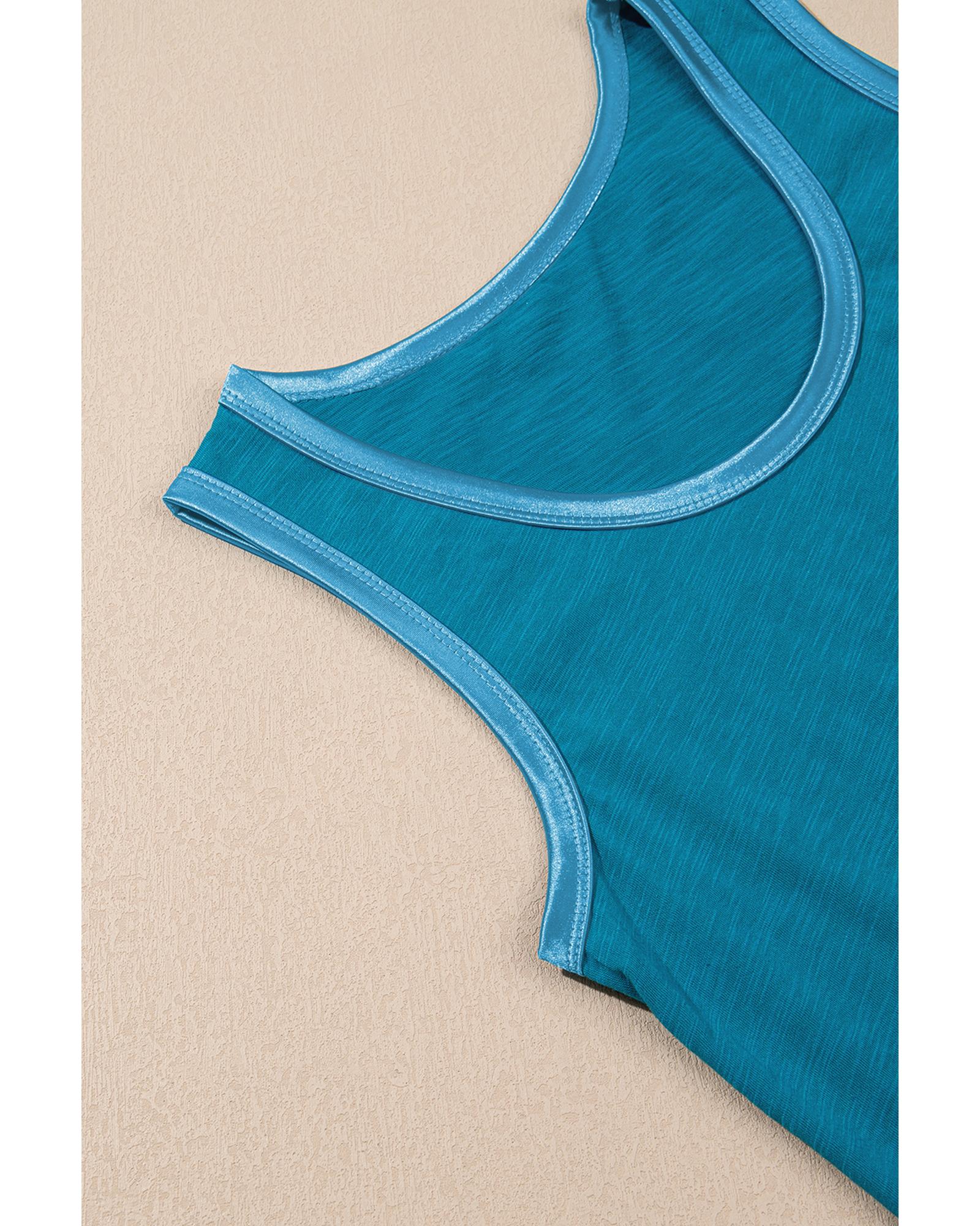 Peacock Blue Metallic Sheen Edge Scoop Neck Tank Top – L