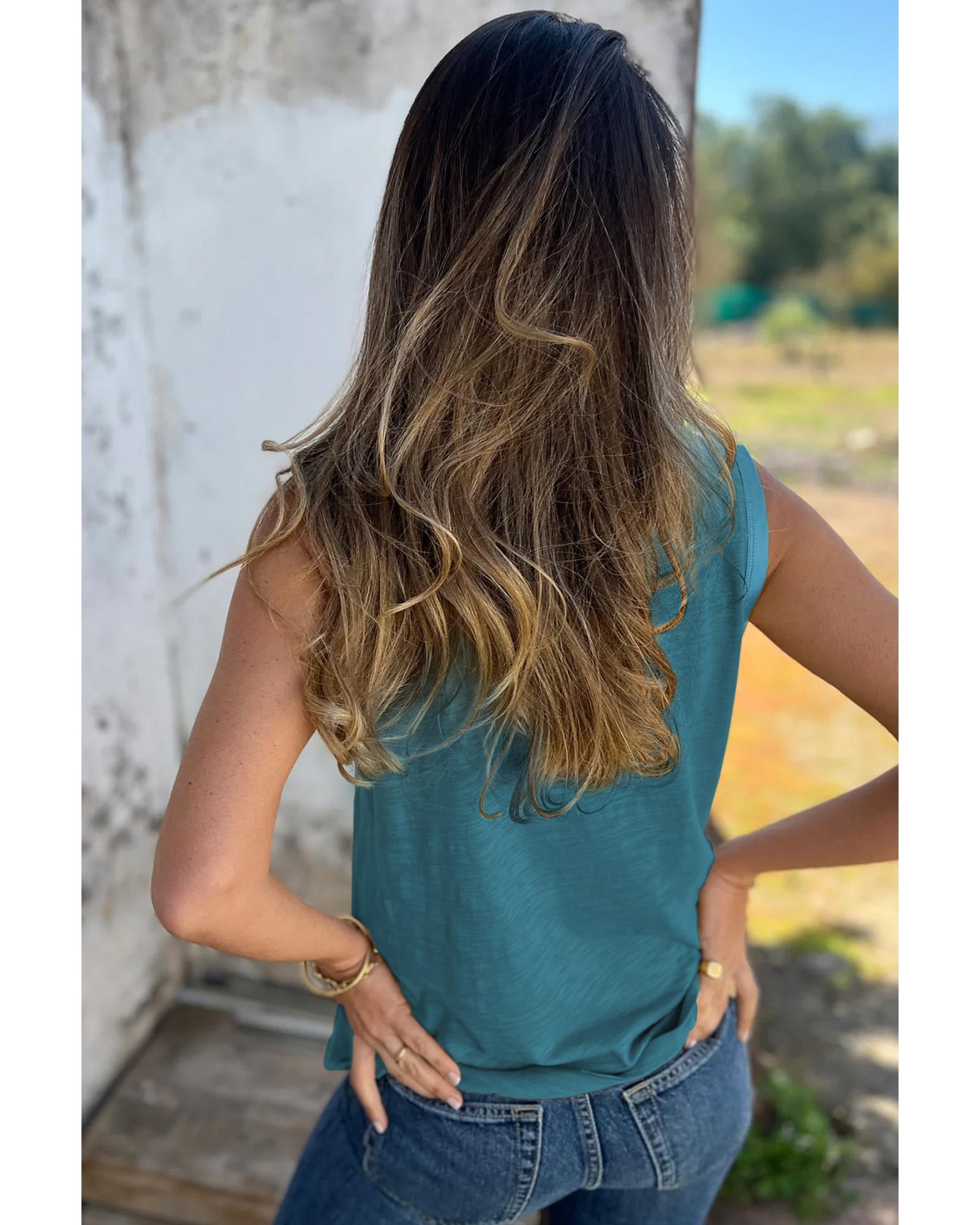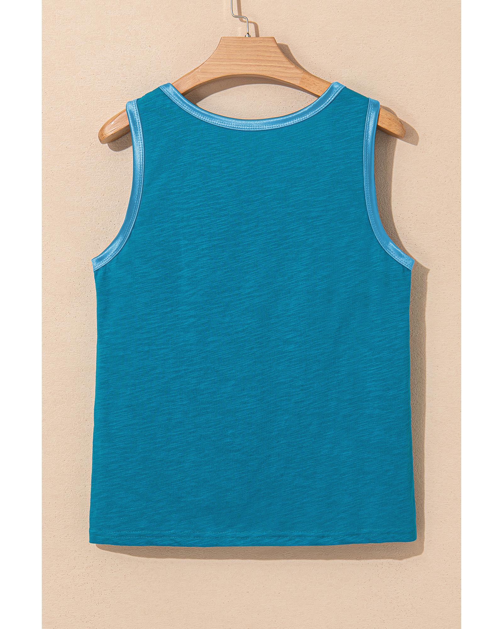Peacock Blue Metallic Sheen Edge Scoop Neck Tank Top – M