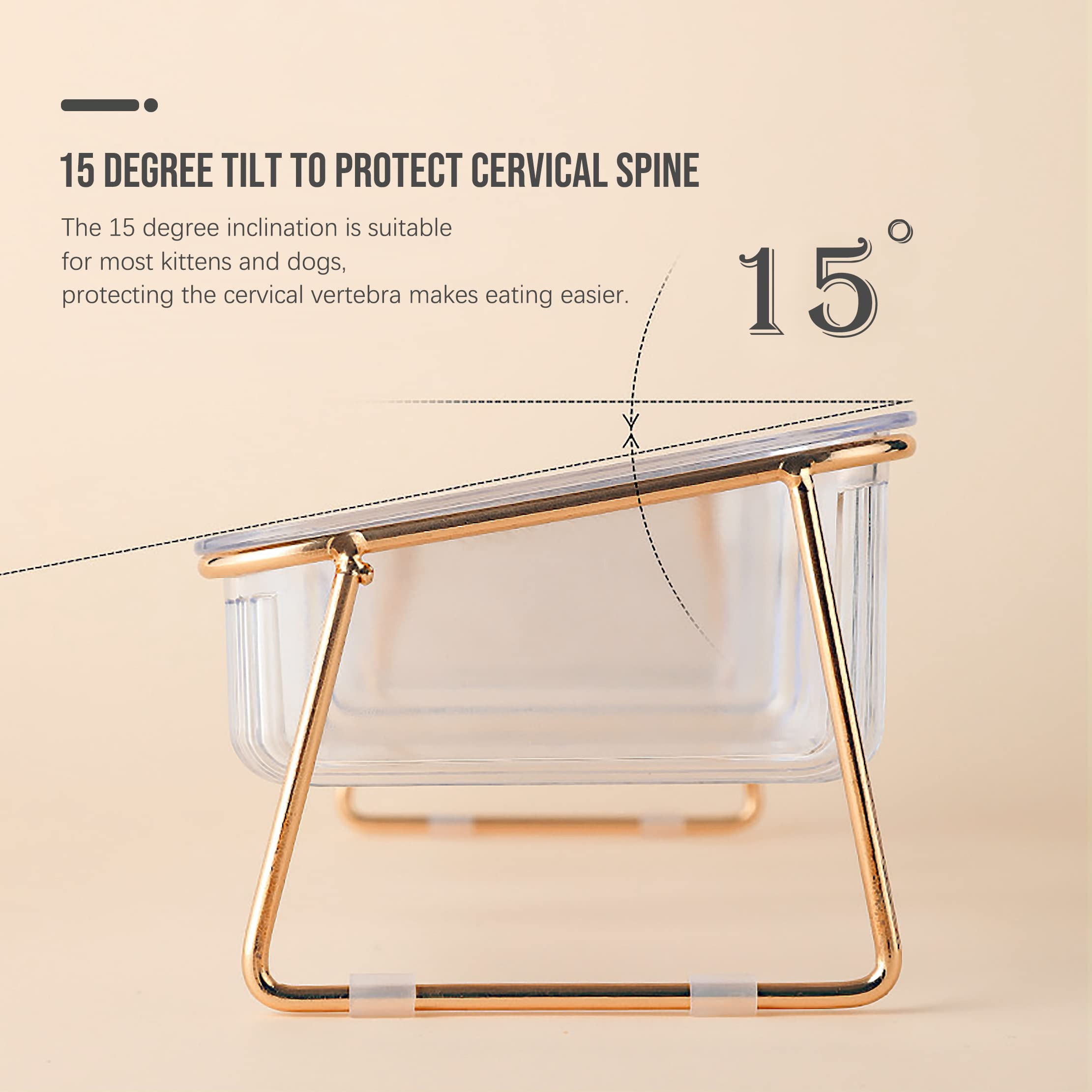 Tilted 15 degree tilt design can protect the pet’s cervical spine and help release the pressure on the pet’s neck.
