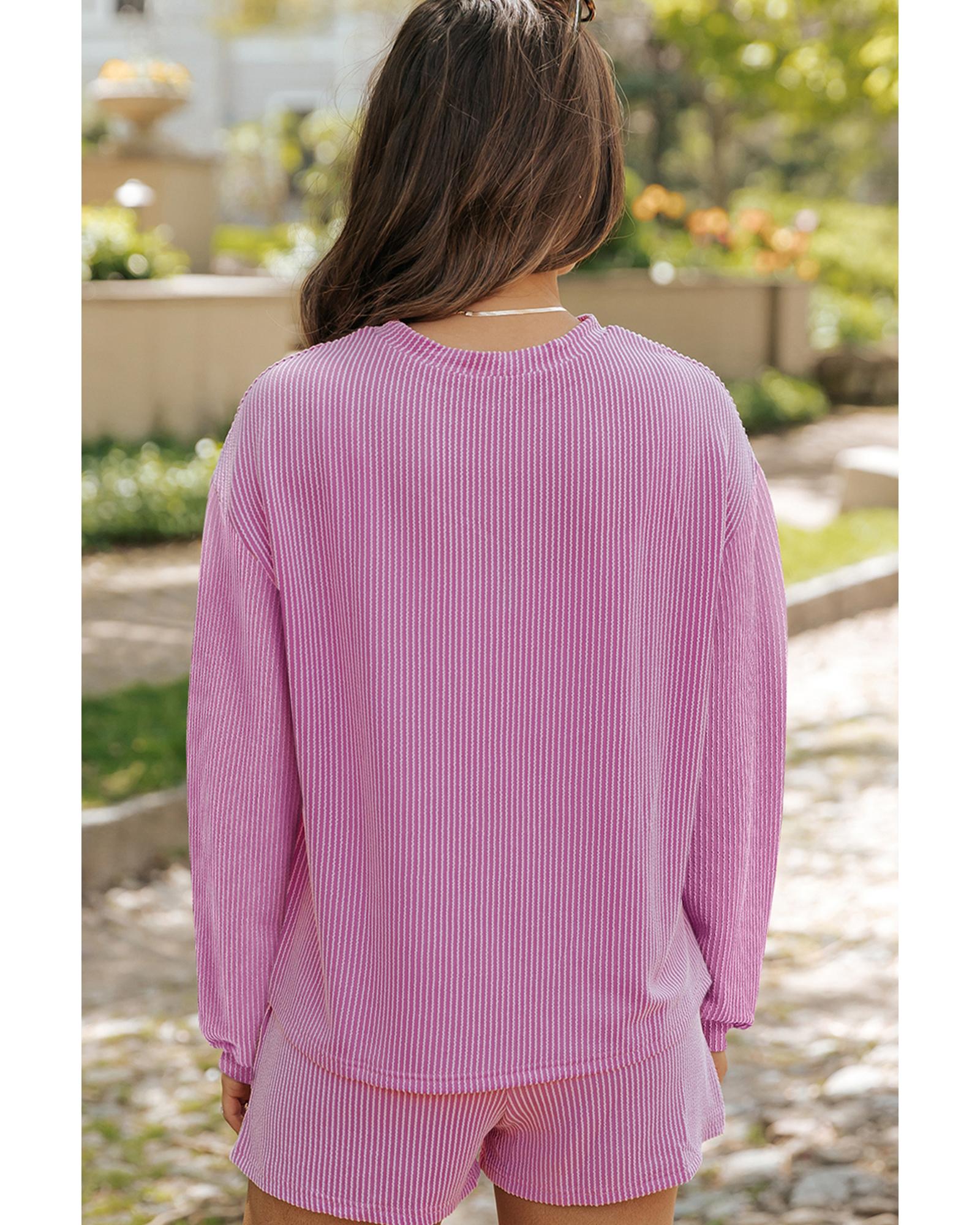 Phalaenopsis Bowknot Patched Pattern Corded Long Sleeve Top and Shorts Outfit – XL