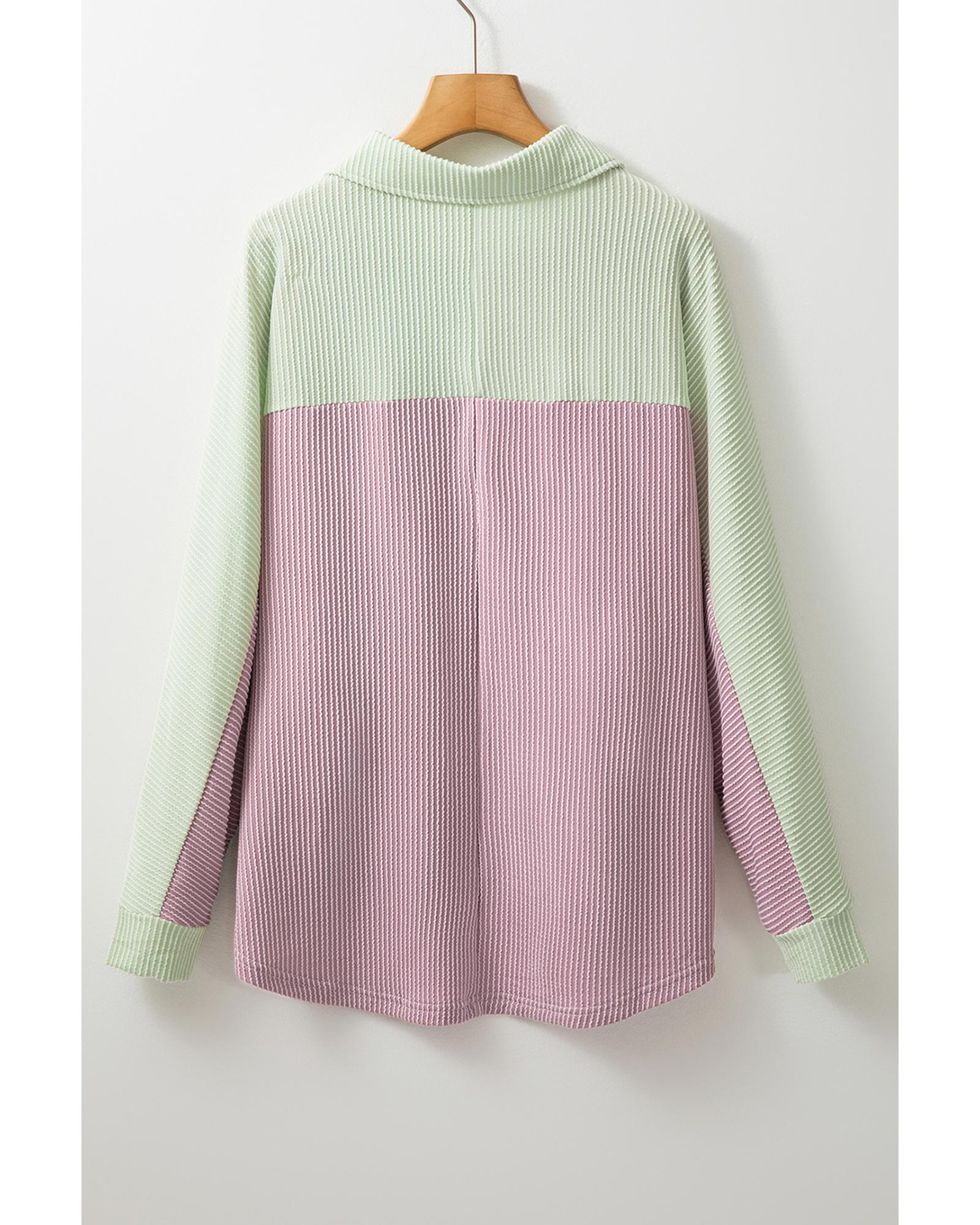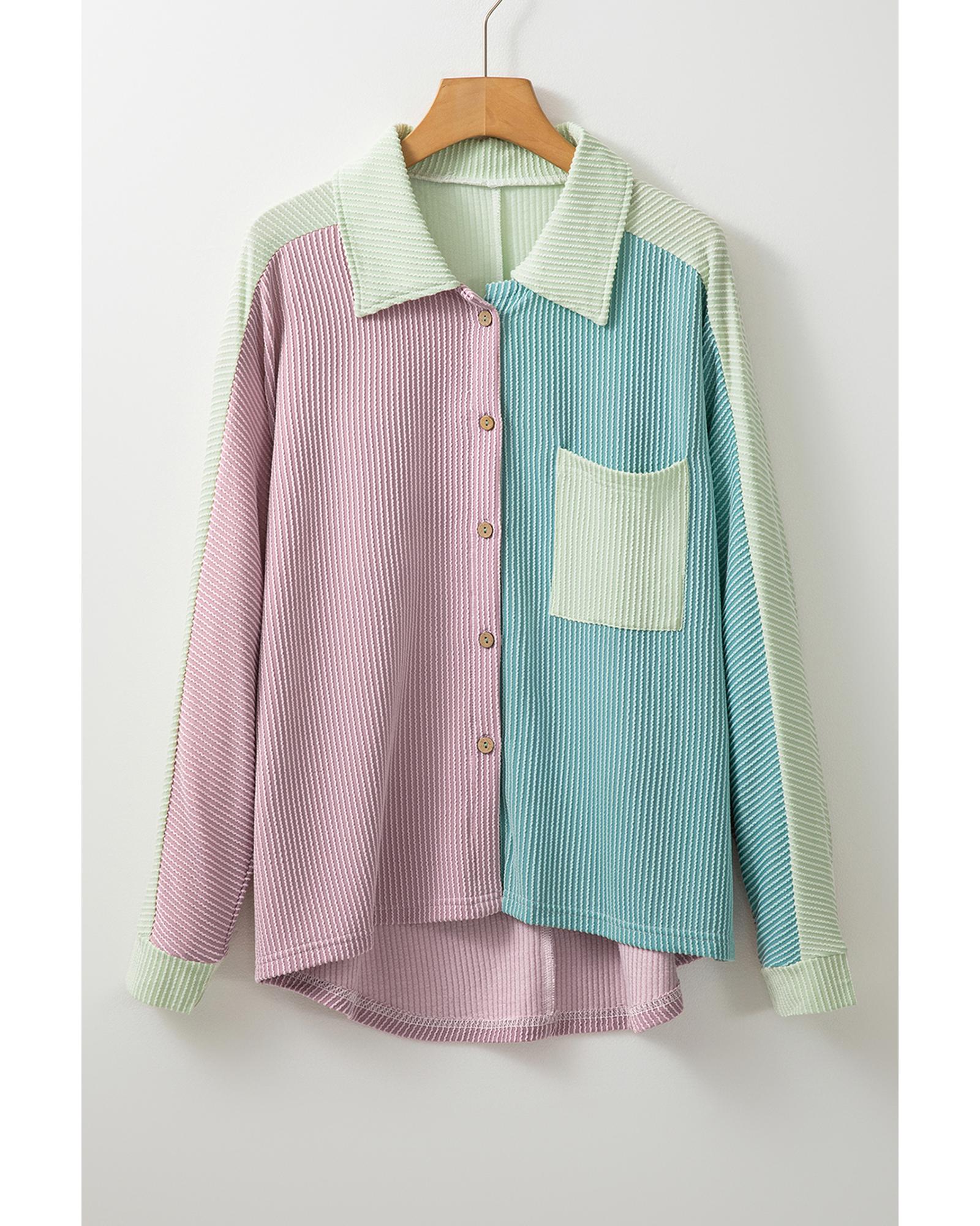 Phalaenopsis Color Block Corded Buttoned Oversized Shacket – S