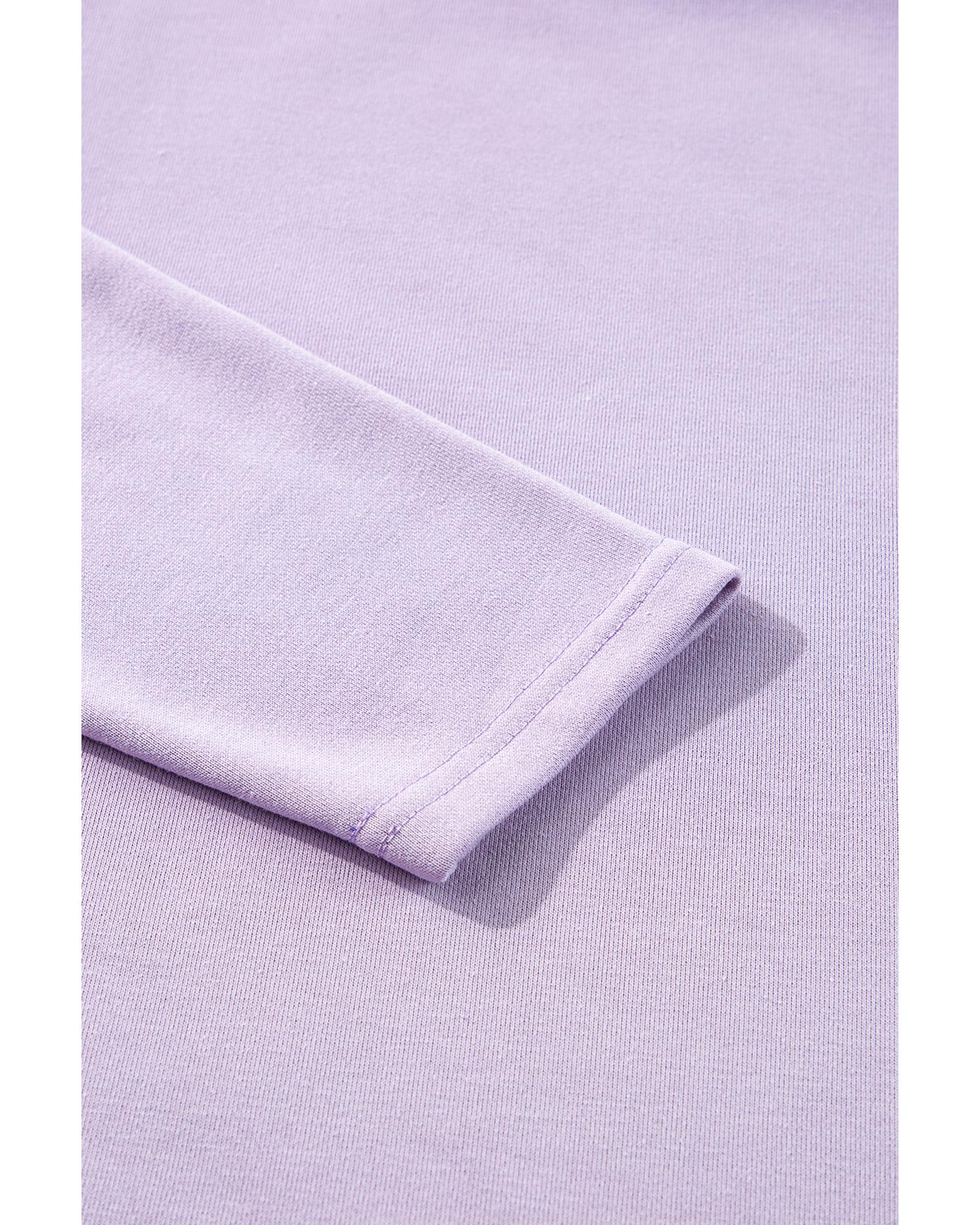 Pink Waffle Knit Bishop Sleeve Split Oversized Sweatshirt - M