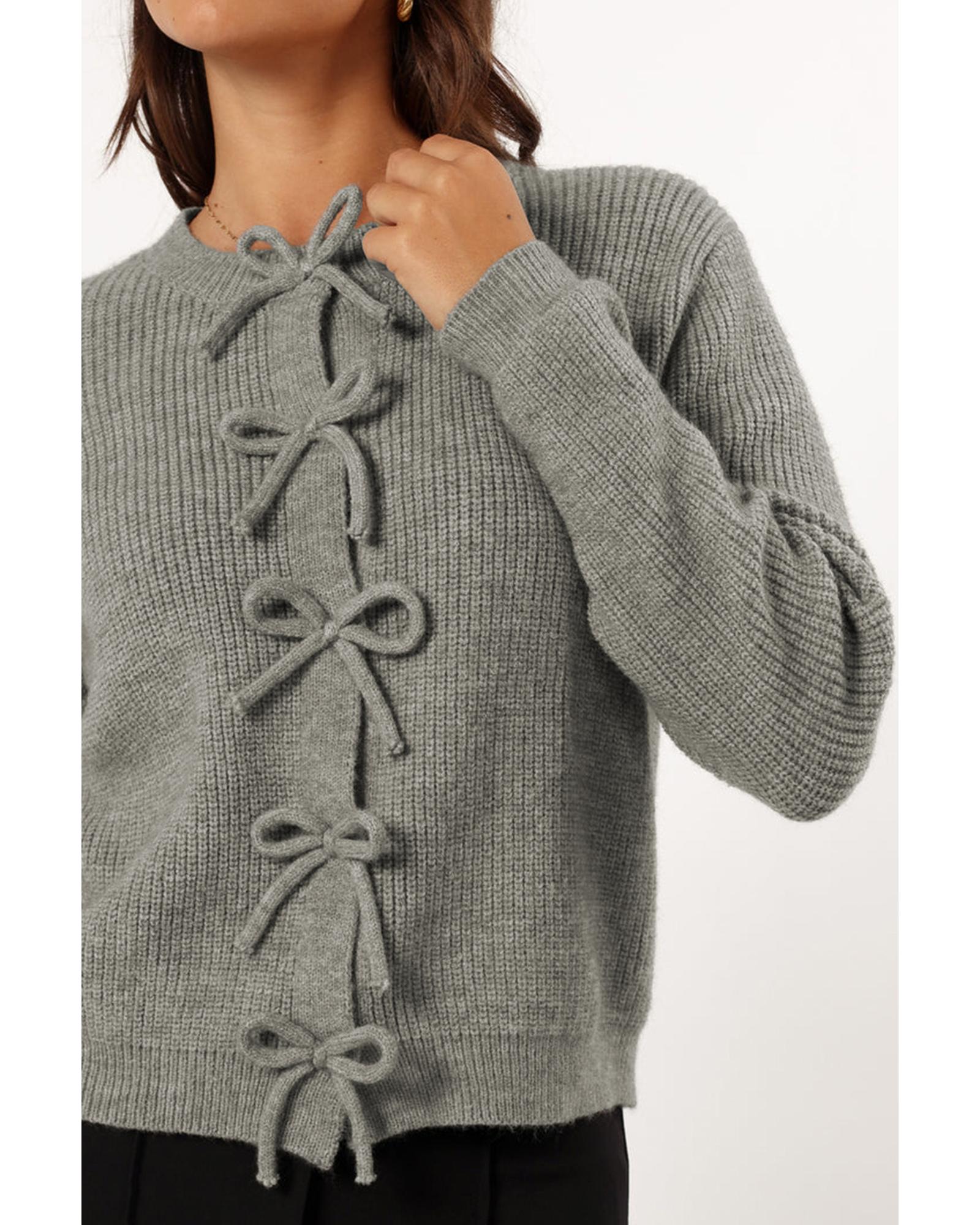Philippine Gray Ribbed Knit Bow Front Buttoned Cardigan – S