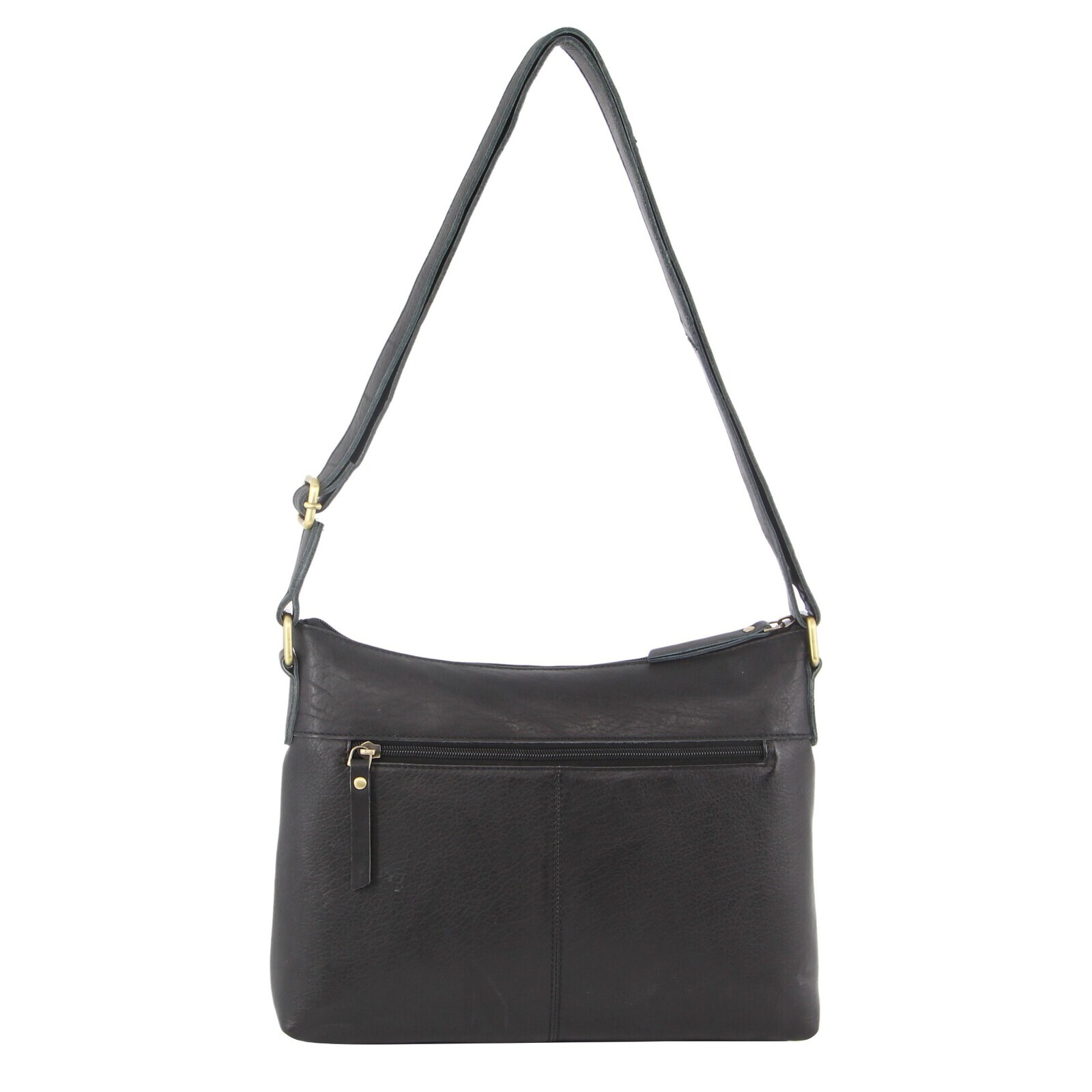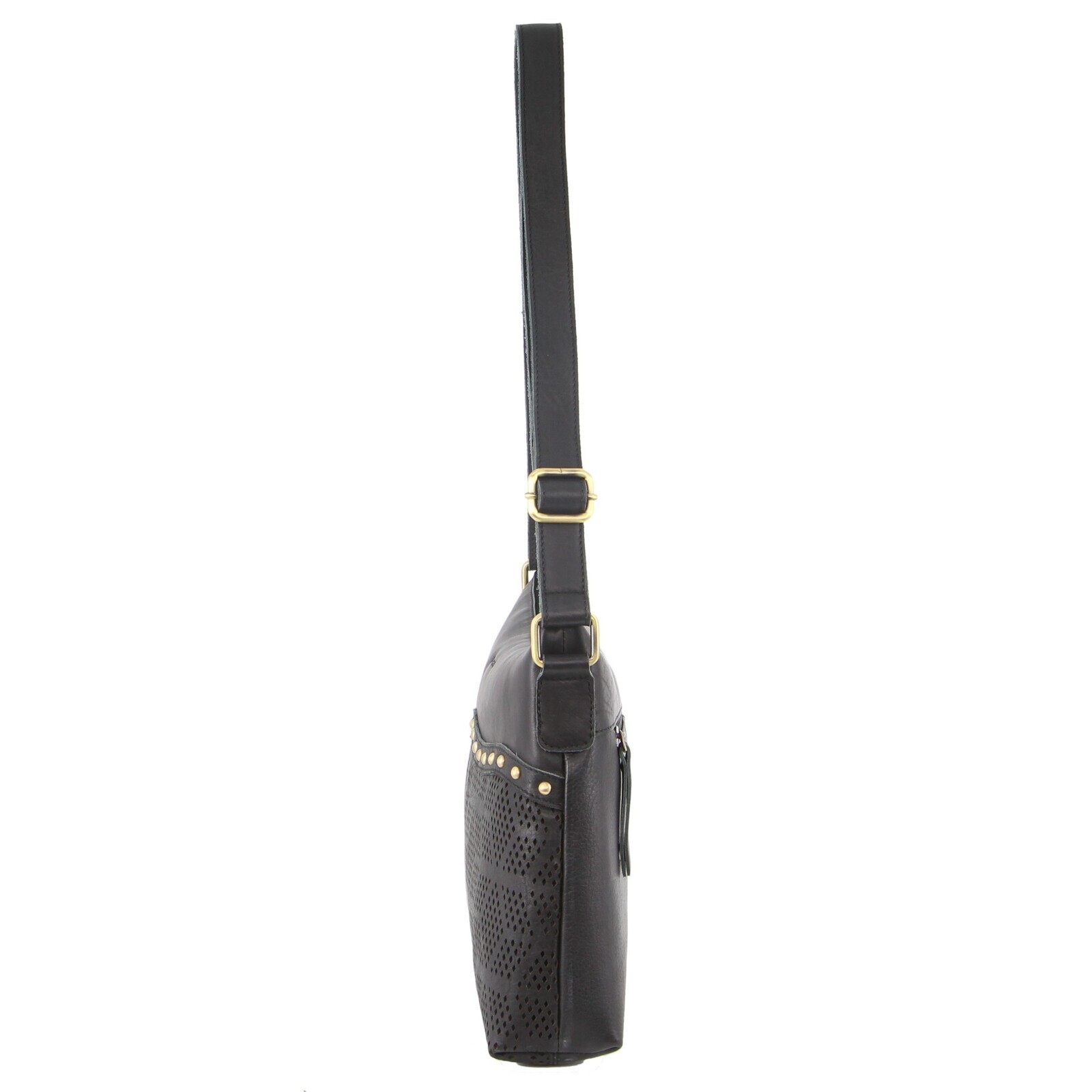 Pierre Cardin Womens Leather Perforated Cross-Body Bag with stud Detailing – Black