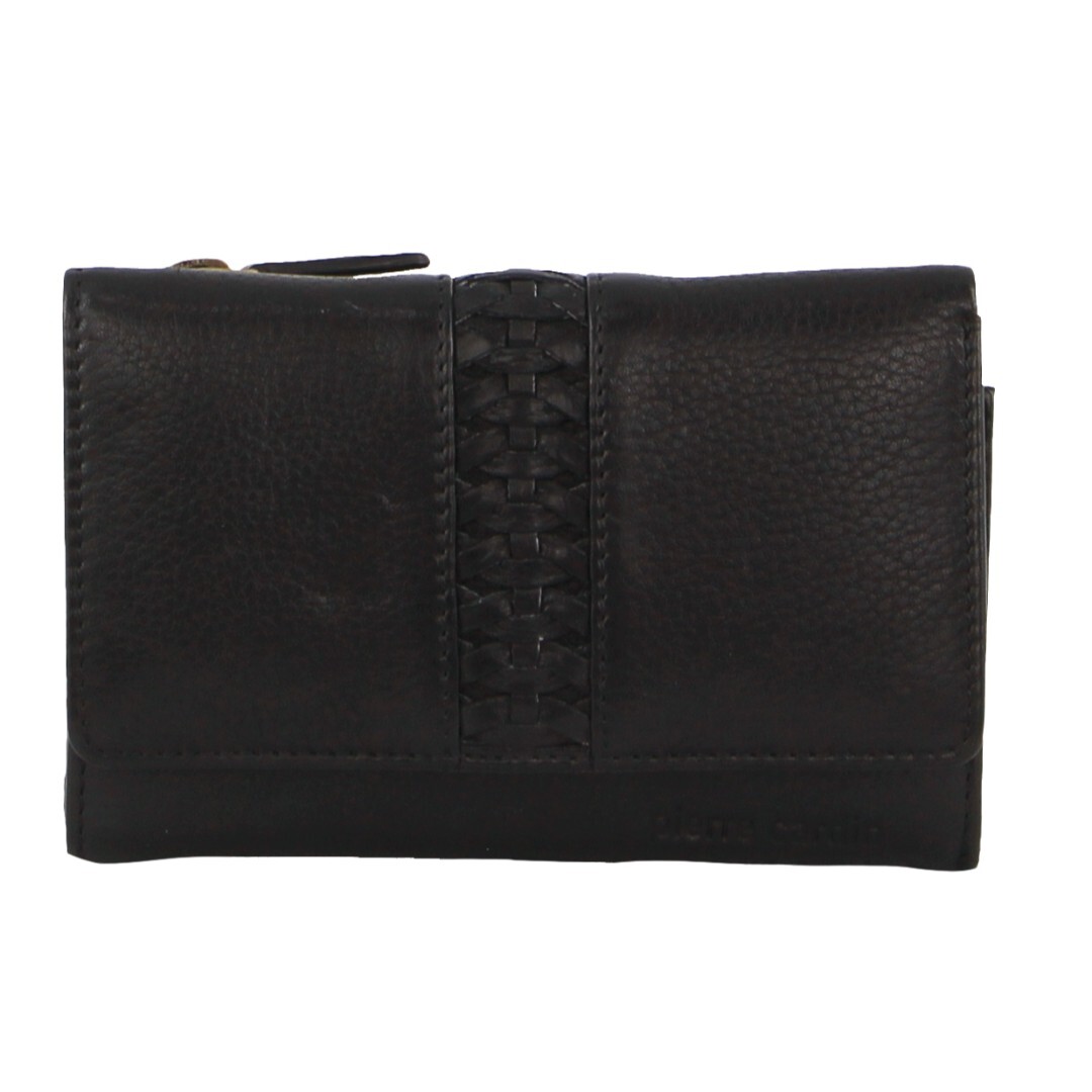 Pierre Cardin Womens Leather Woven Design Tri Fold RFID Wallet Travel in Black