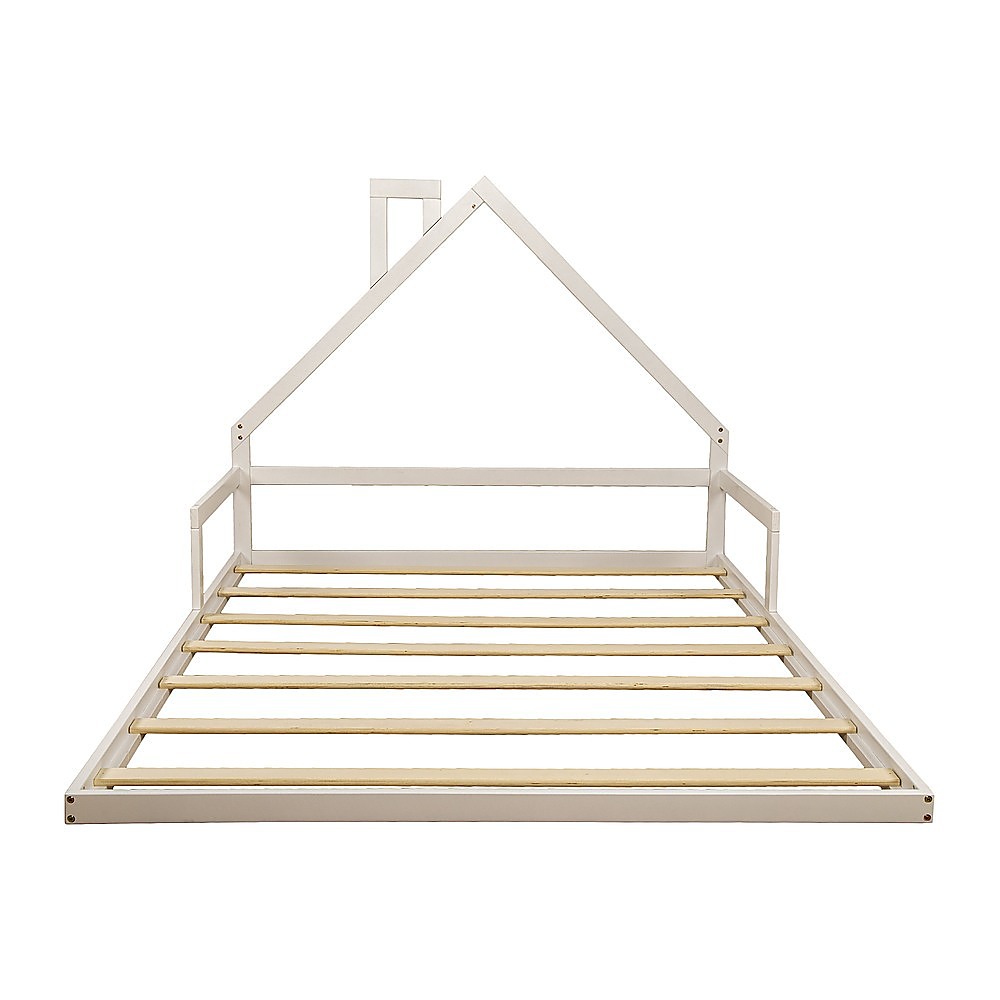 Pine Wood Floor Bed House Frame for Kids and Toddlers