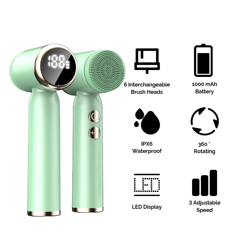 6-in-1 Electric Facial Cleansing Brush with LED Display