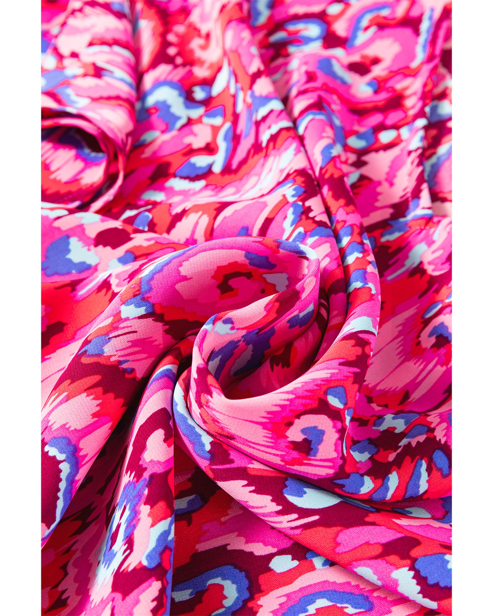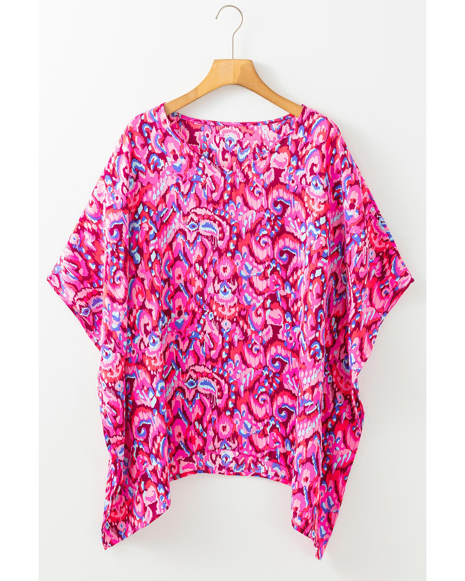 Pink Abstract Print V Neck Half Sleeve Loose Fit Tunic Blouse – L