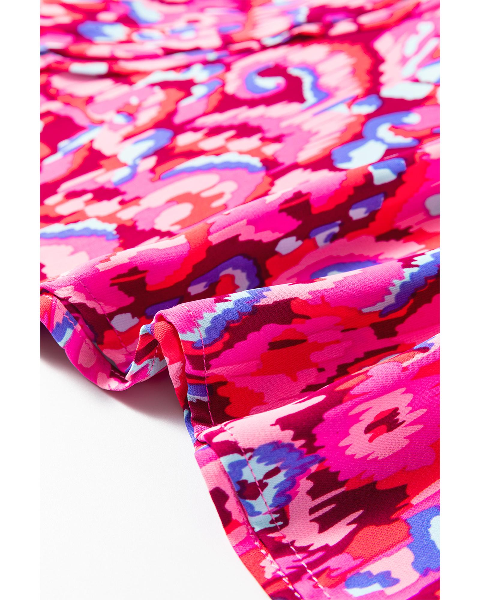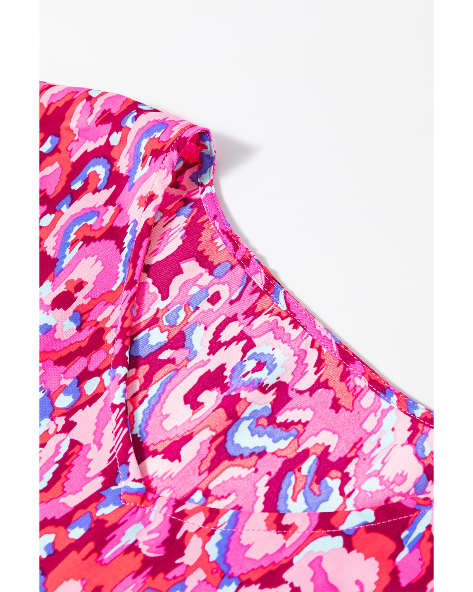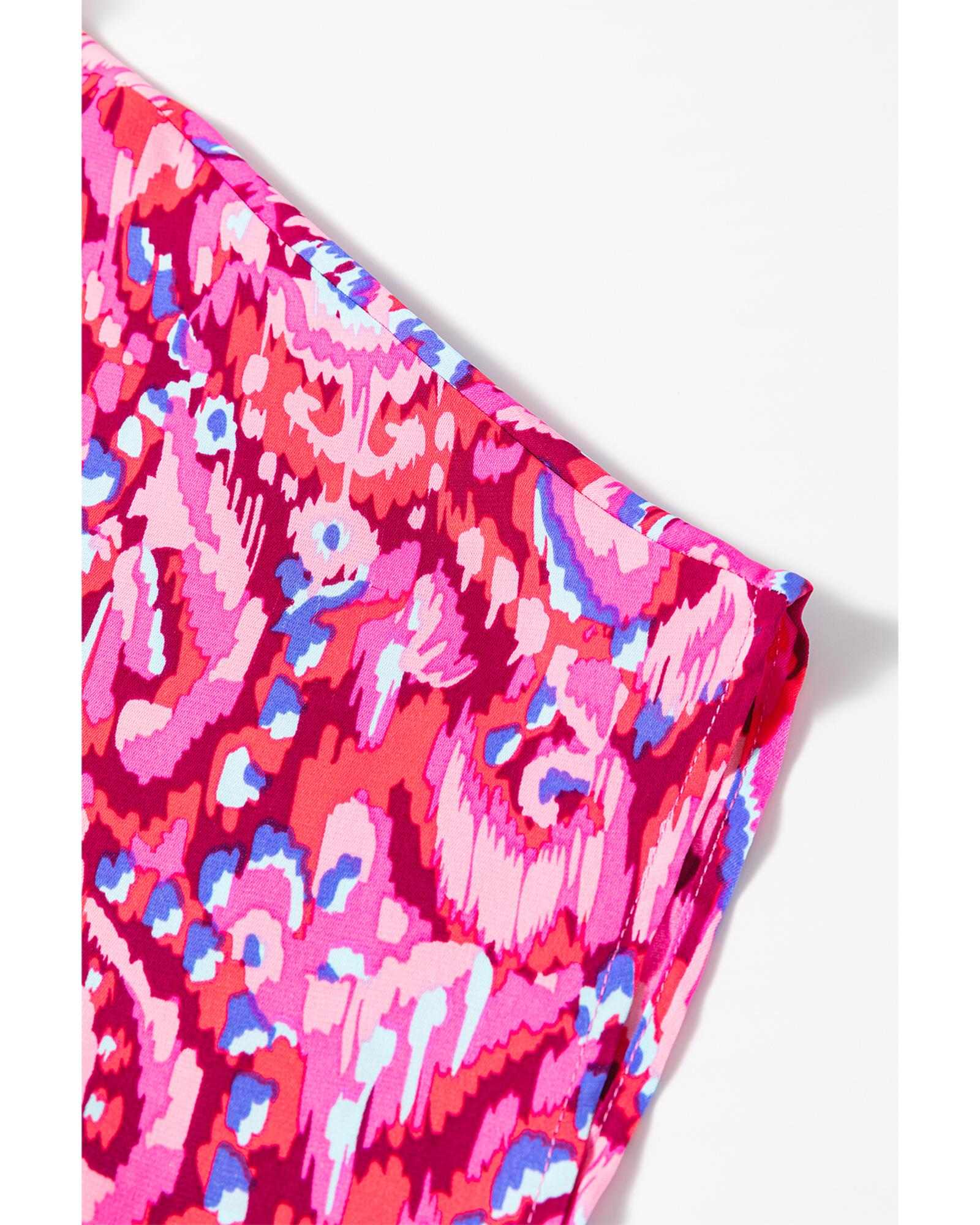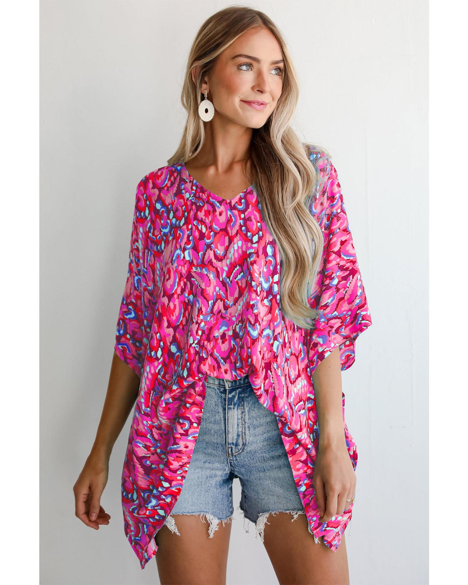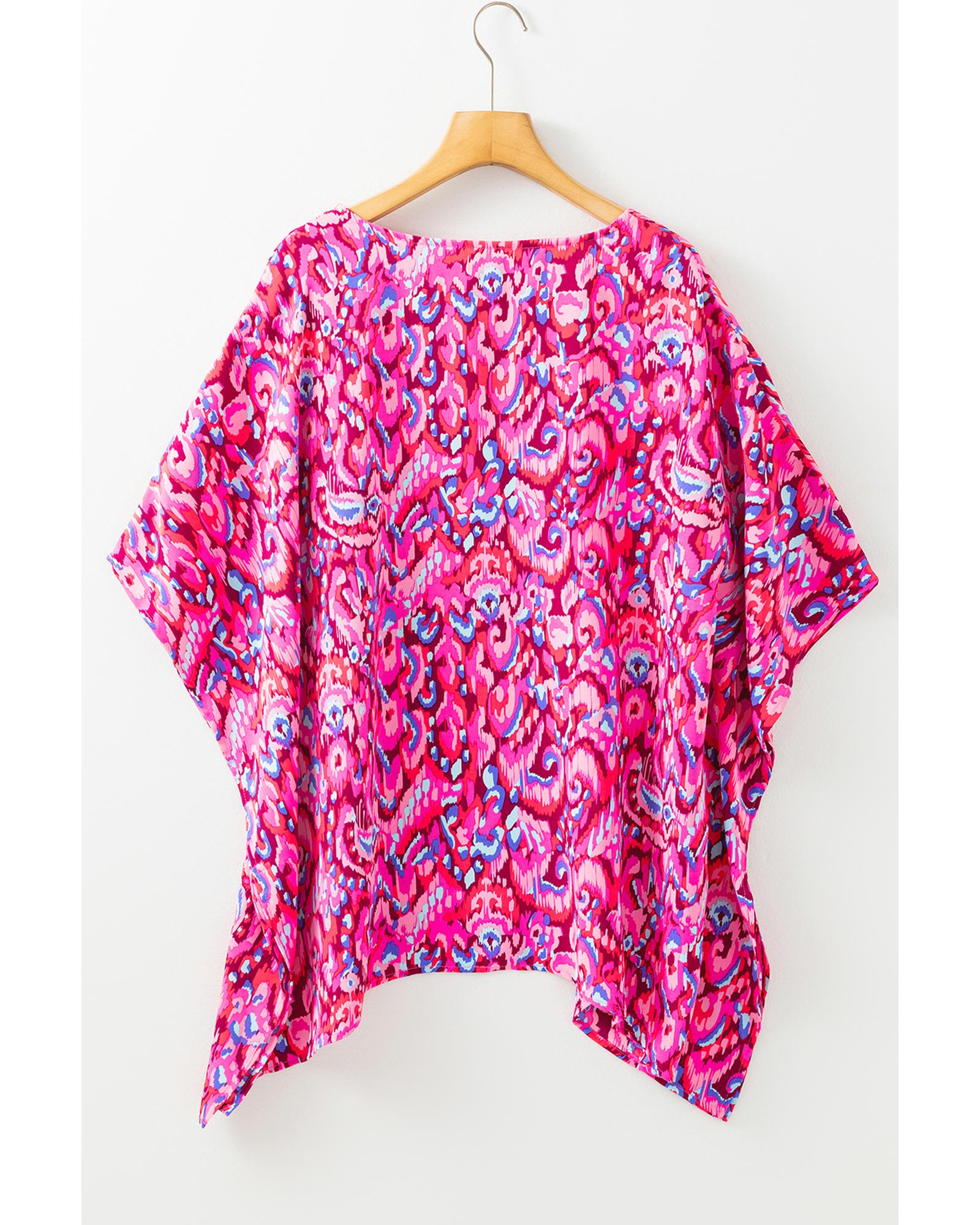 Pink Abstract Print V Neck Half Sleeve Loose Fit Tunic Blouse – M