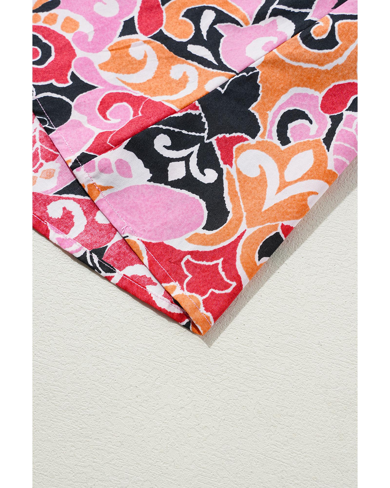 Pink Crinkled Colorblock Patchwork Flutter Tiered Mini Dress - M