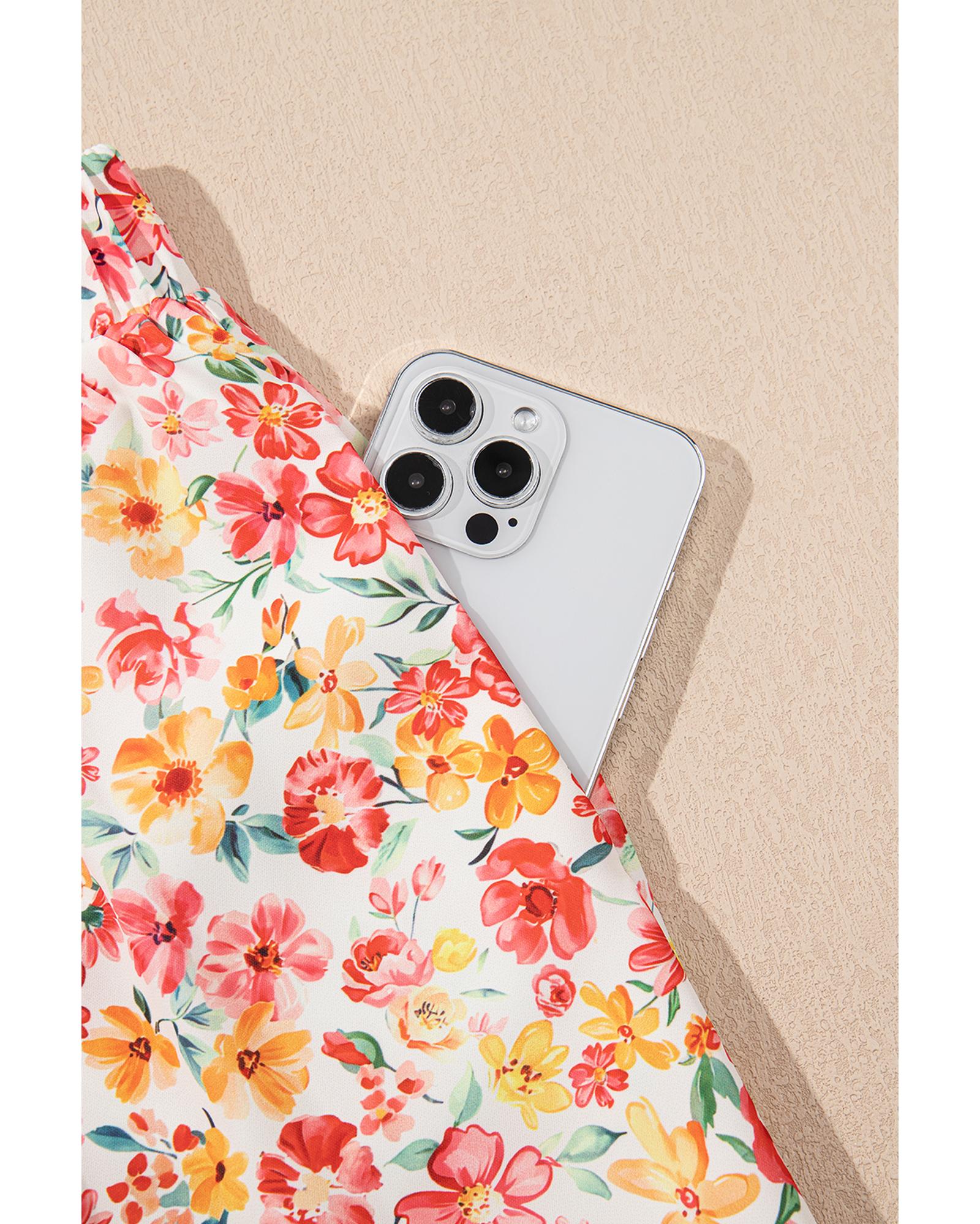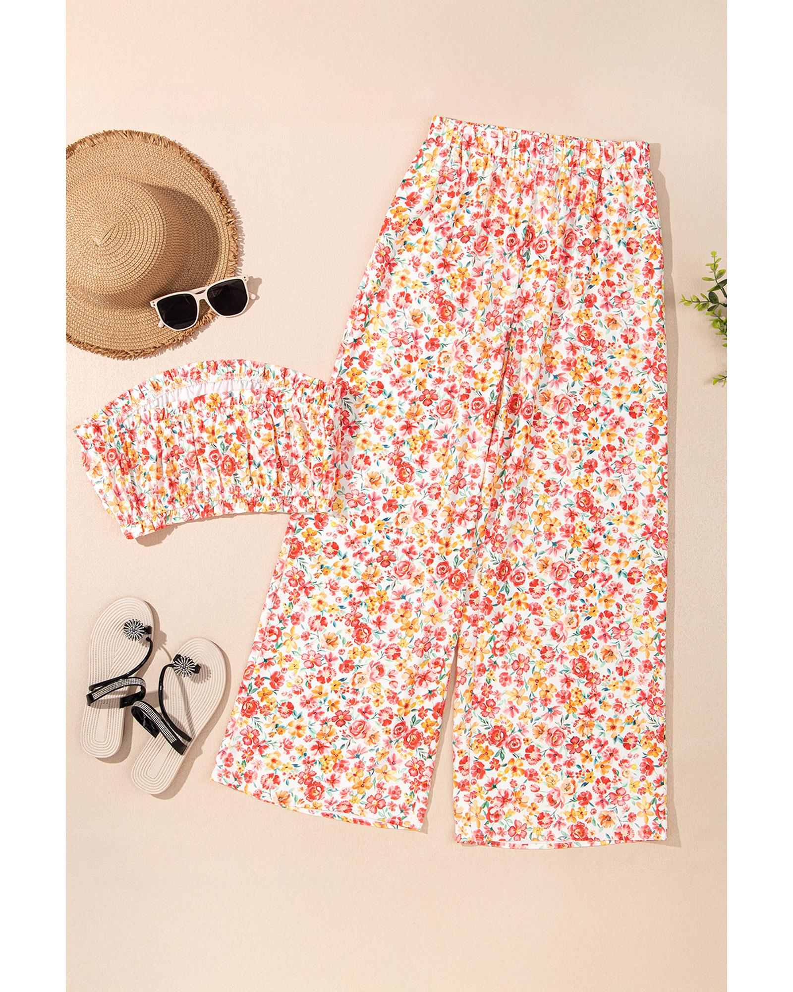 - Pink Boho Floral Bandeau Top and High Waist Wide Leg Pants Set