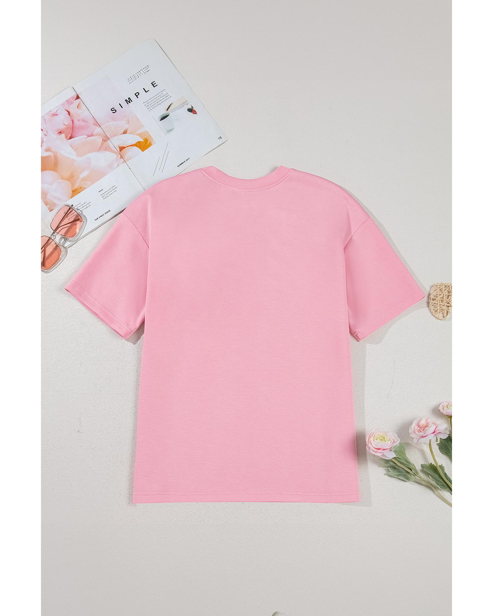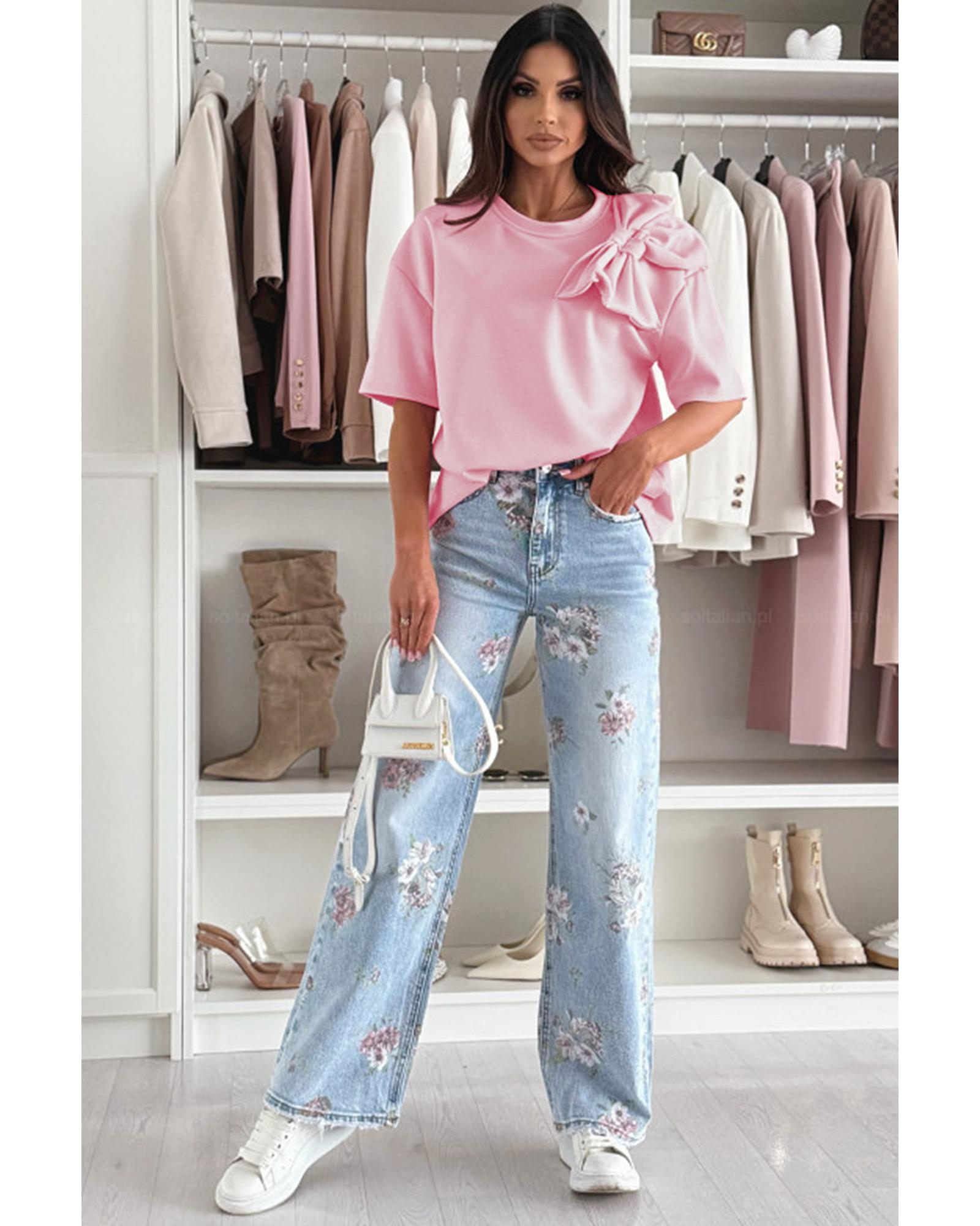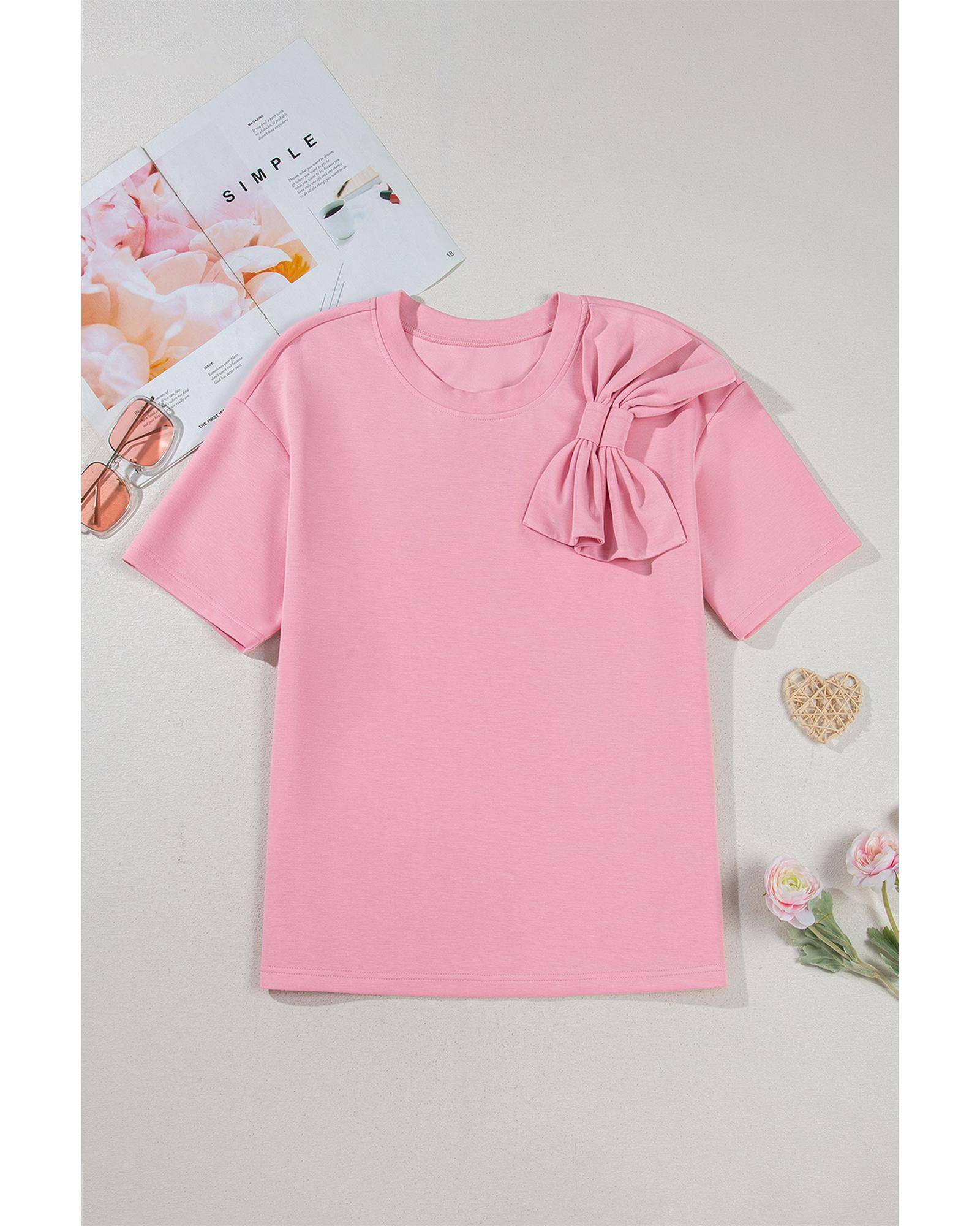Pink Bow Applique Half Sleeve T-shirt – XL