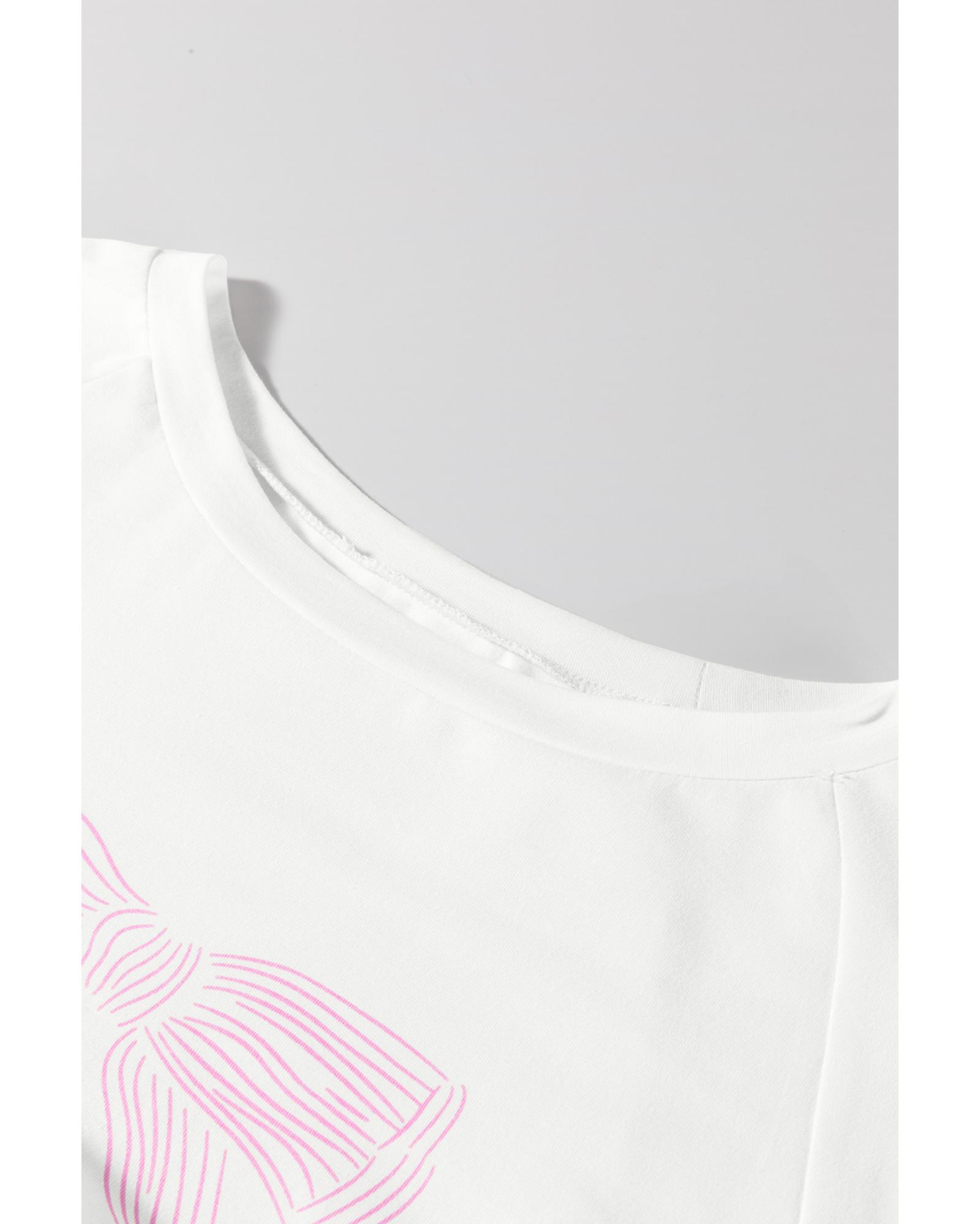 Pink Bow Knot Print Loose Fit Two Piece Casual Lounge Set – M
