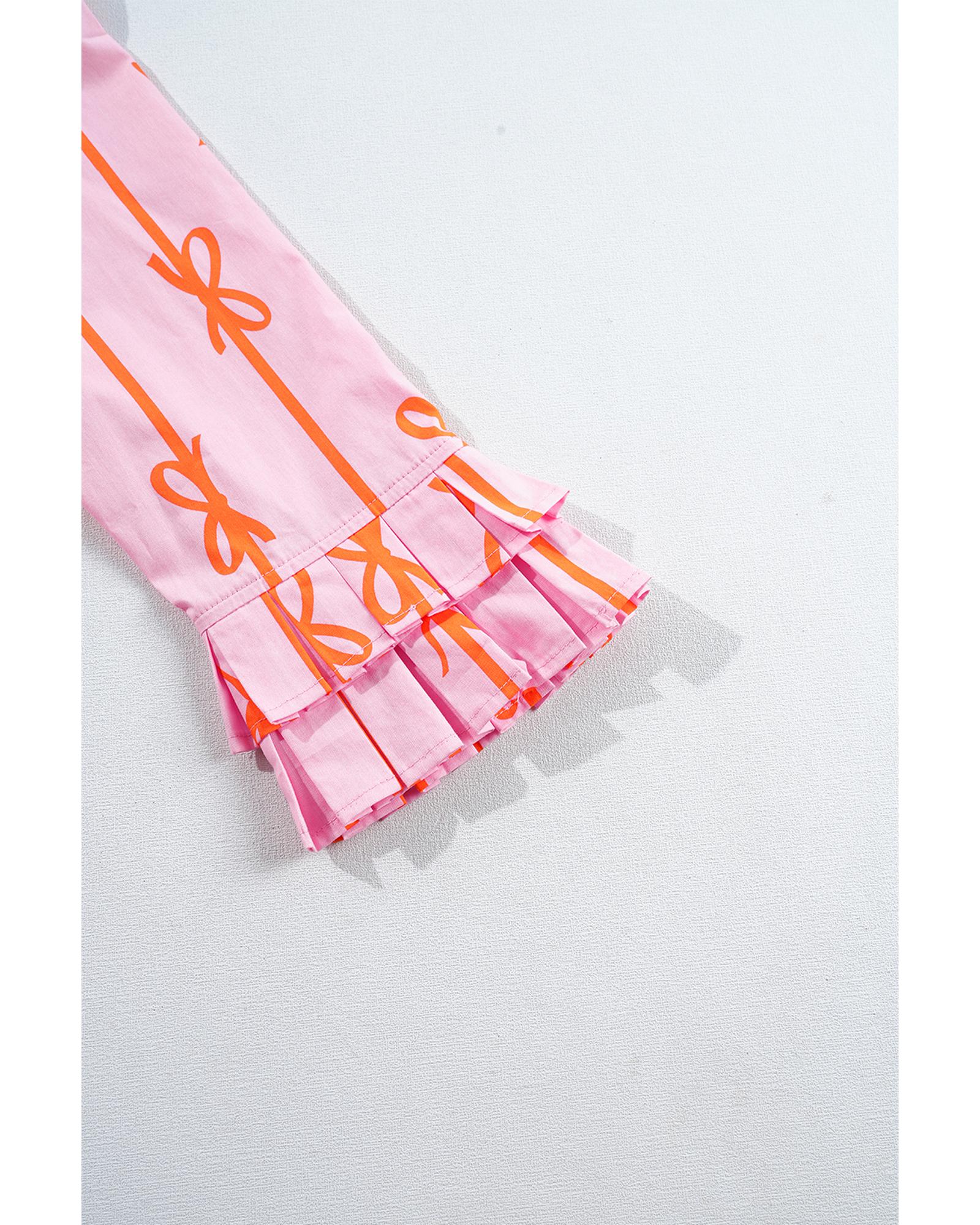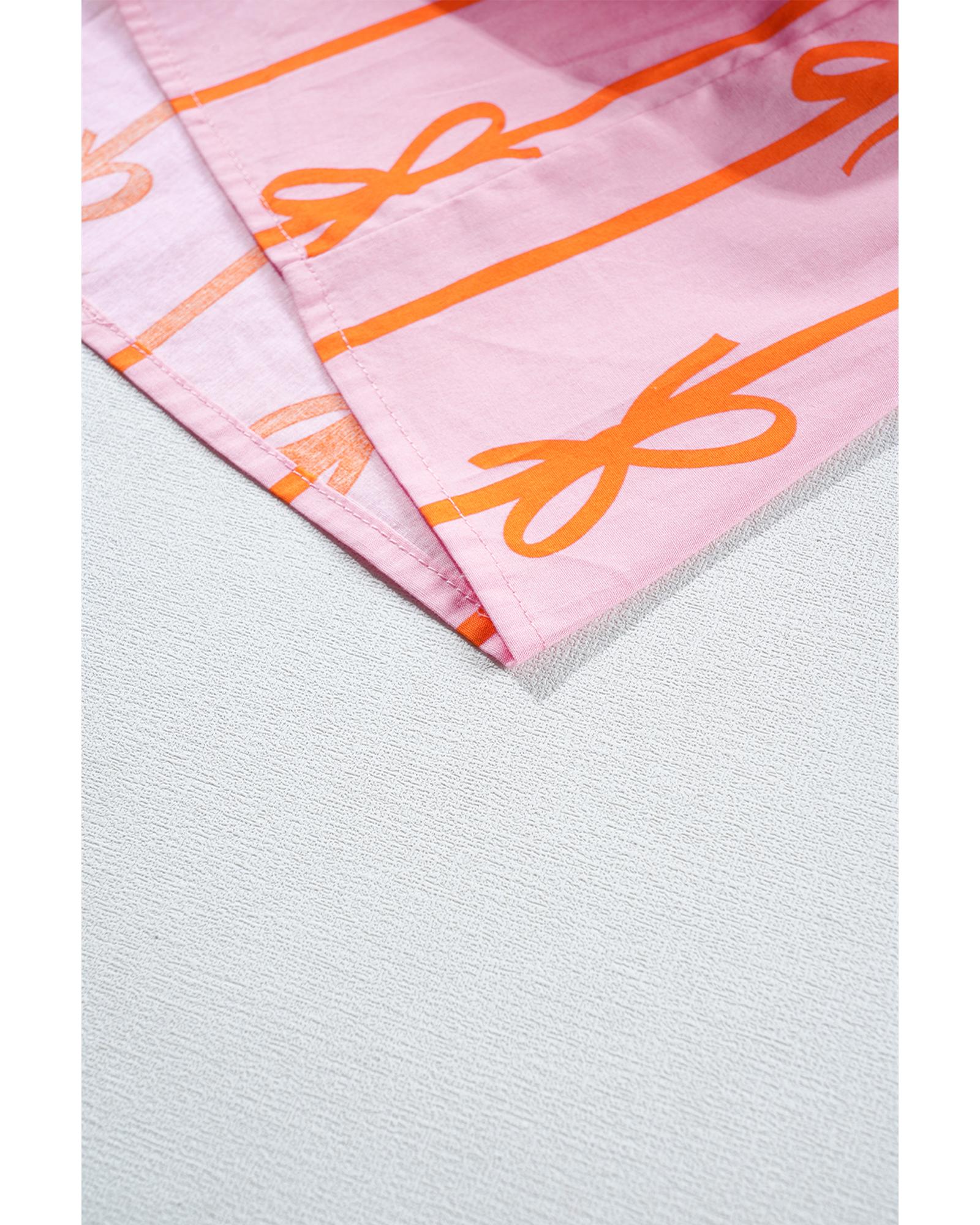 Pink Bowknot Striped Printed Tiered Ruffled Mini Shirt Dress – L