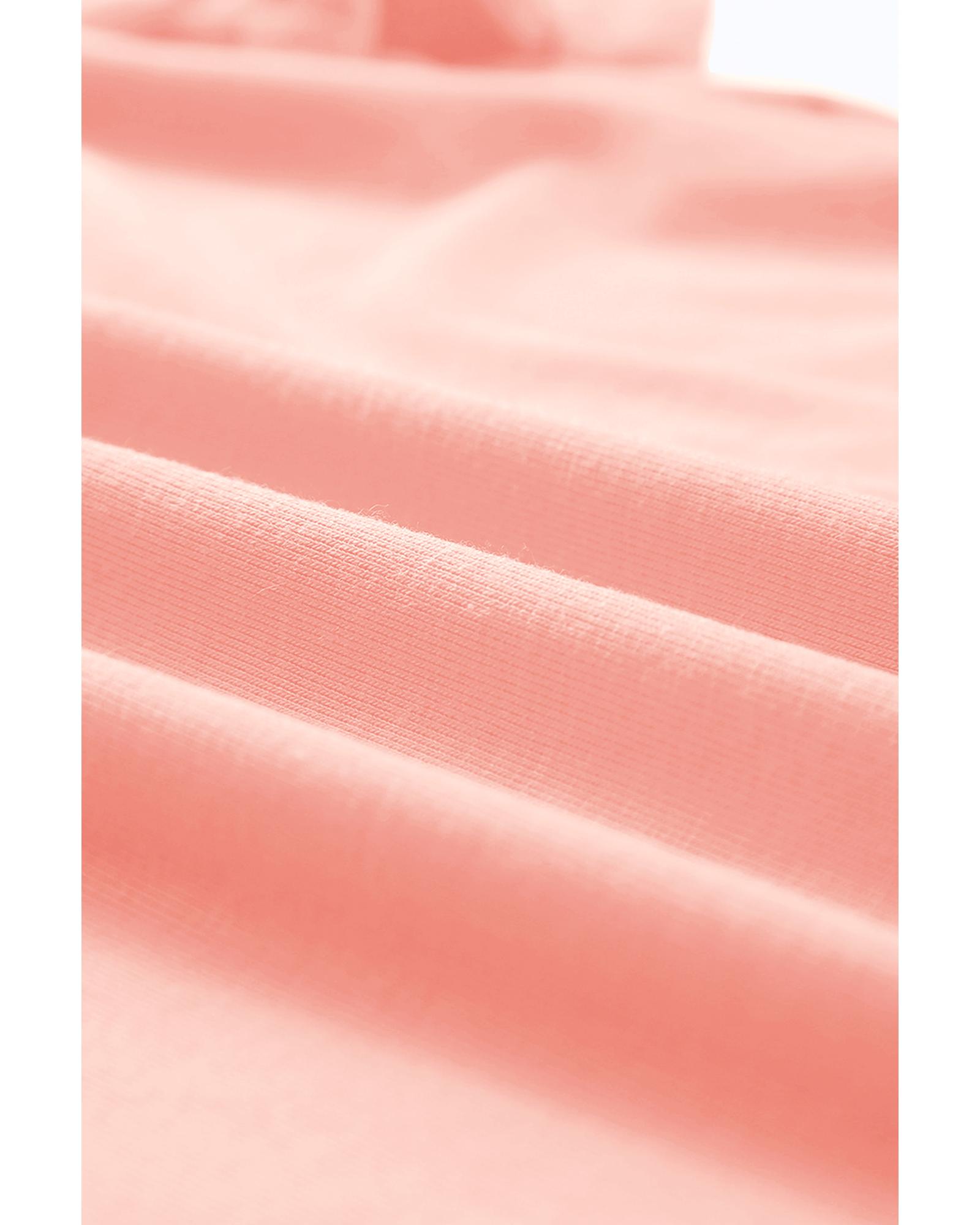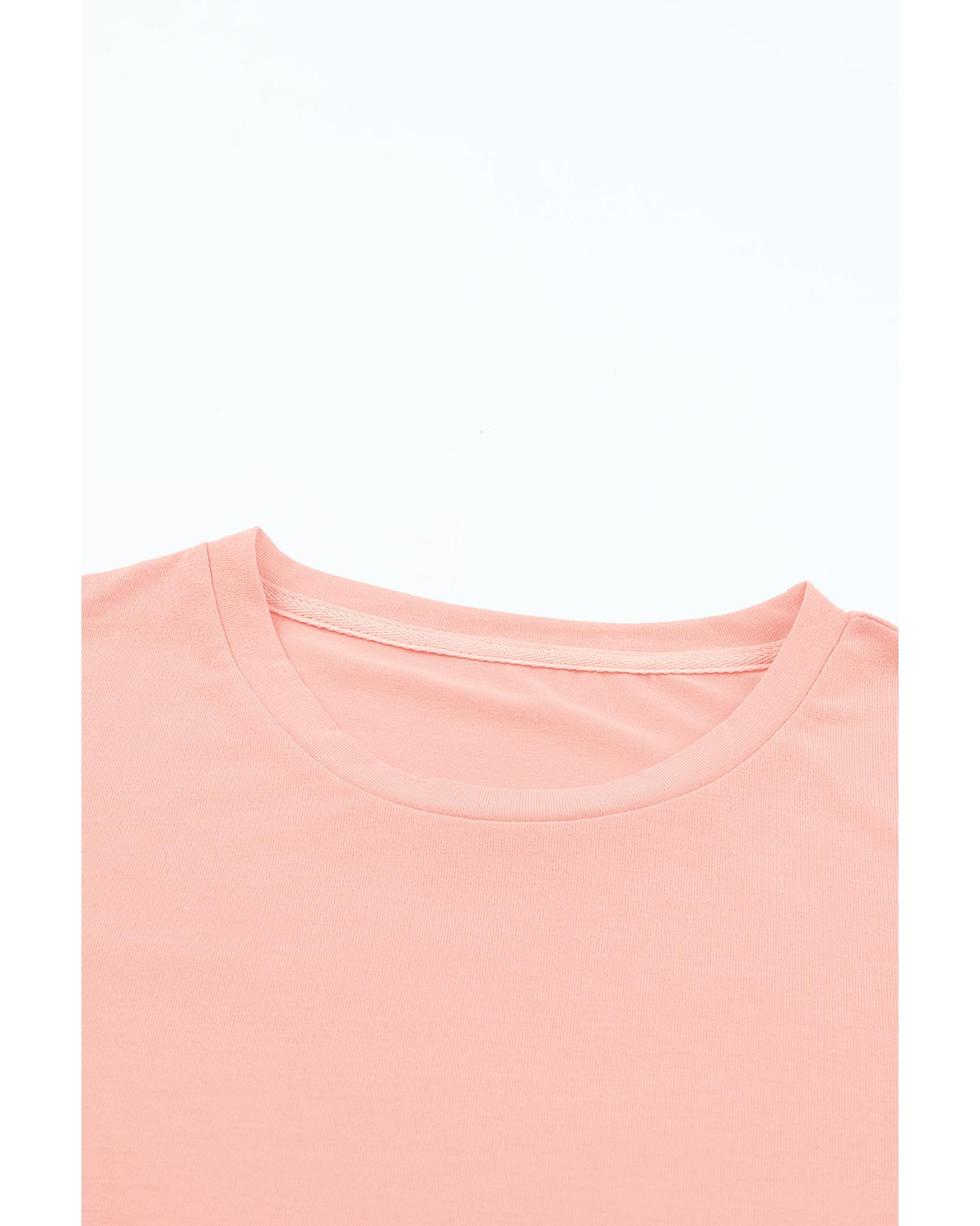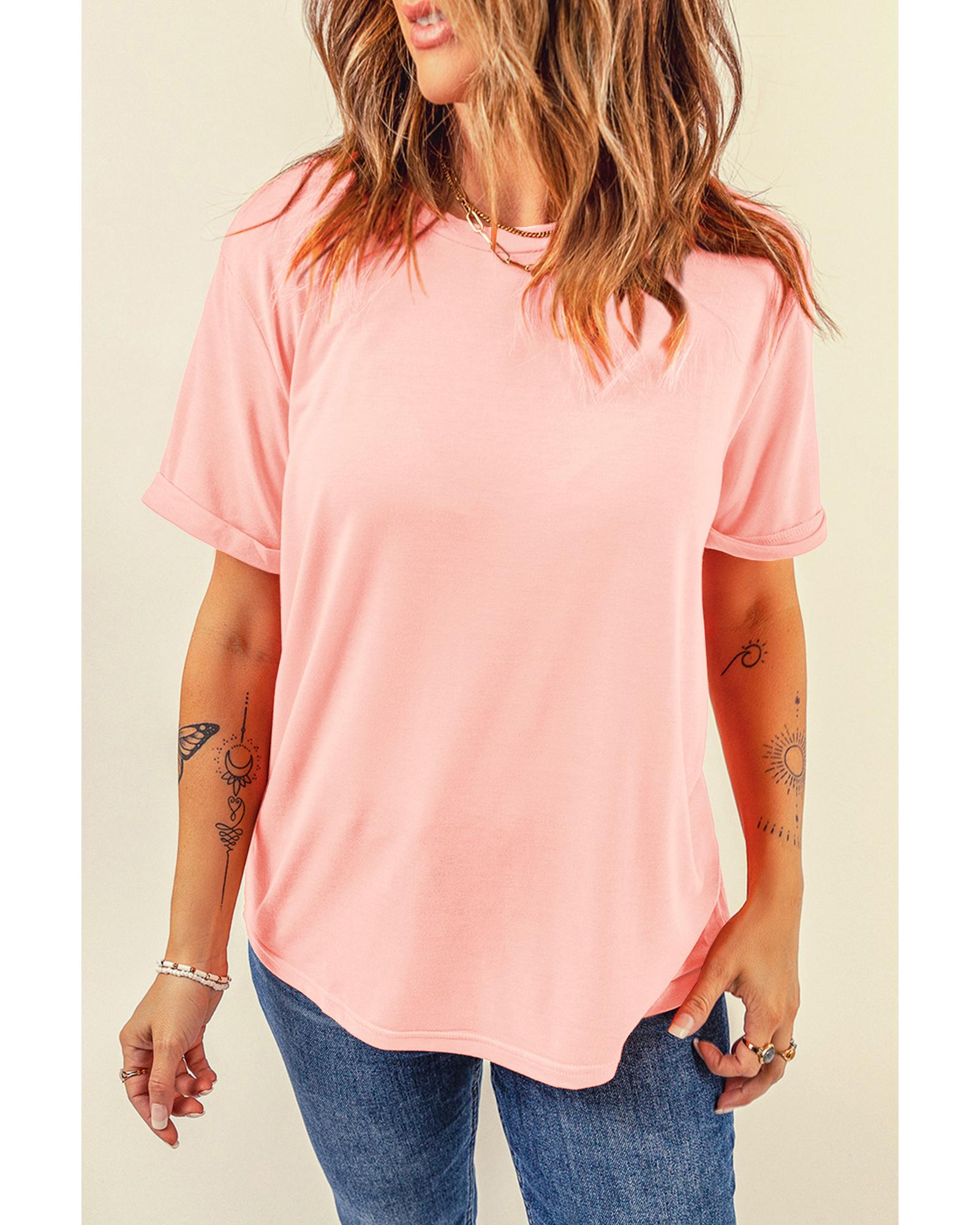 Pink Casual Plain Crew Neck Tee – S
