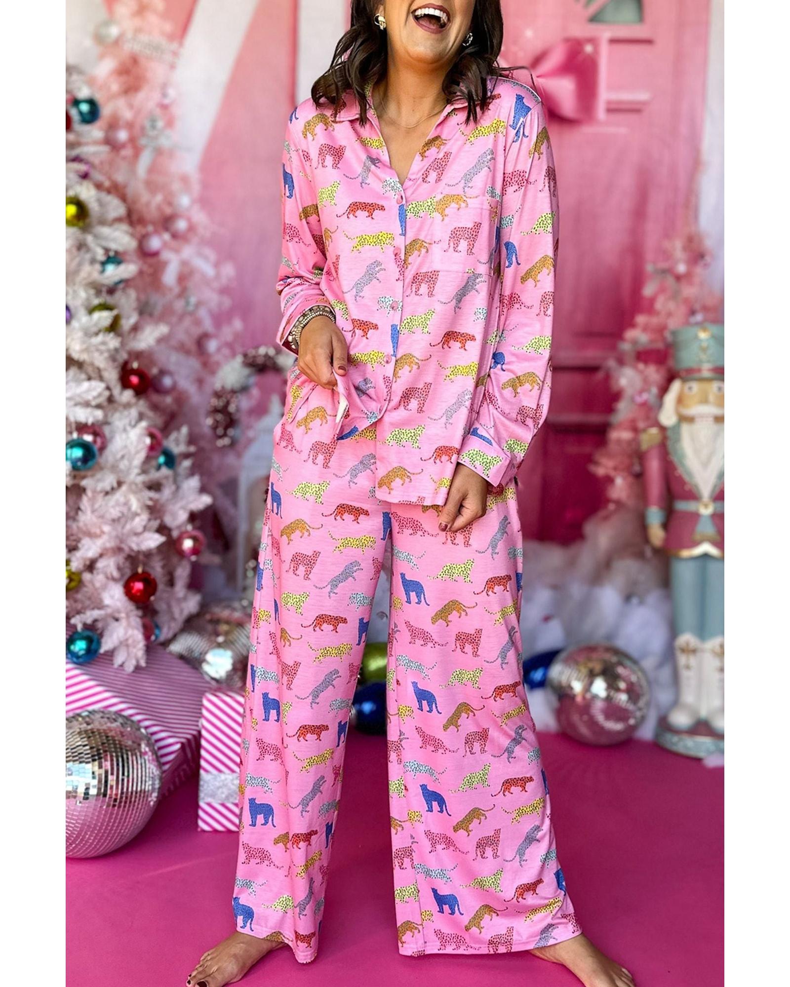 Pink Cheetah Print Shirt and Pants Pajama Set – S