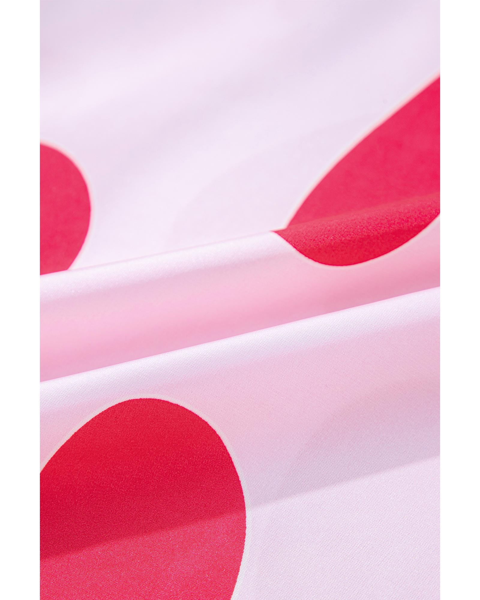 Pink Valentine Heart Shape Print Long Sleeve Top Shorts Lounge Set - M