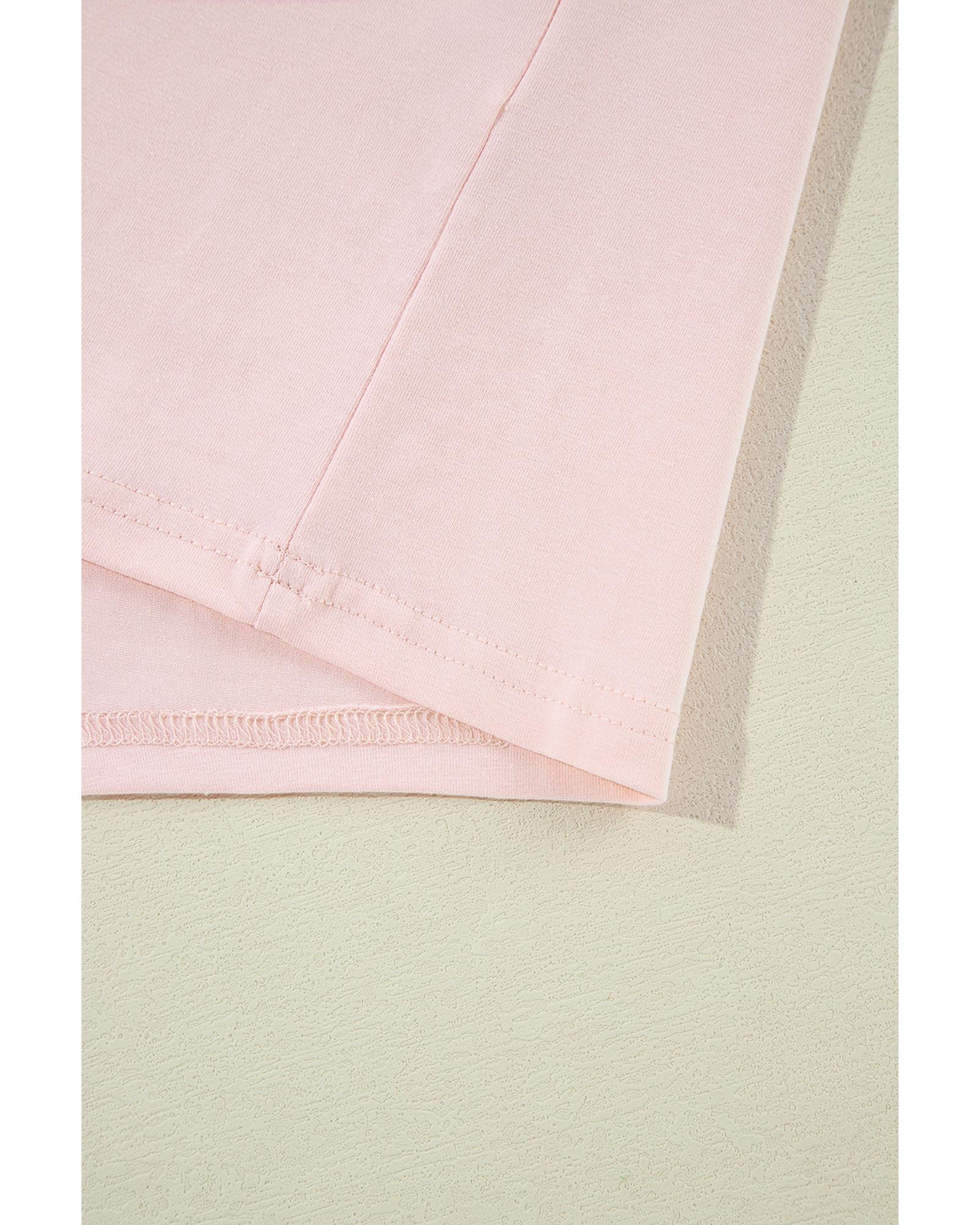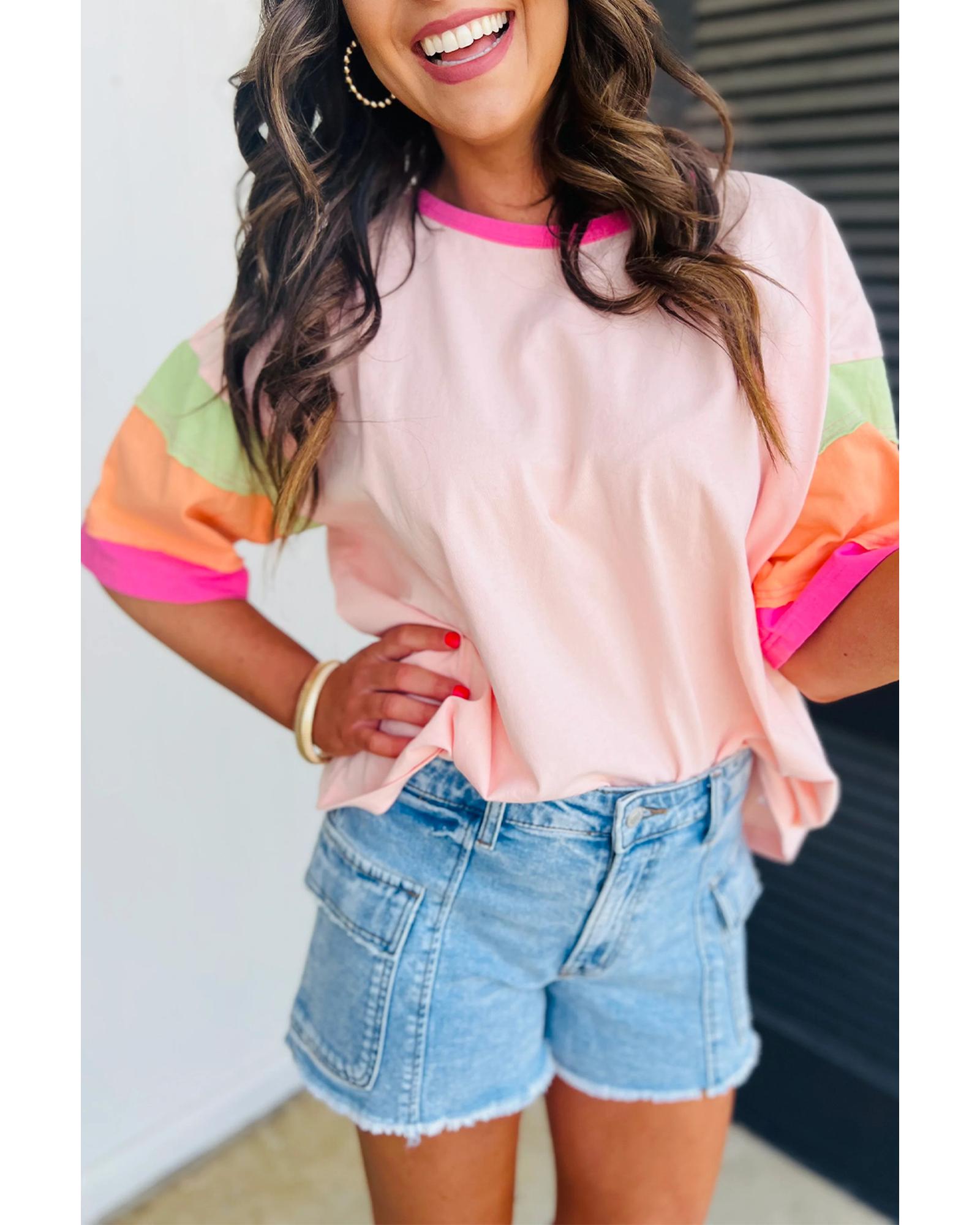Pink Color Block Stitching Sleeve Round Neck Oversize Top – M