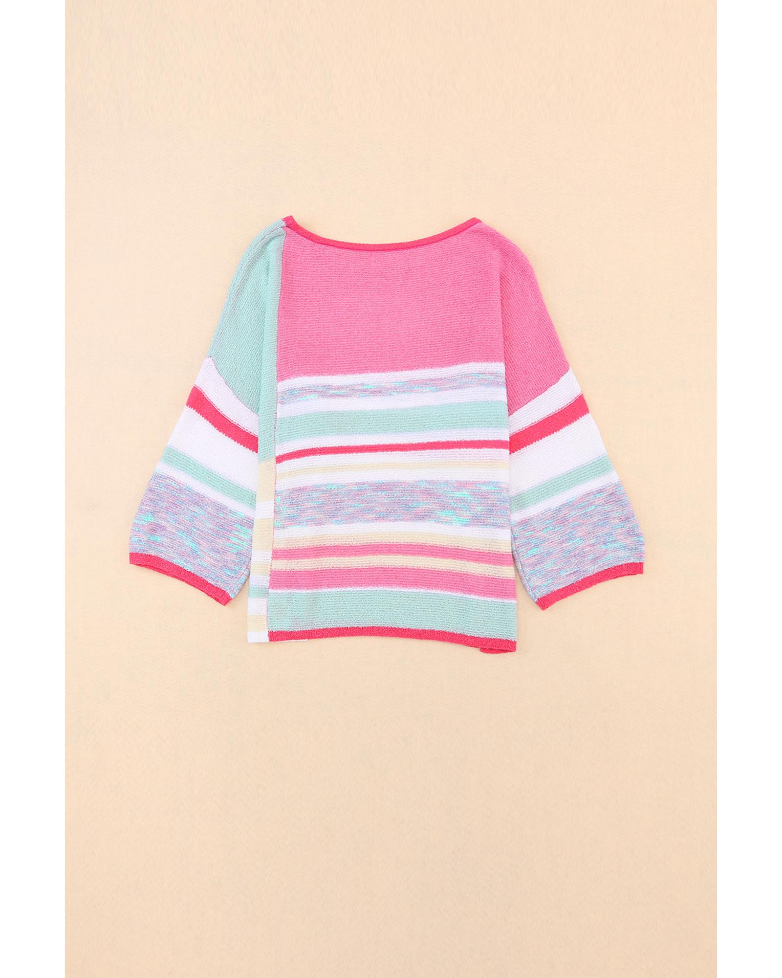 Pink Color Block Striped Three-Quarter Sleeve Knitted Top – S