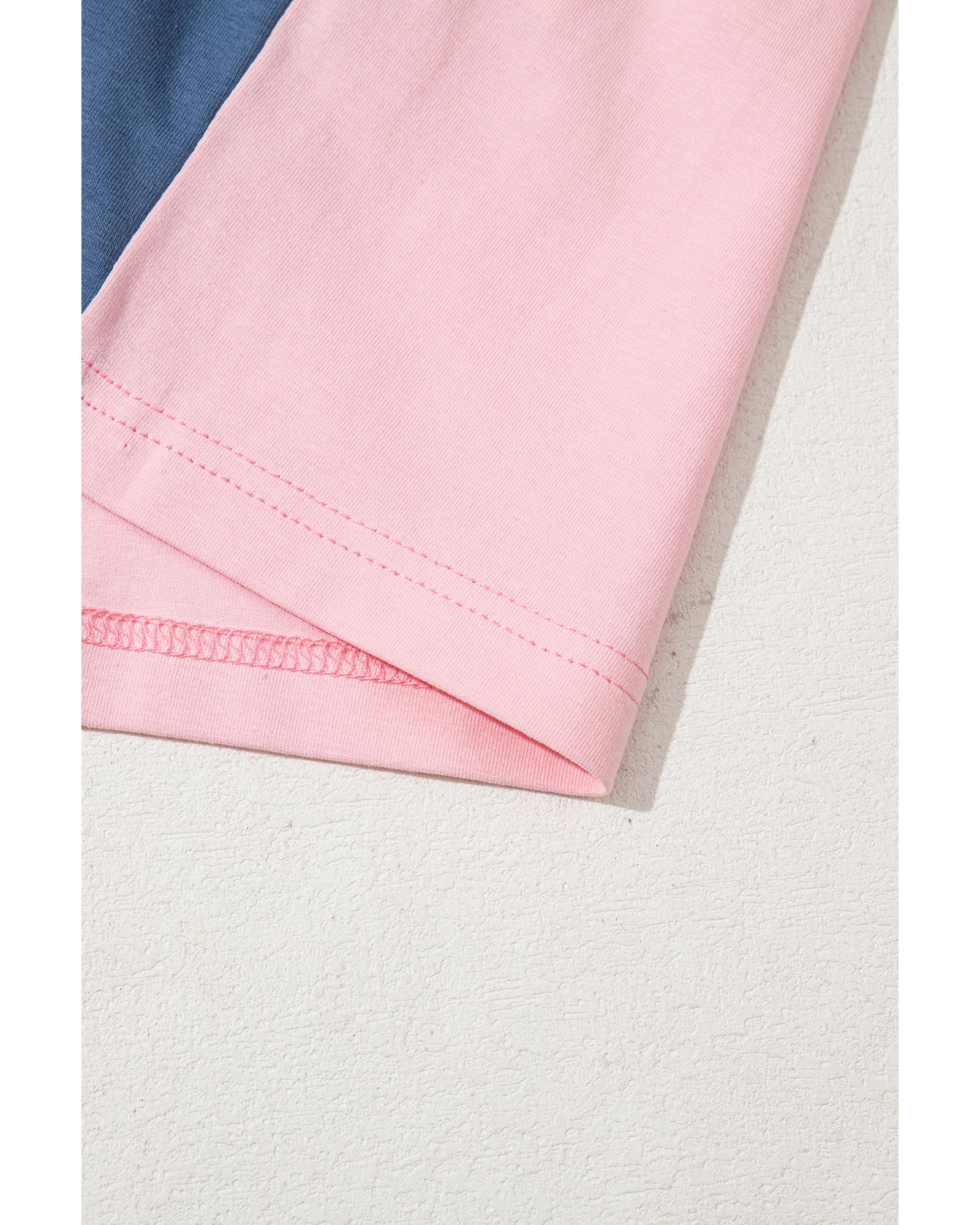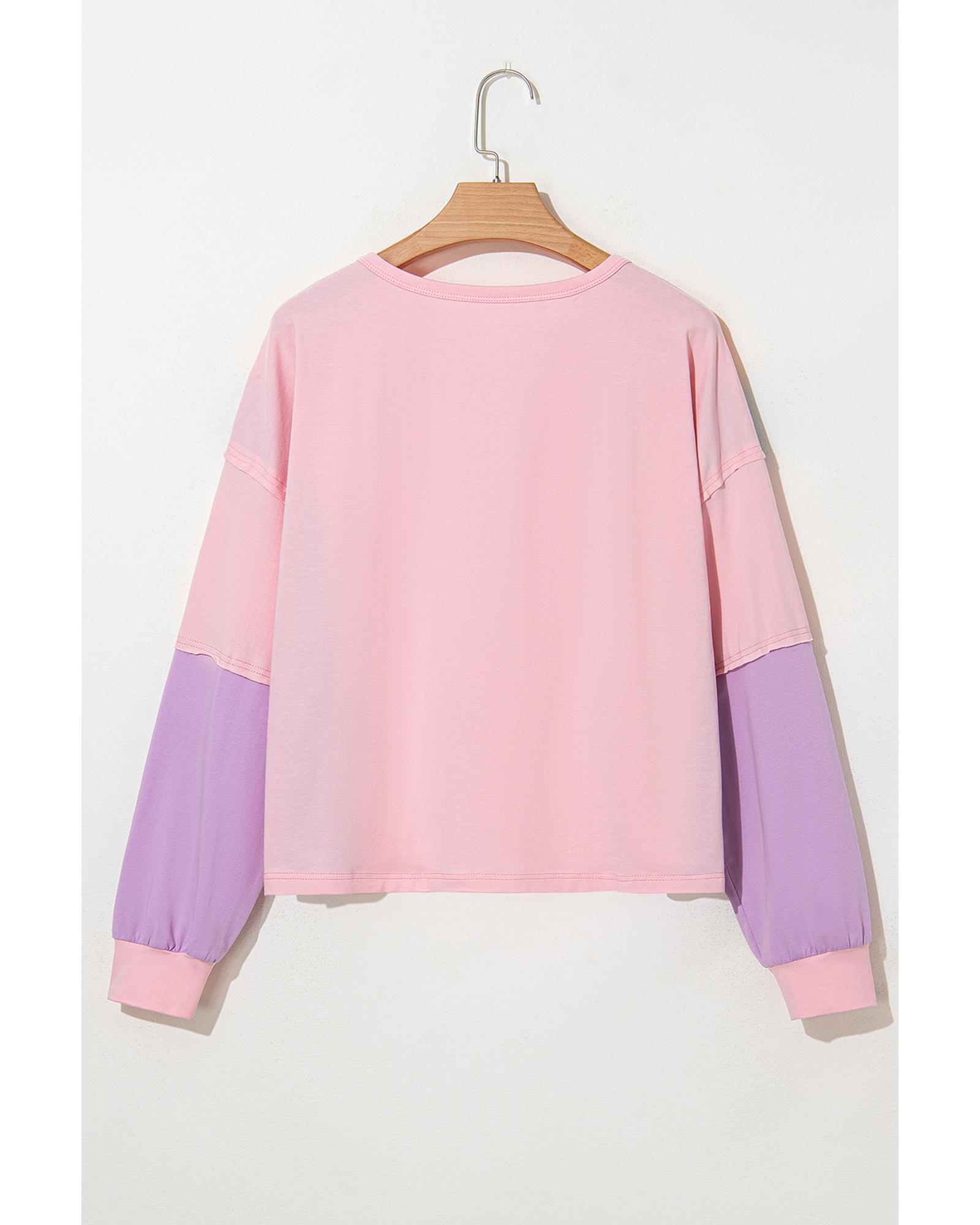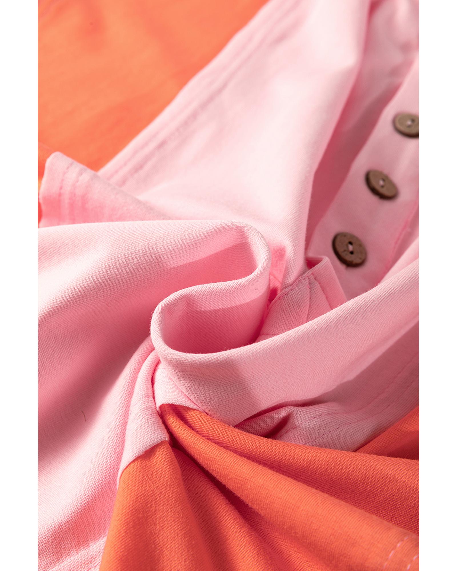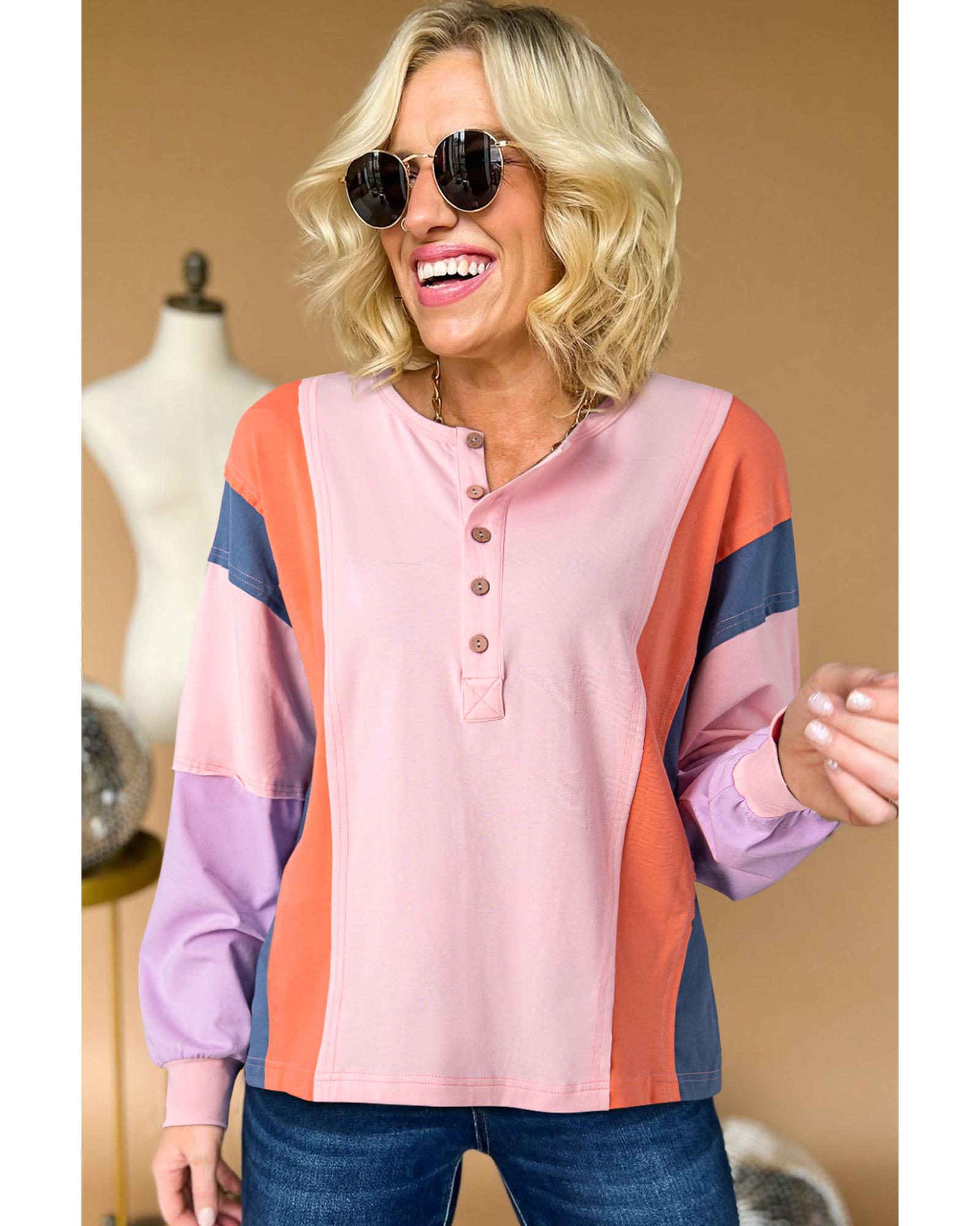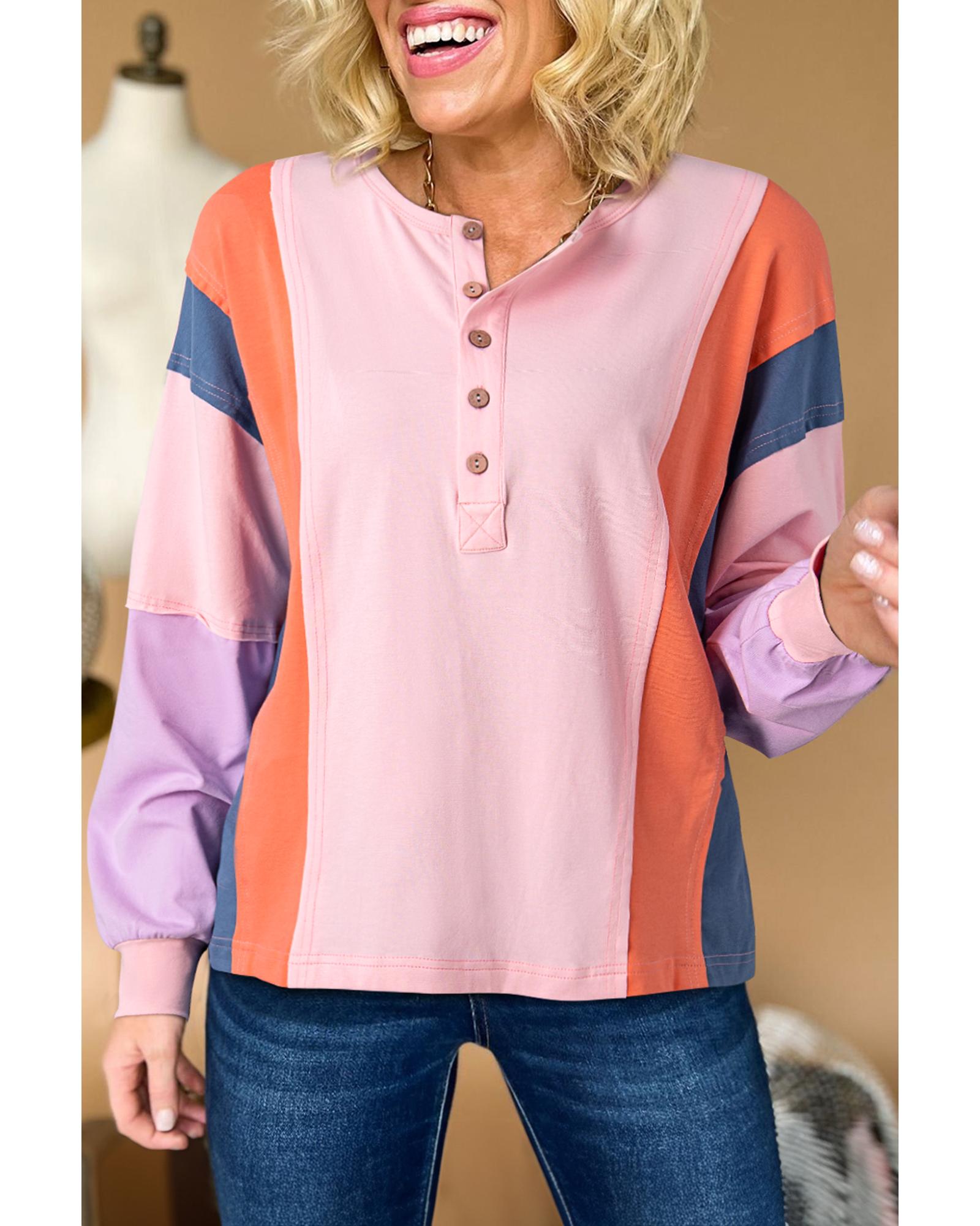 Pink Colorblock Long Sleeve Buttons Henley Top – M