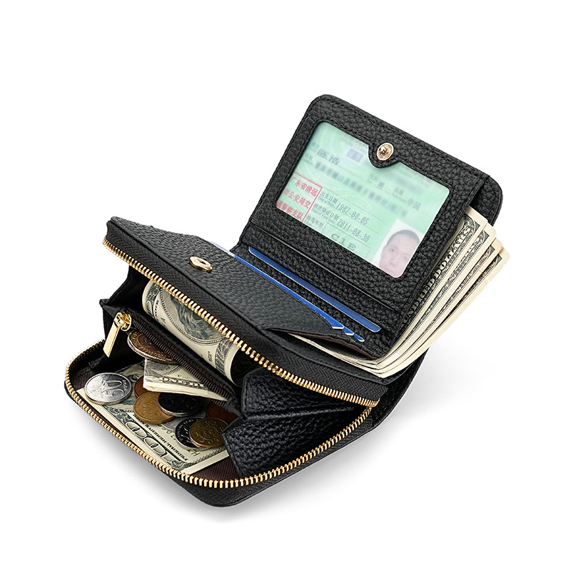 - Secure Zipper Closure: Features a smooth, reliable zipper closure for the main coin/change compartment, keeping your coins and valuables secure. A snap closure secures the card section.