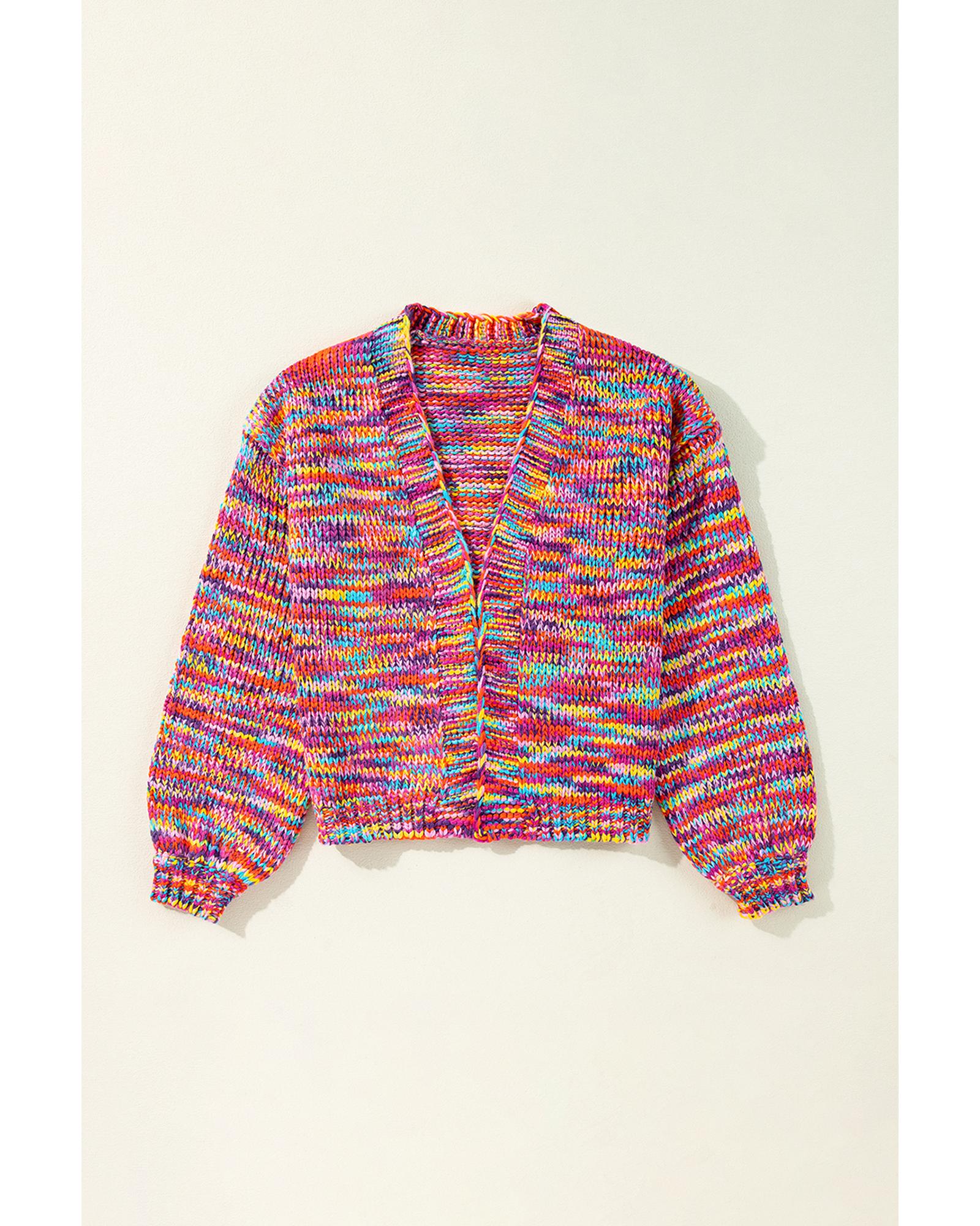 Pink Confetti Drop Shoulder Open Front Cardigan – M
