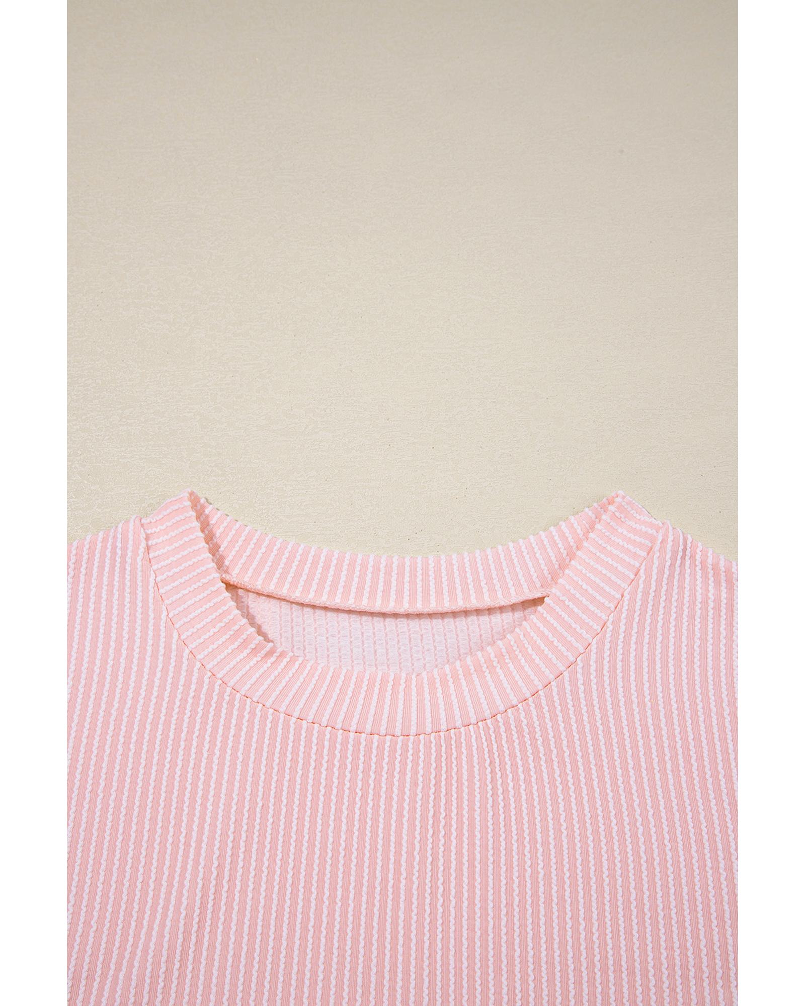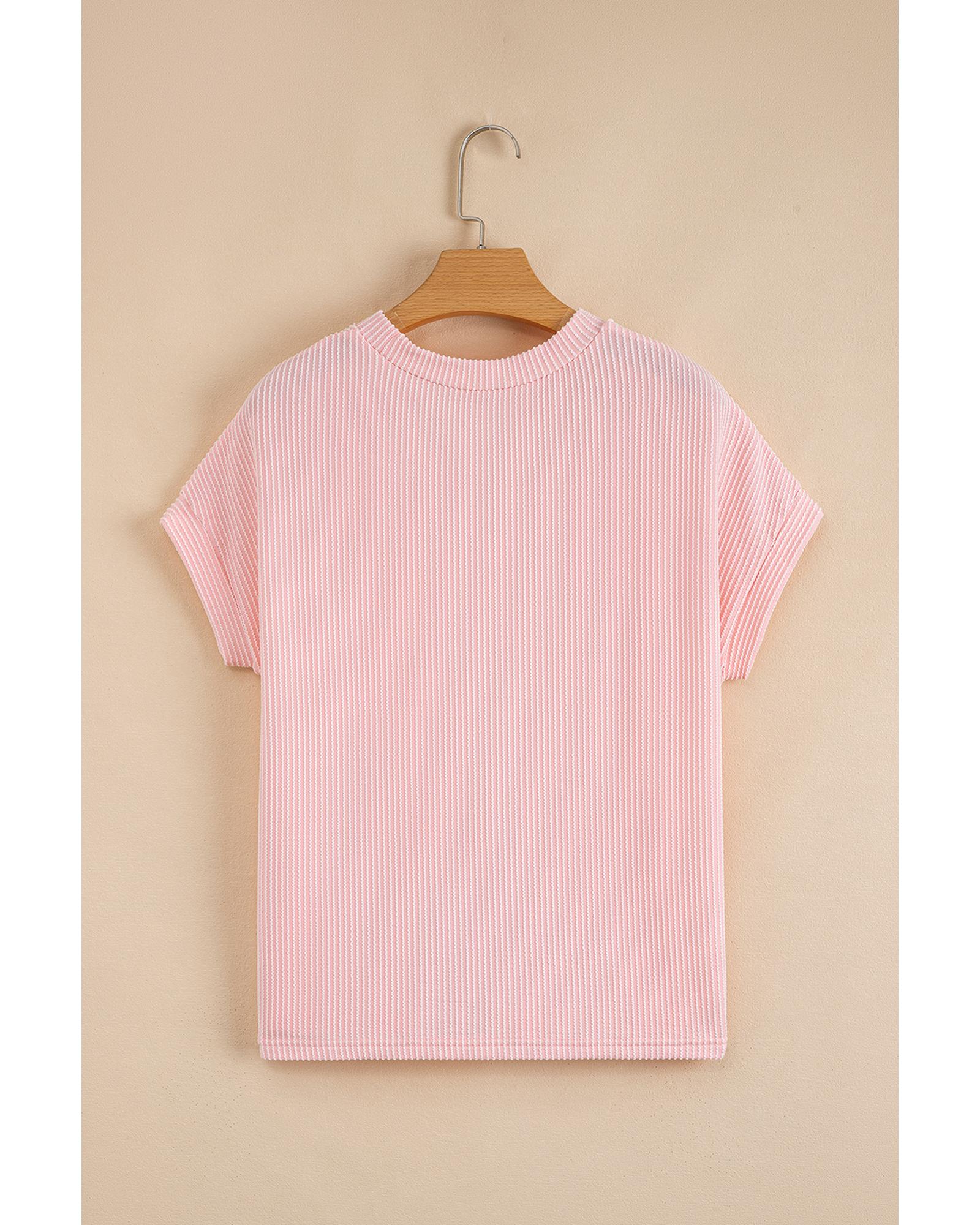 Pink Corded Knit Color Block Pocketed Crew Neck T Shirt – S