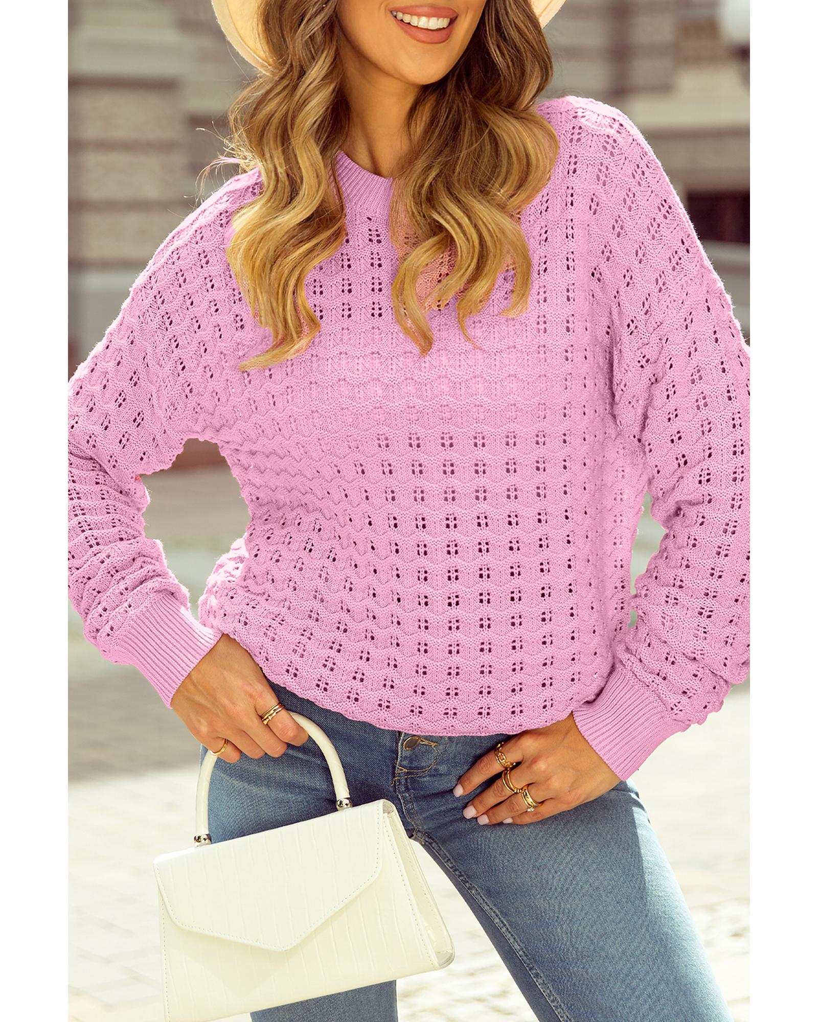 - Delicate and fashionable Pink Crochet Knit Drop Shoulder Sweater