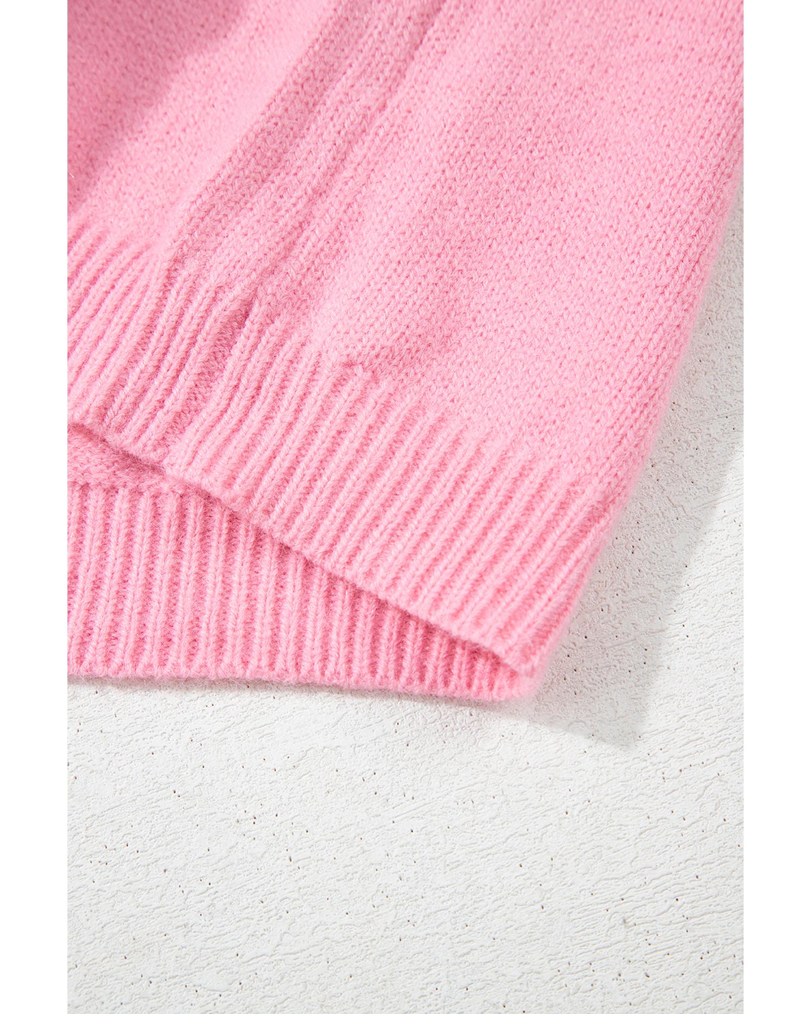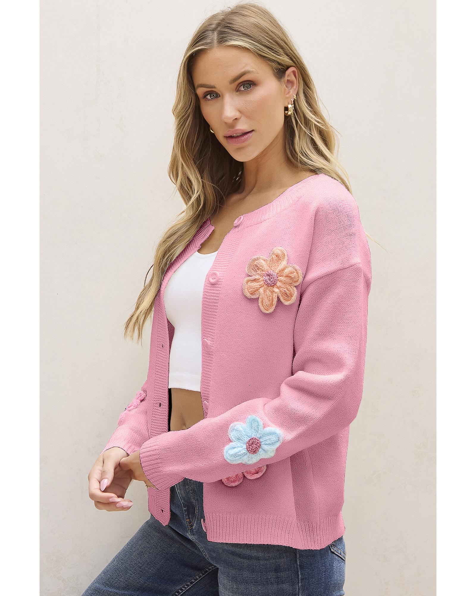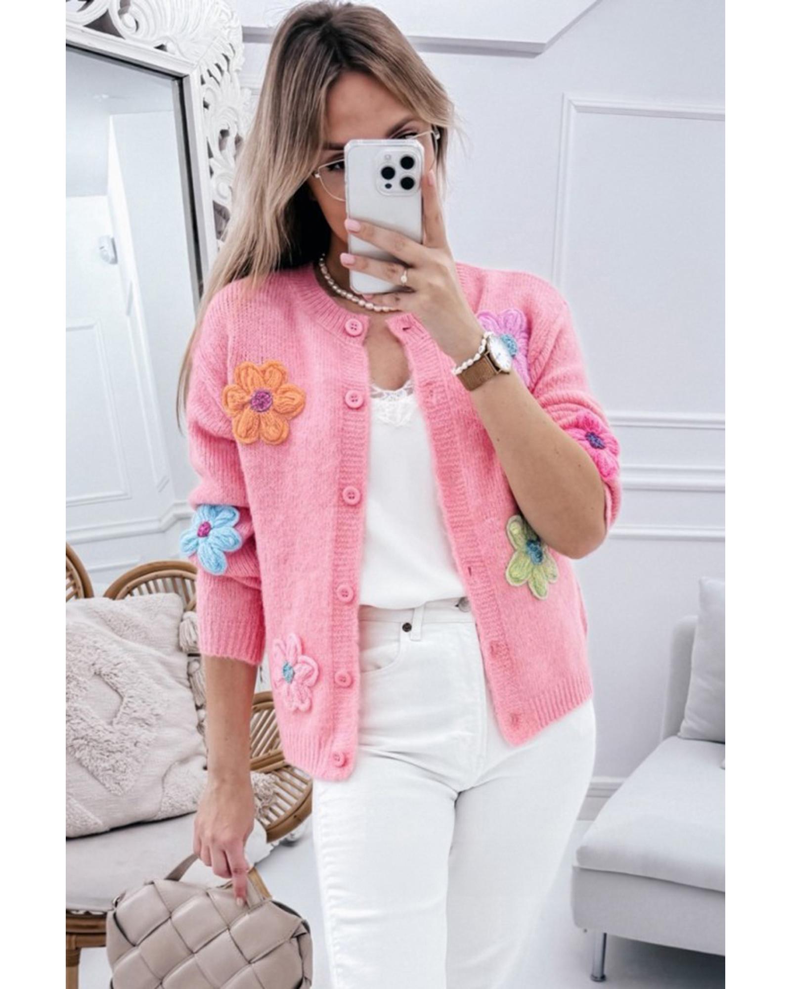 Pink Cute Knitted Floral Pattern Button Up Cardigan – S