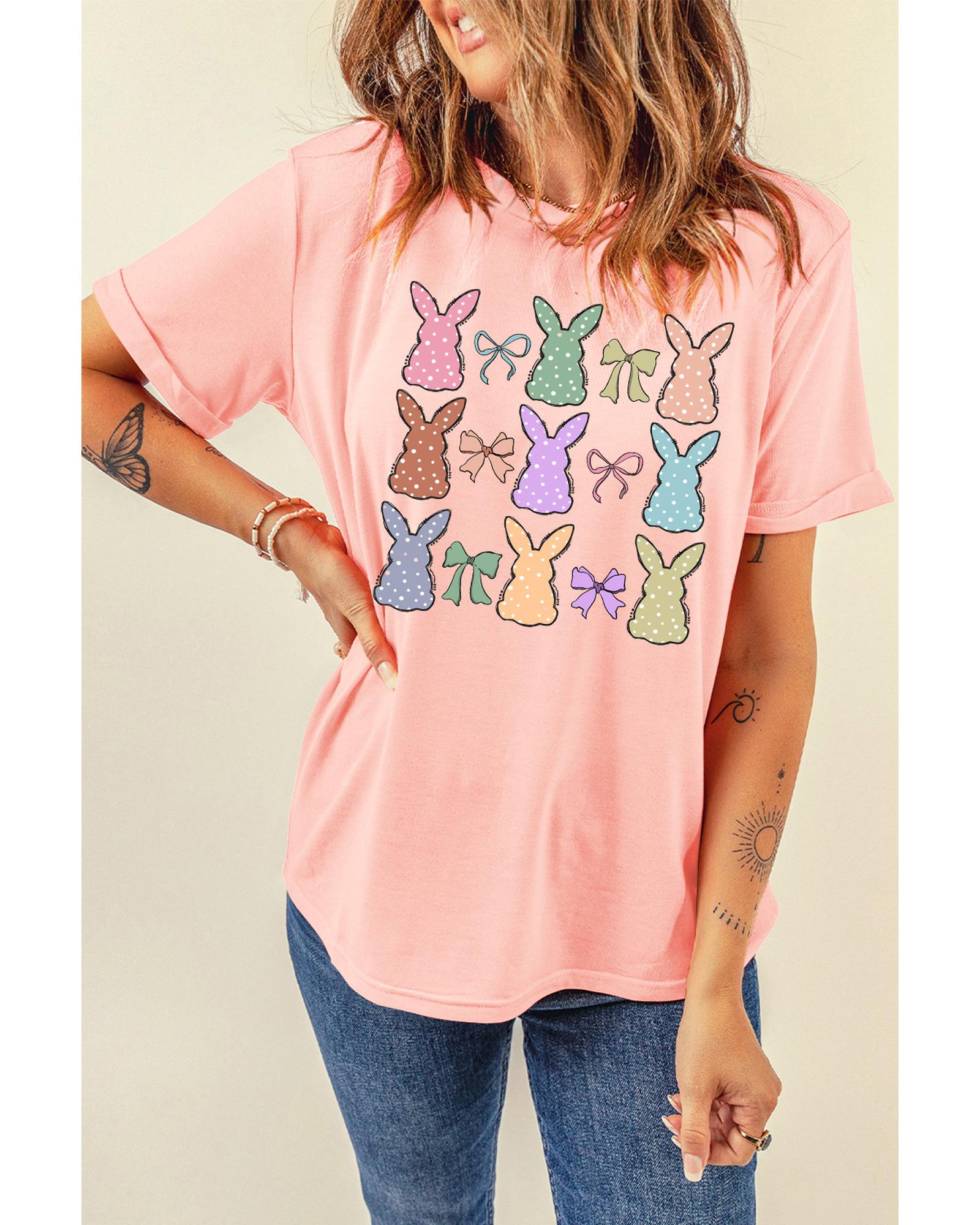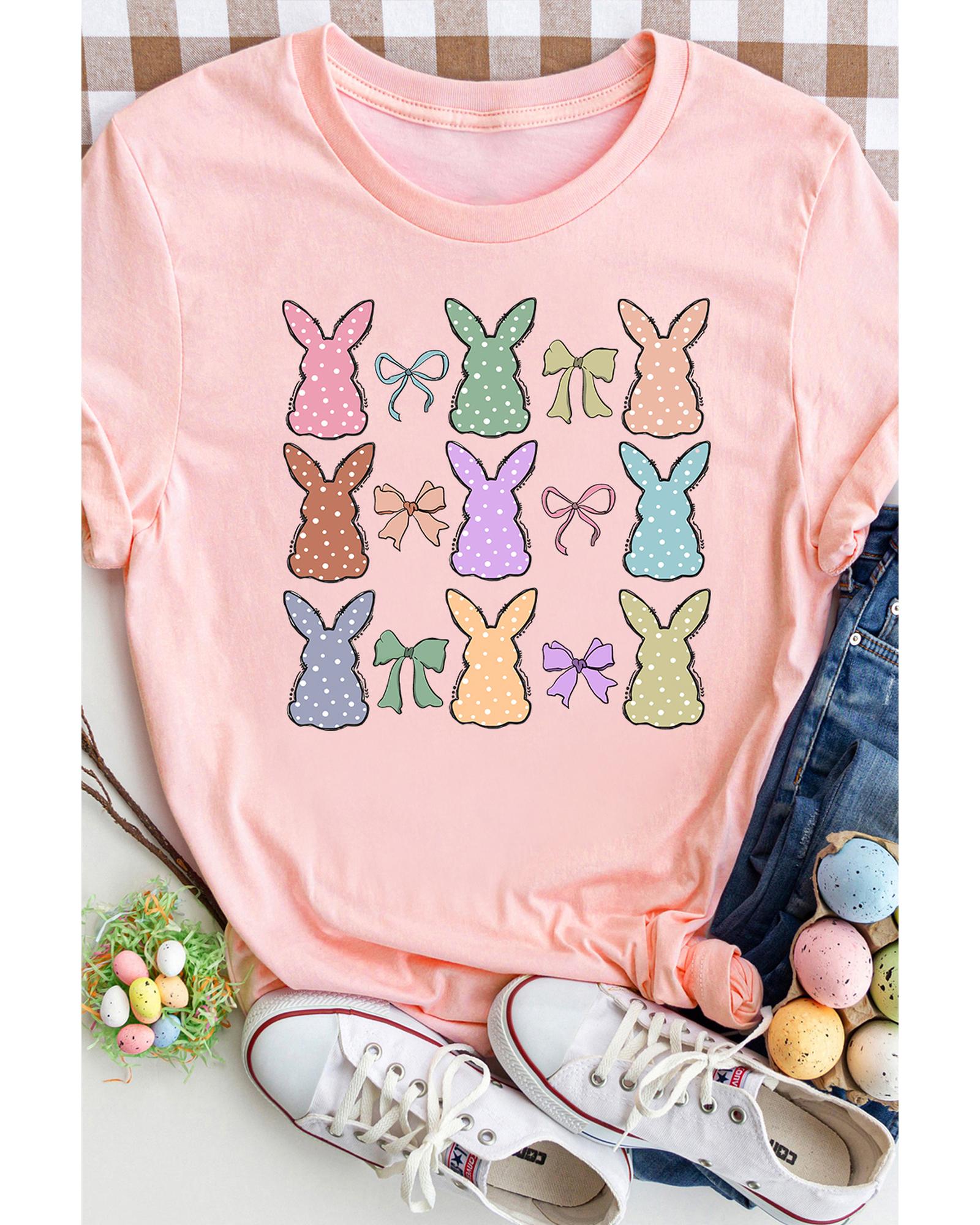 Pink Dotty Bunny Bow Printed Easter Day Fashion T Shirt – M