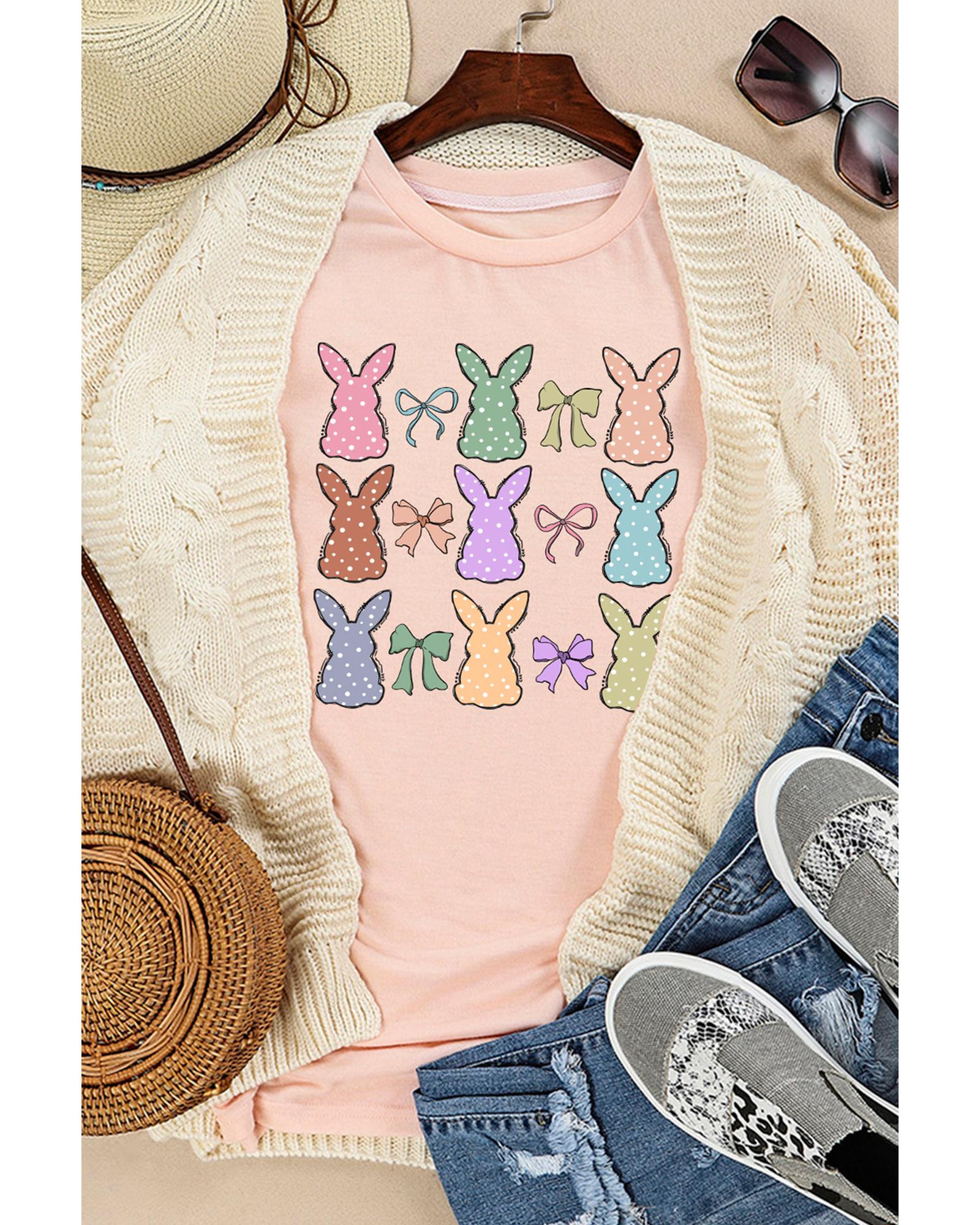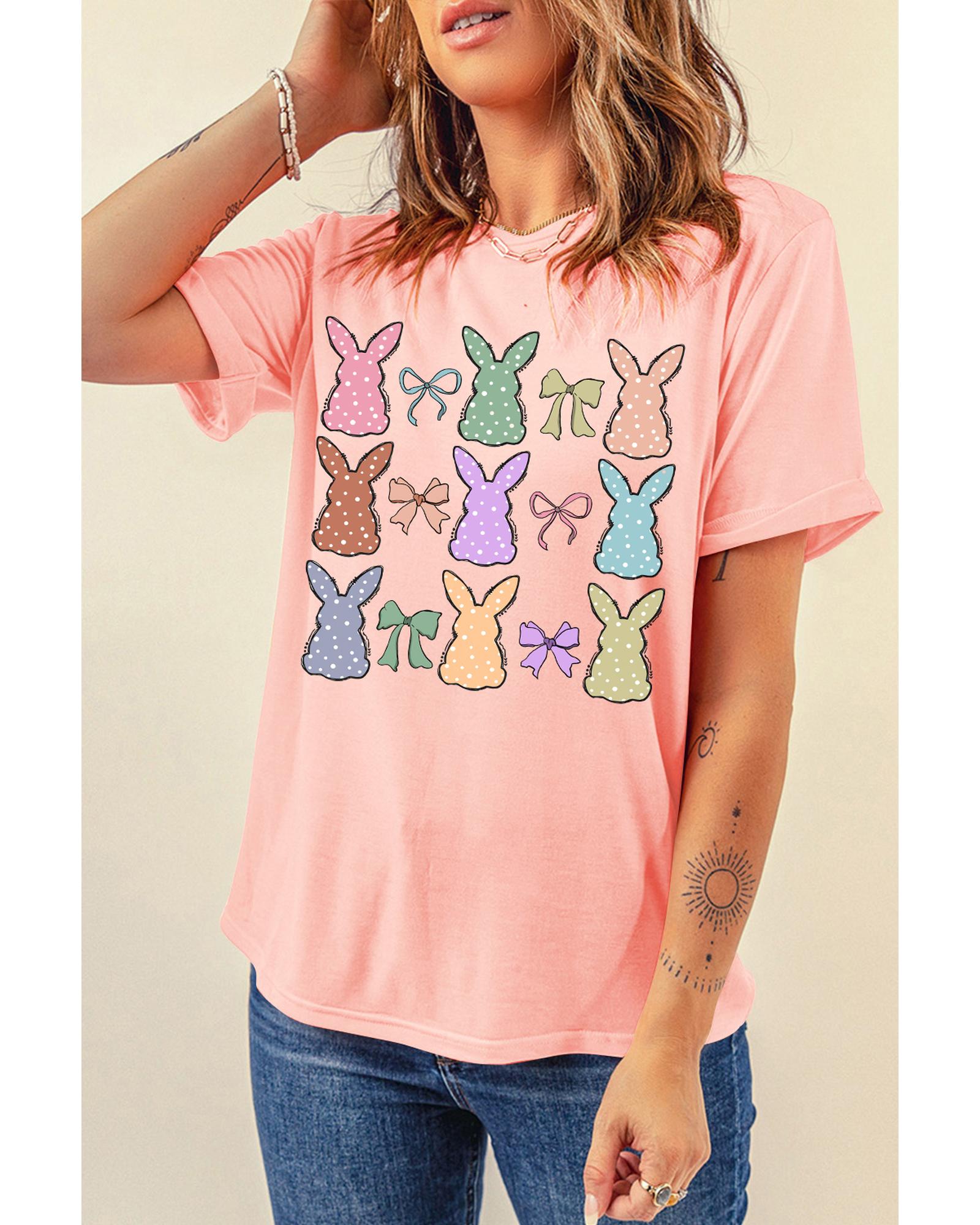 Pink Dotty Bunny Bow Printed Easter Day Fashion T Shirt – S