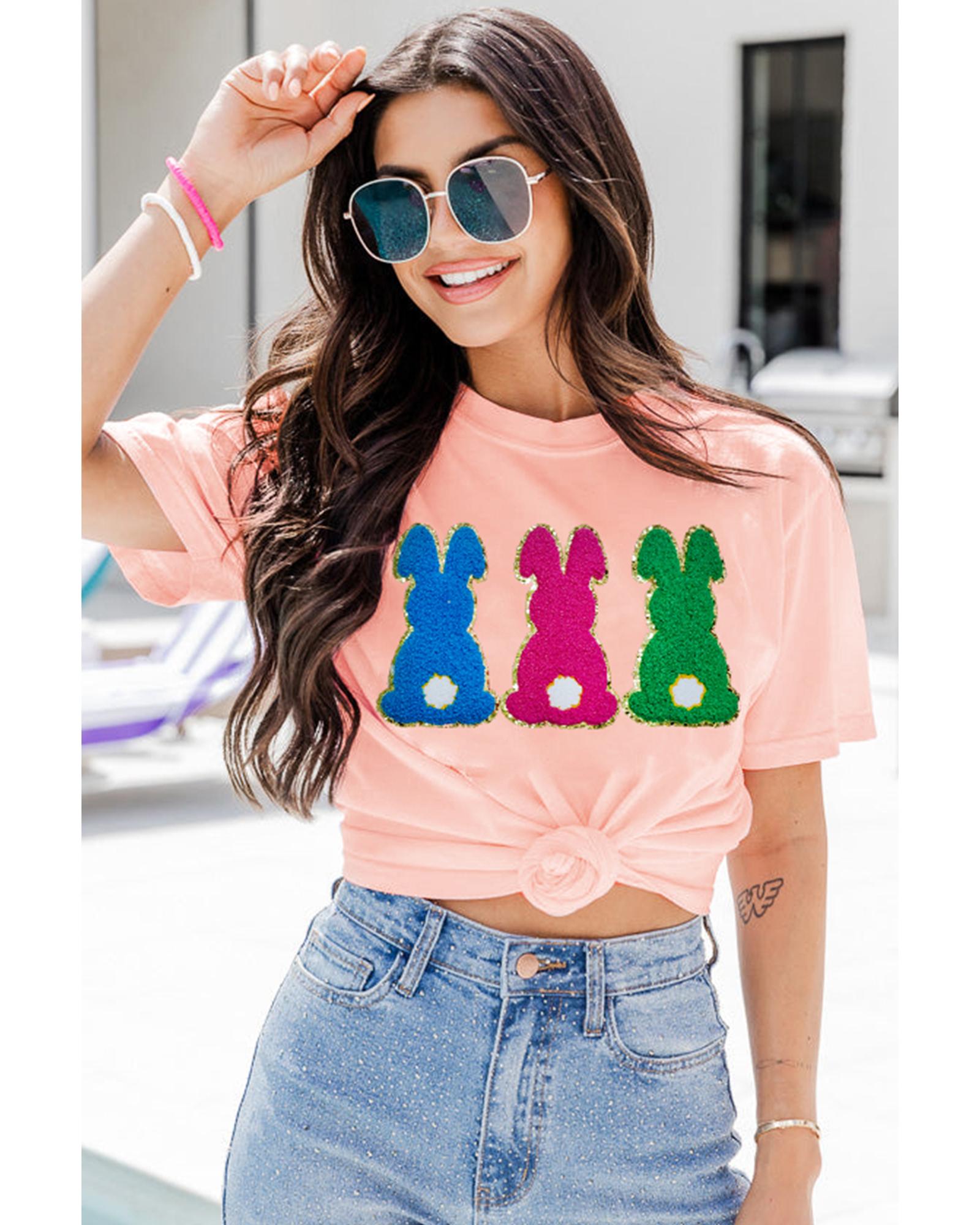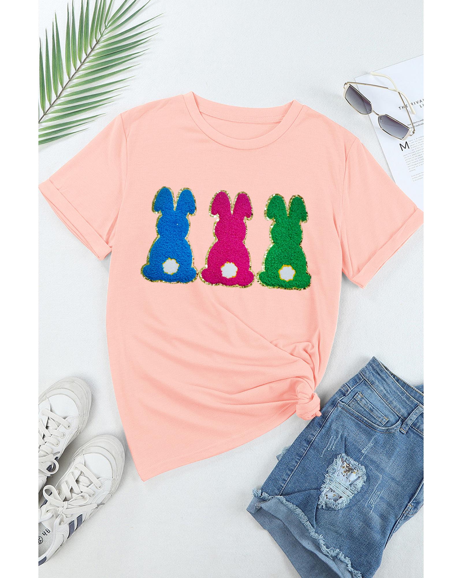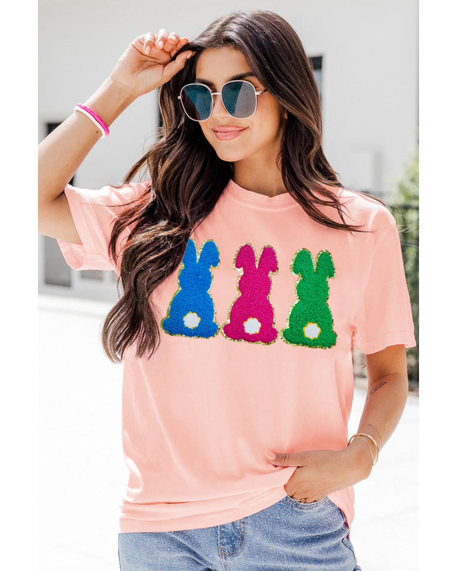 Pink Easter Bunny Chenille Patched Graphic Tee – S