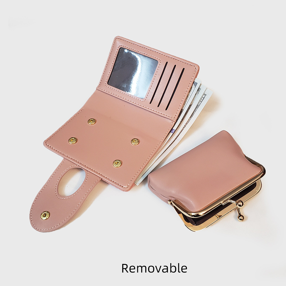 • Organized Interior: Despite its compact size, this wallet is surprisingly spacious. It includes 3 dedicated card slots, a clear ID window for easy access, a full-length cash slot for banknotes, and the separate kisslock purse for coins and small items.