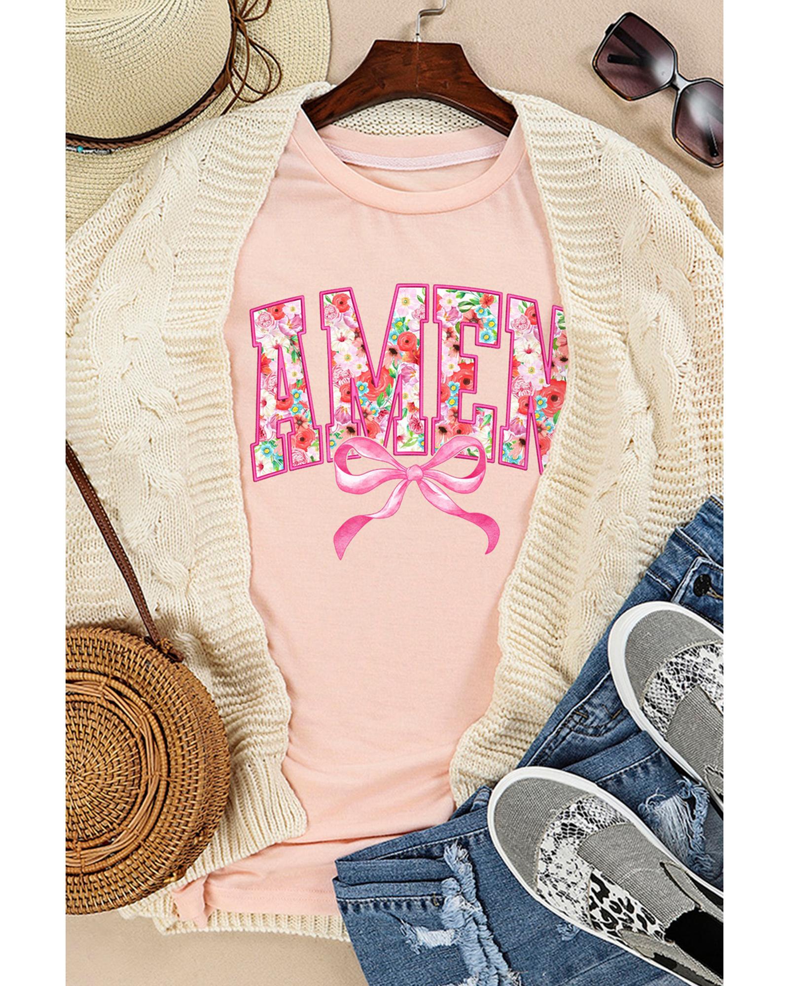Pink Floral AMEN Bow Graphic Crewneck T Shirt – 2XL