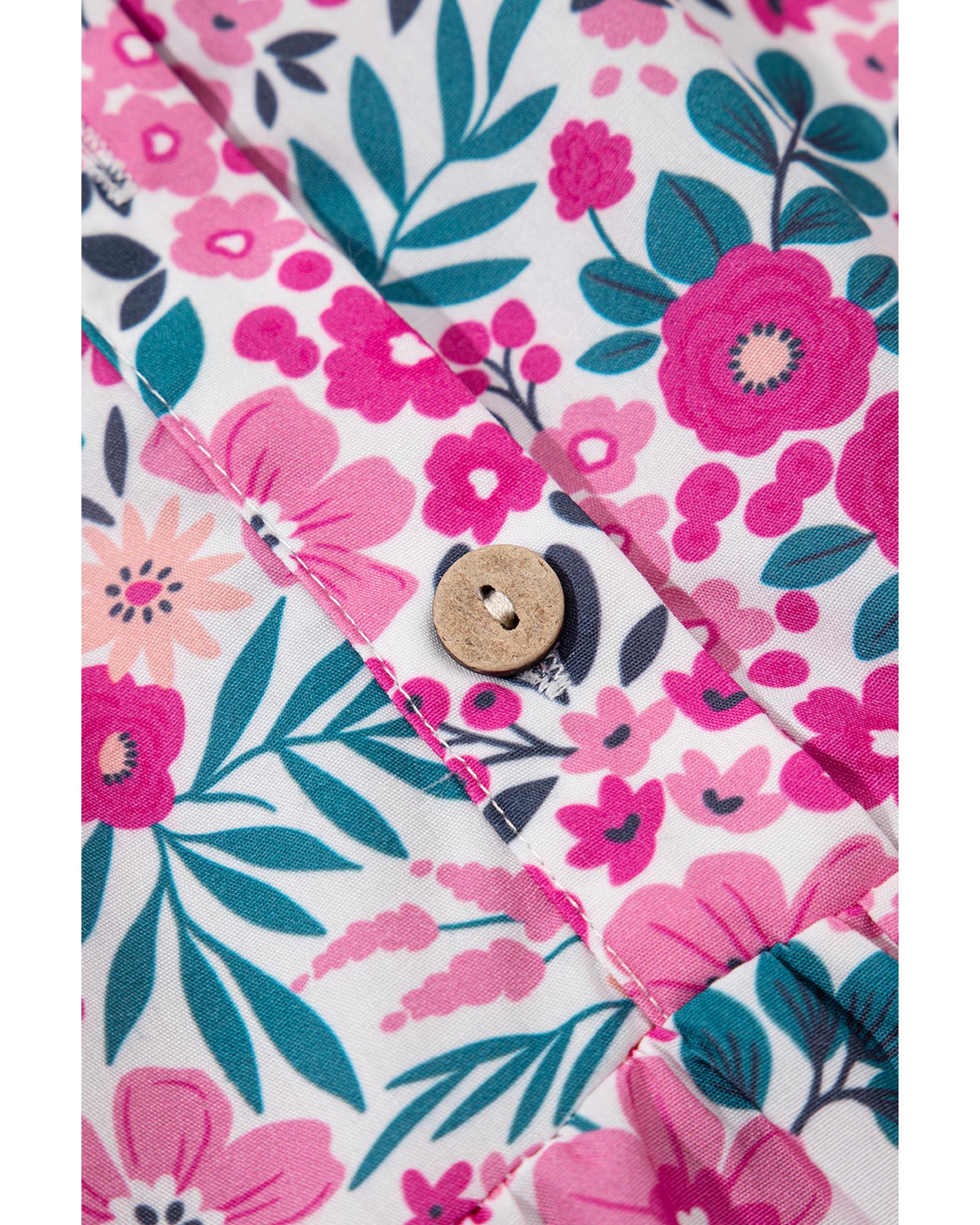 Pink Floral Collared Half Placket Short Sleeve Loose Dress – S