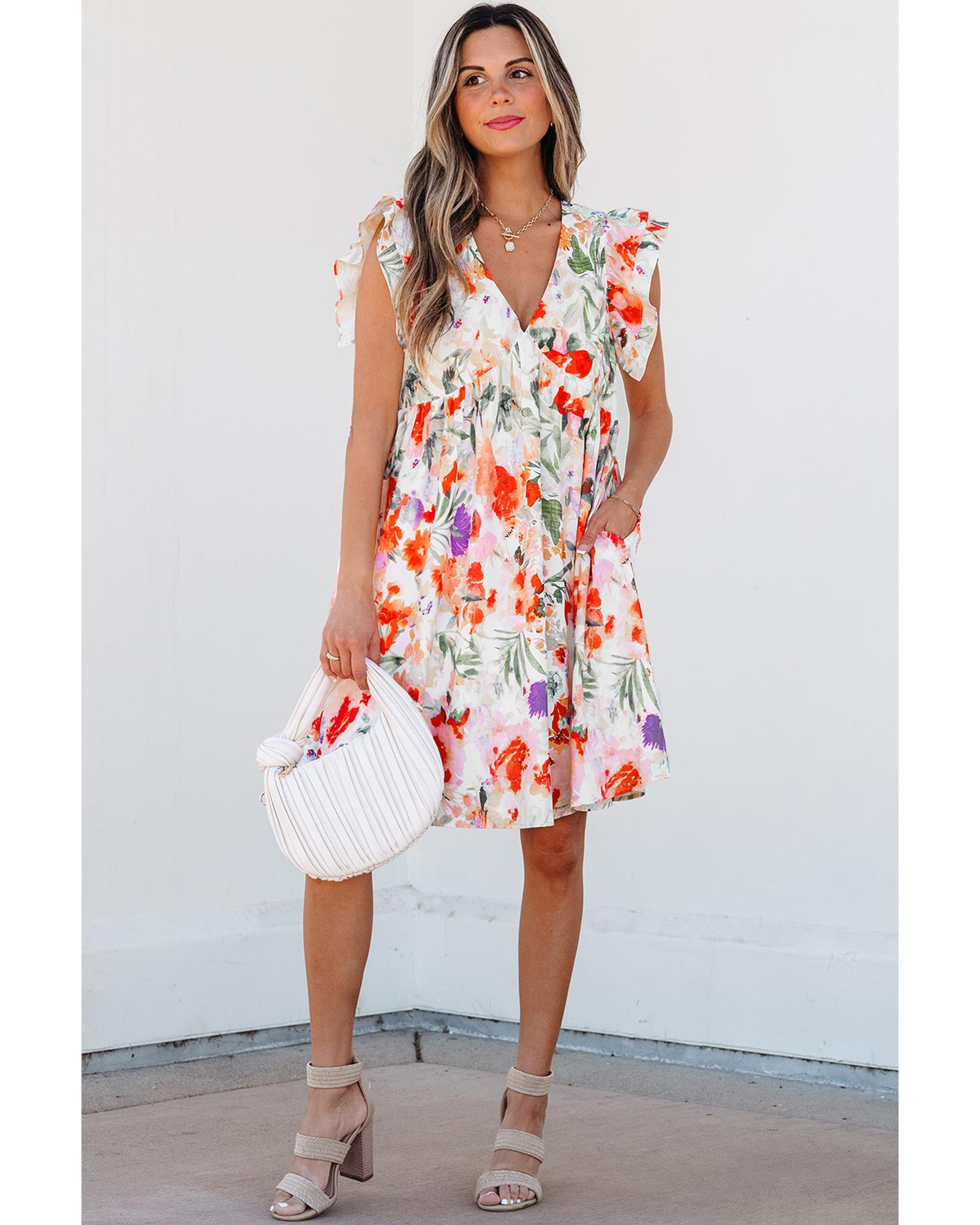 - Pink floral mini dress