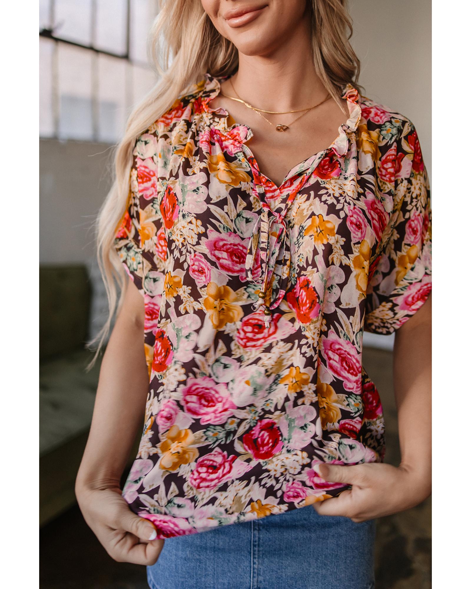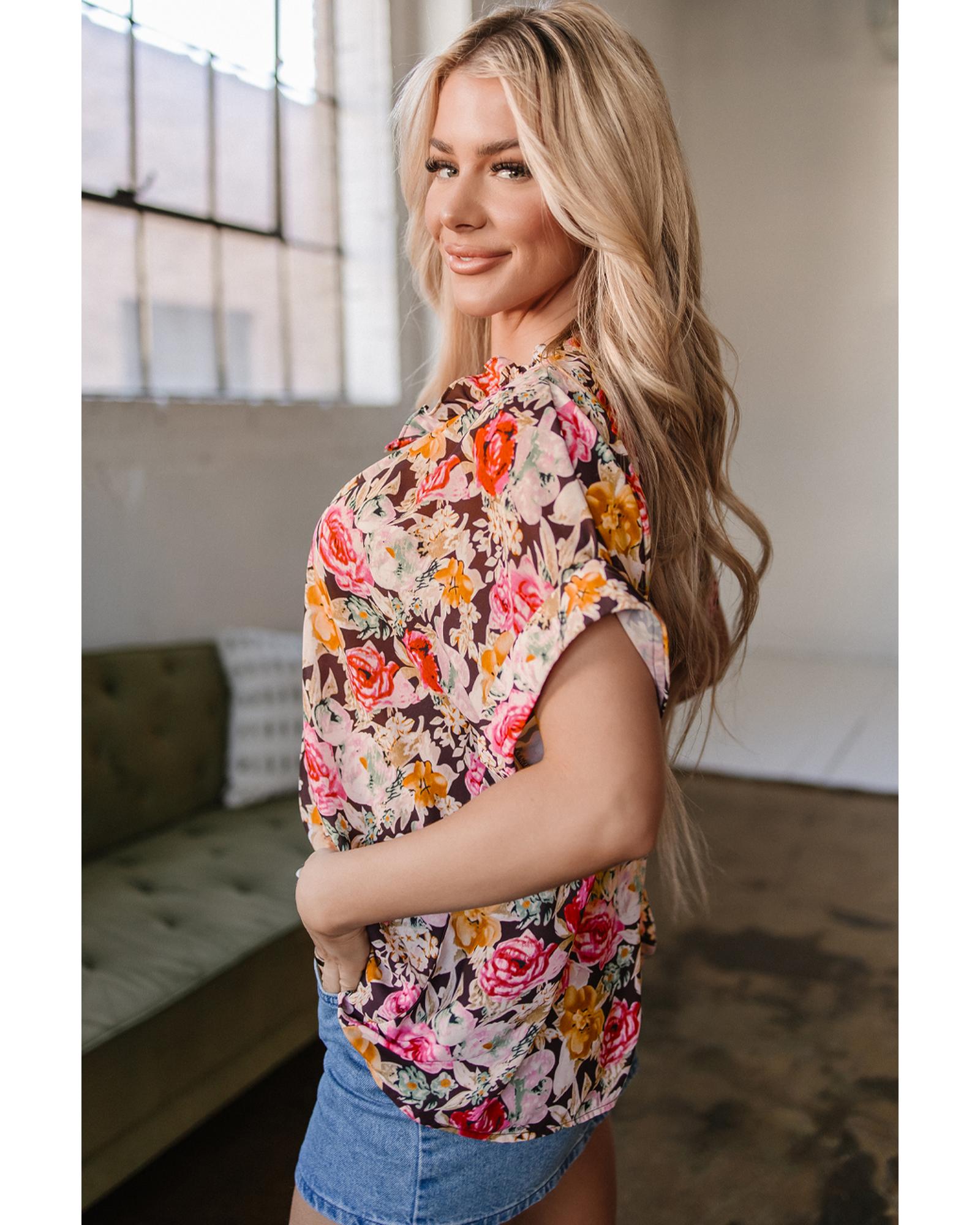 Pink Floral Print Crew Neck Short Sleeve Shift Blouse – M