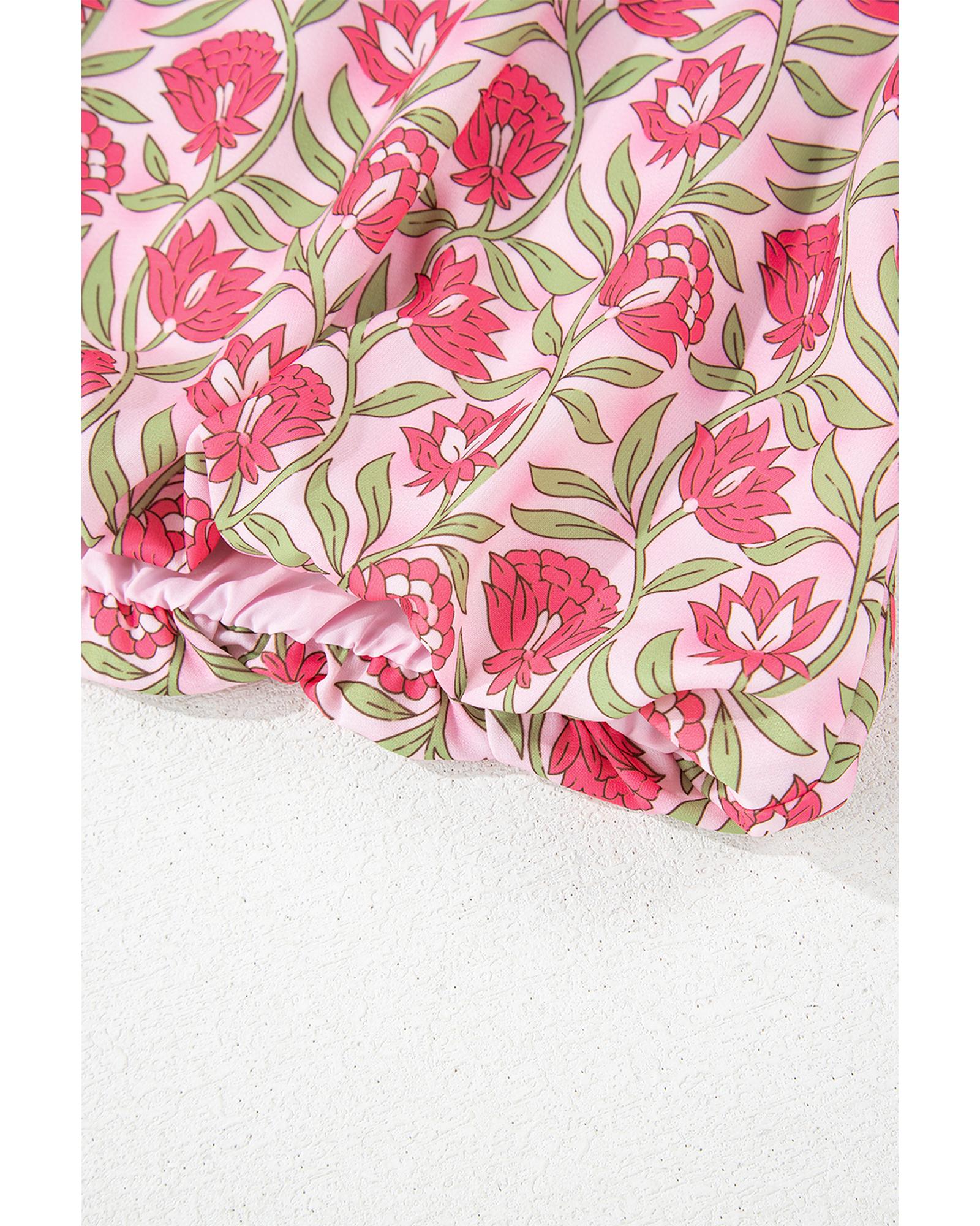 Pink Floral Print Puffy Cropped Tank and Mini Skirt Set – L