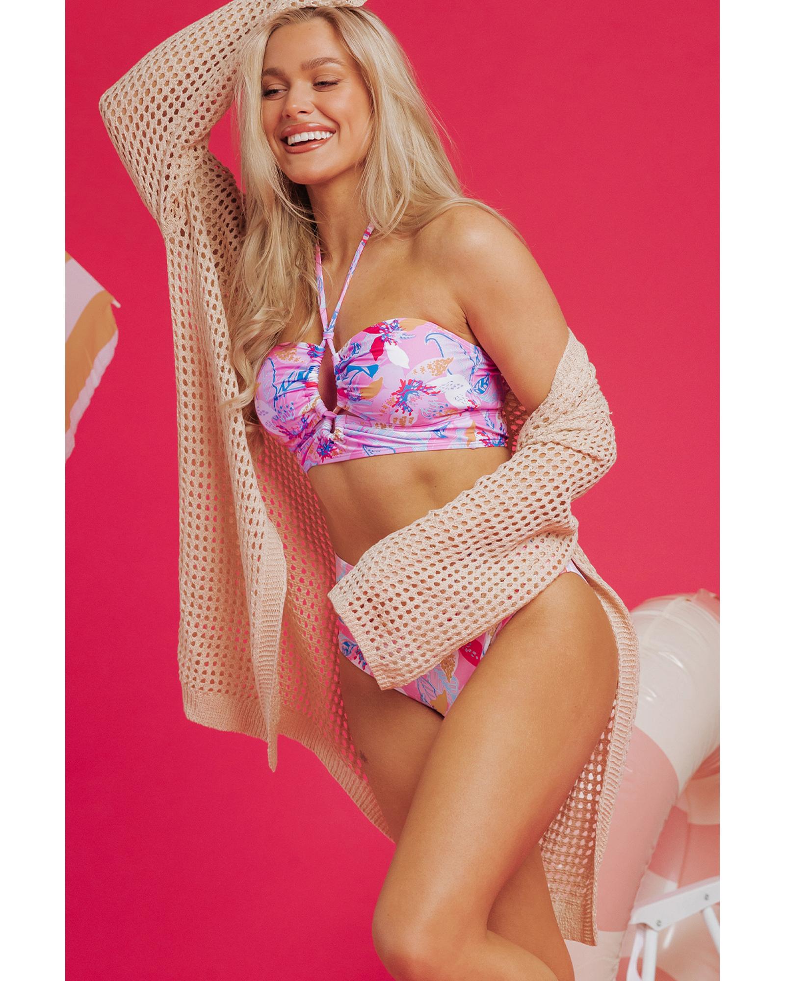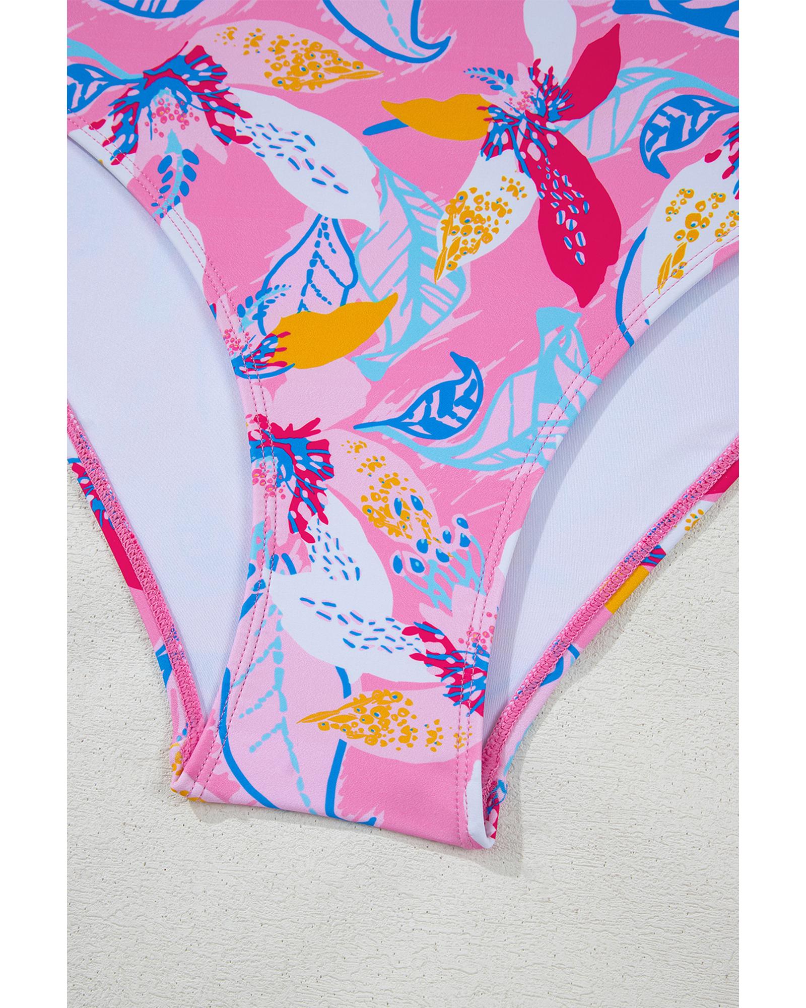 Pink Floral Printed Halter Neck High Waist Bikini – XL