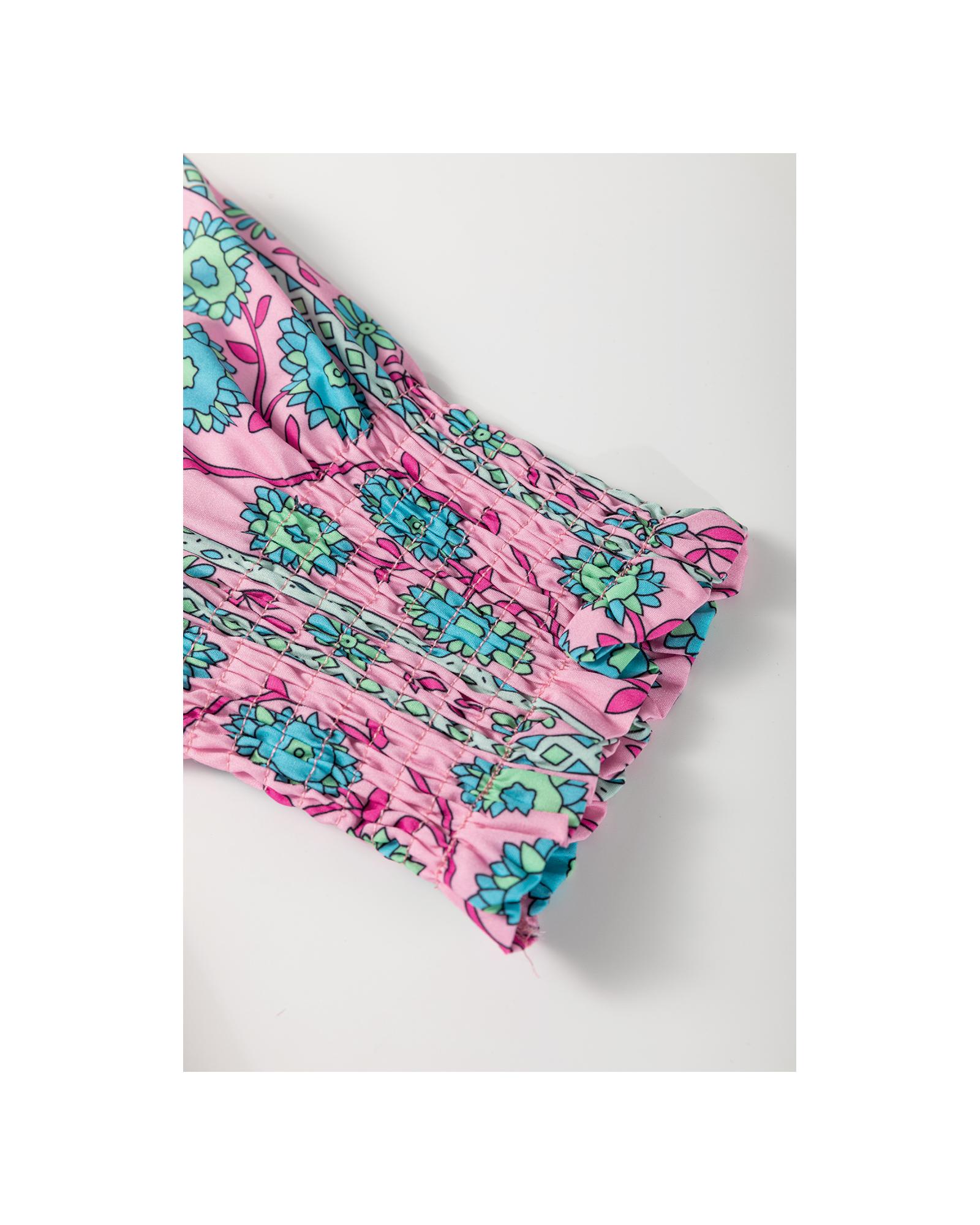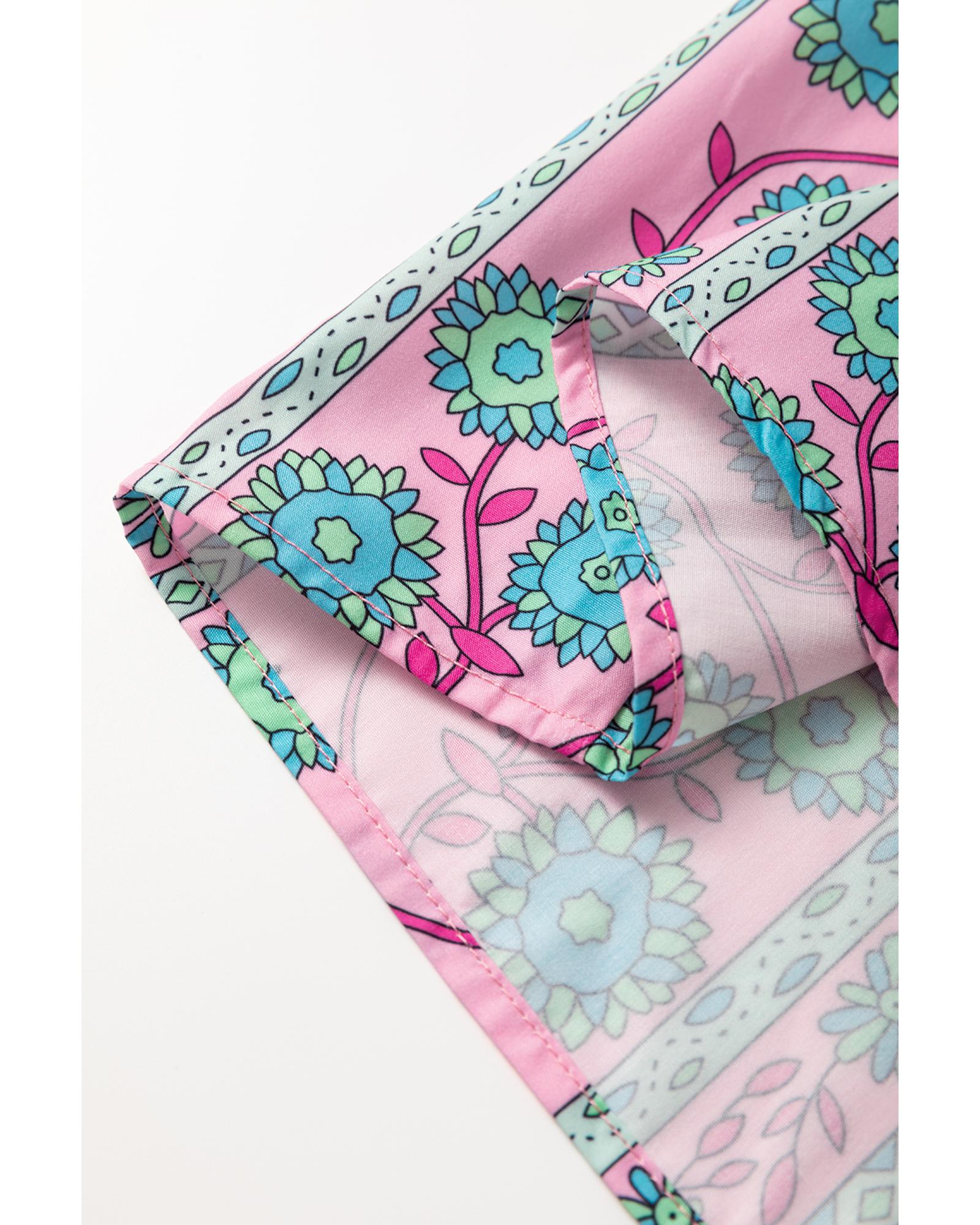 Pink Floral Shirred Puff Sleeve Buttoned Front Midi Dress with Sash – XL