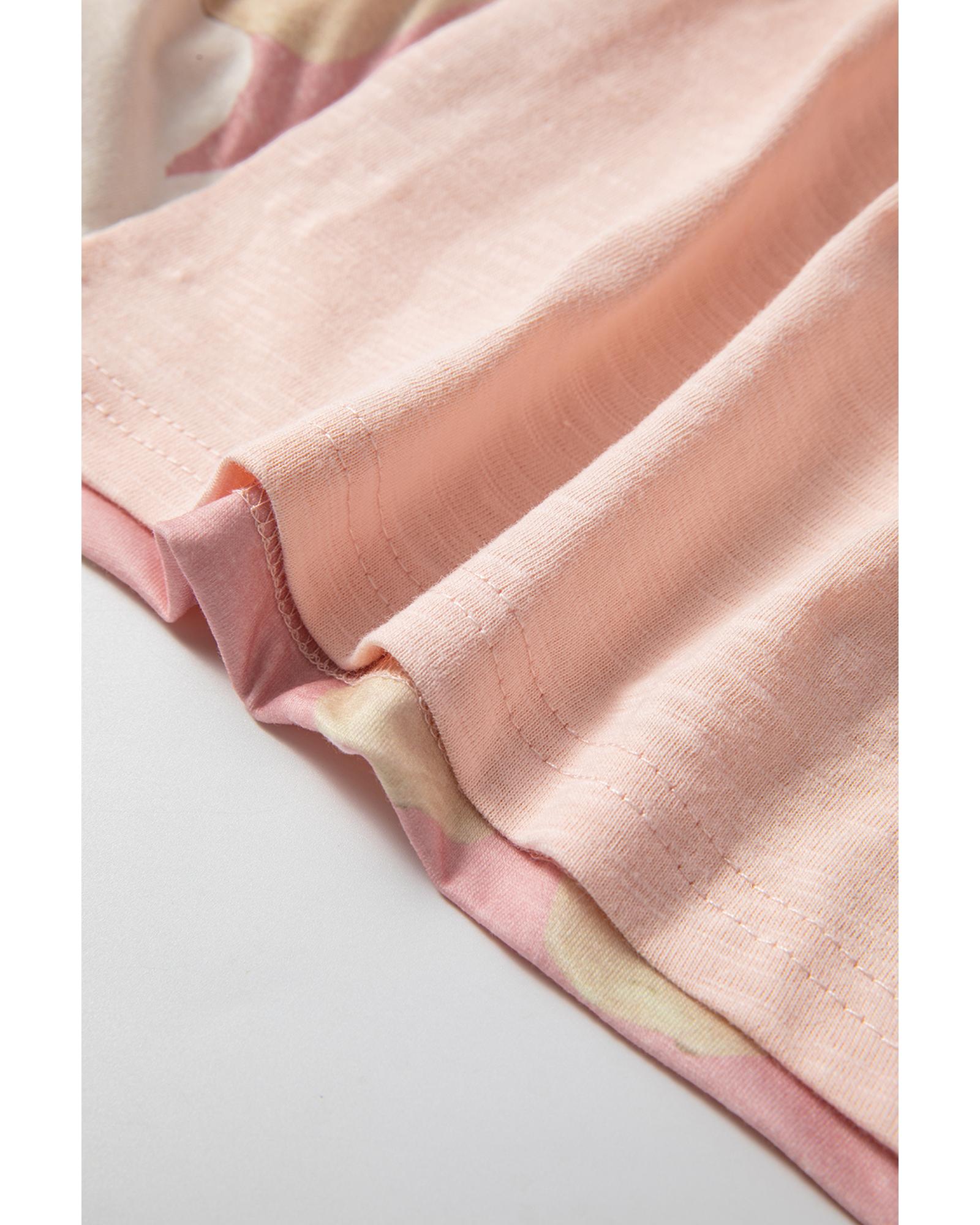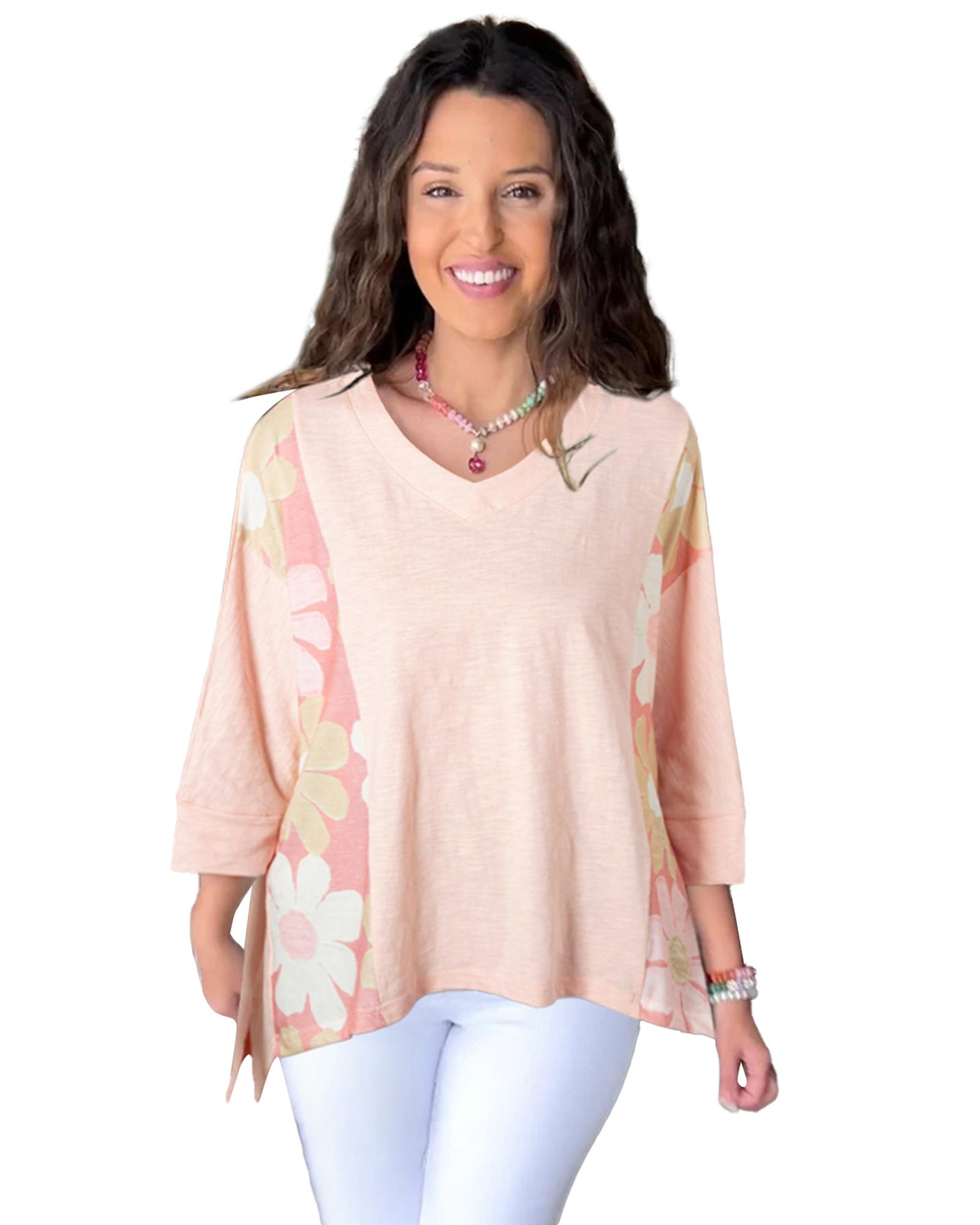 Pink Flower Patchwork Exposed Seam Oversized High Low Top – S