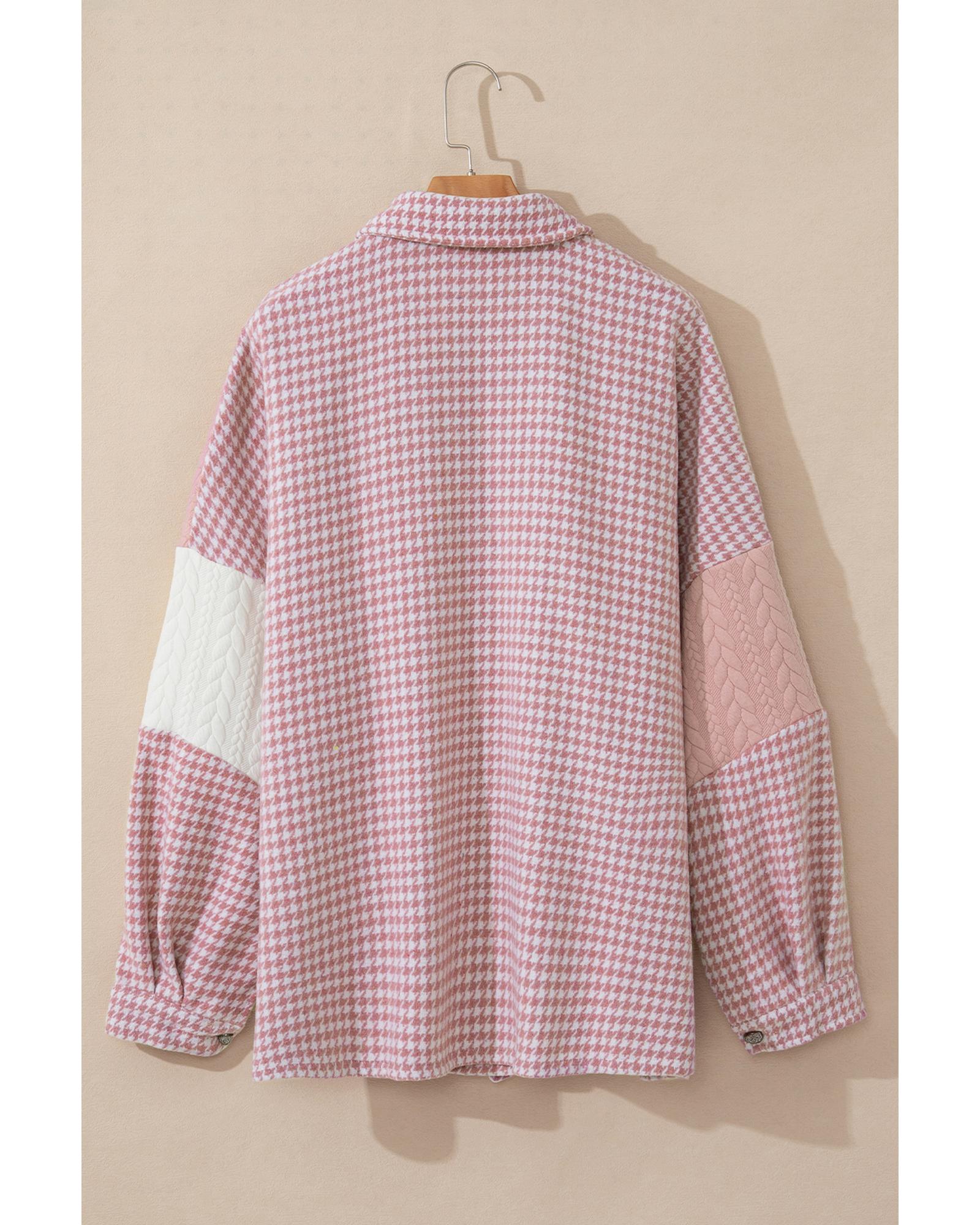 Pink Houndstooth Color Contrast Textured Patchwork Loose Shacket - S Original price was: $81.99.Current price is: $44.99.