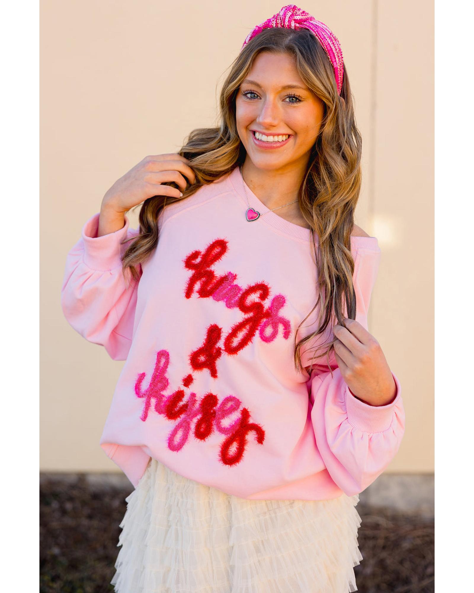 Pink Hugs and Kisses Pop Up Embroidered Raglan Sleeve Sweatshirt – S