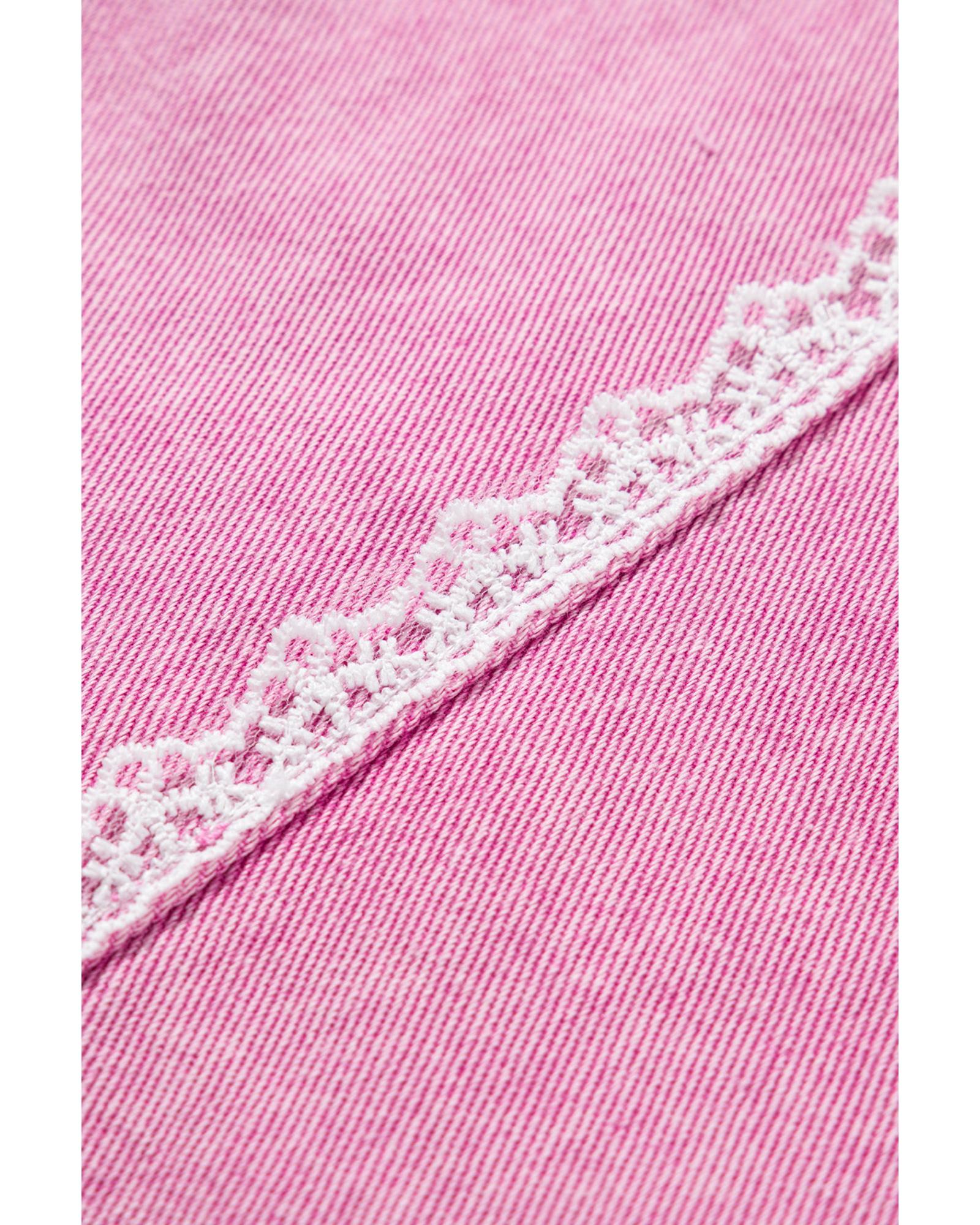 - Pink Lace Patchwork Distressed Buttoned Denim Jacket