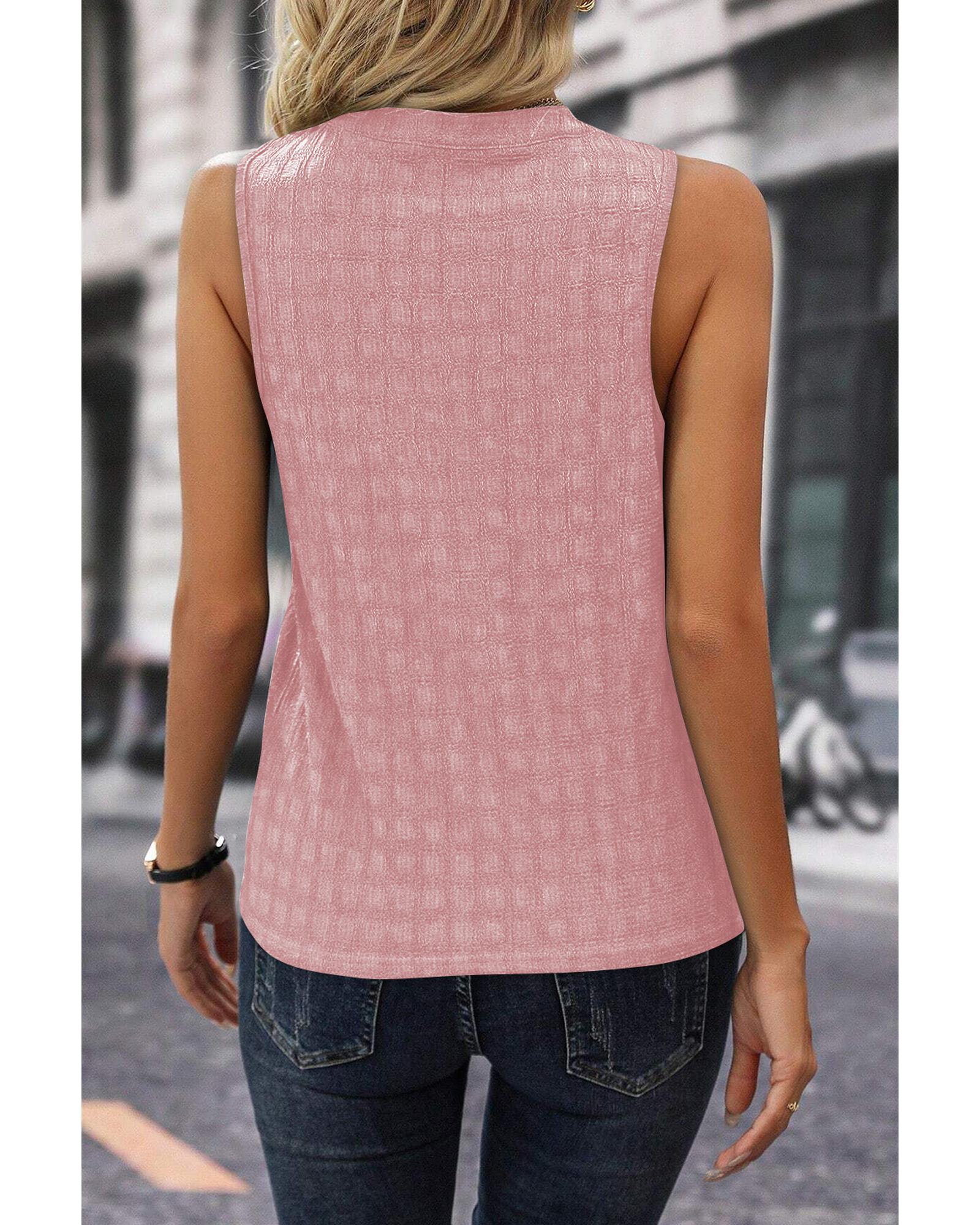 Pink Lattice Textured Split Neck Tank Top – L